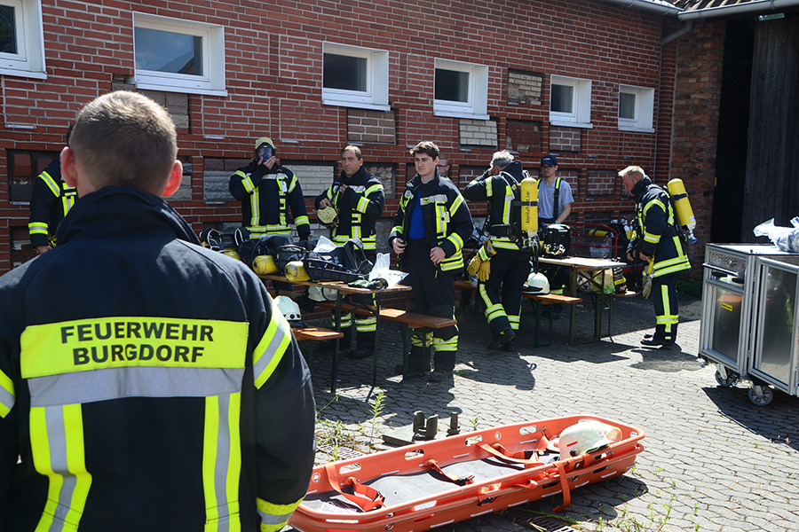 Doch auch mit all der Technik und Erfahrungen ist keine 100-prozentige Sicherheit gegeben. Daher hat die Stadtfeuerwehr Burgdorf am gestrigen Sonnabend, 2. Juli 2022, ein Atemschutznotfalltraining im alten Kerpen-Gebäude an der Gartenstraße in Burgdorf absolviert. Hierbei wurde zum einen das Vorgehen im Brandfall in einem Gebäude aber vor allem das Retten eines verunfallten Kameradens geübt.