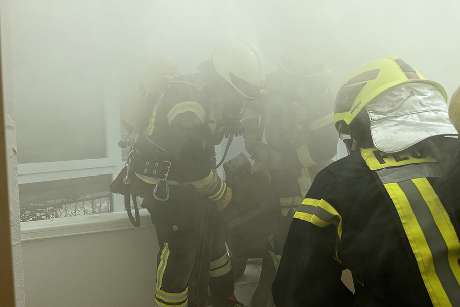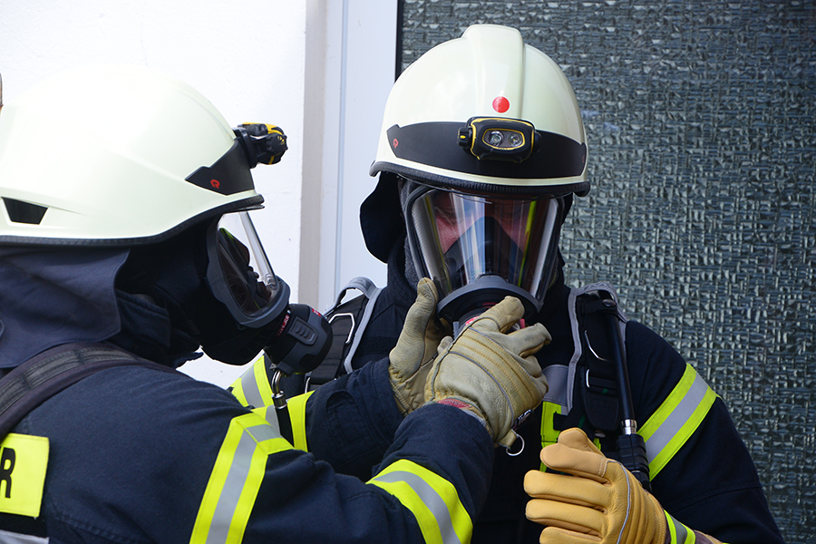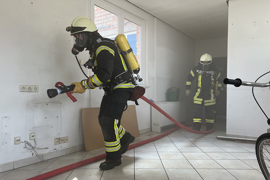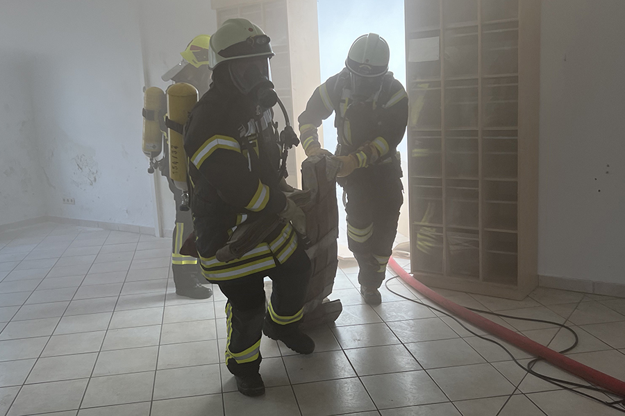 Wenn eine Einsatzkraft nicht mehr ohne externe Hilfe auskommt, liegt ein Atemschutznotfall vor und die Einsatzkräfte eilen dieser zu Hilfe. / Foto: Bastian Kroll