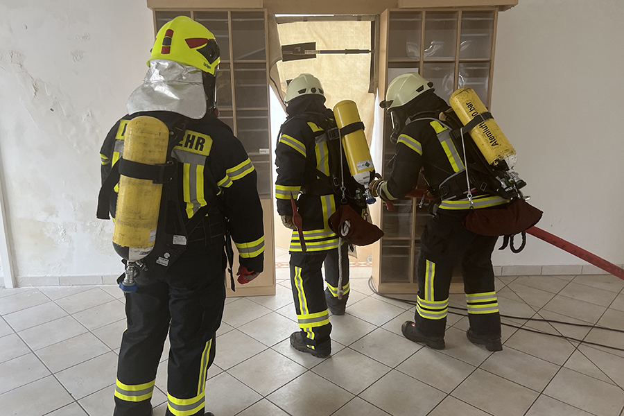 Nach einem theoretischen Teil im Feuerwehrhaus Burgdorf, in dem es darum ging, aus welchen Gründen ein Atemschutzgeräteträger in eine hilflose Lage geraten kann, wie man diese verhindert und wie man diesen begegnet, ging es über in den praktischen Teil.