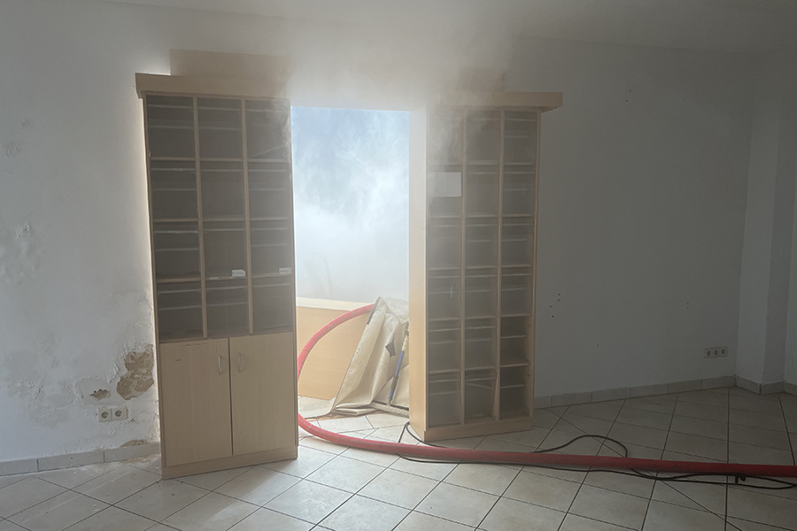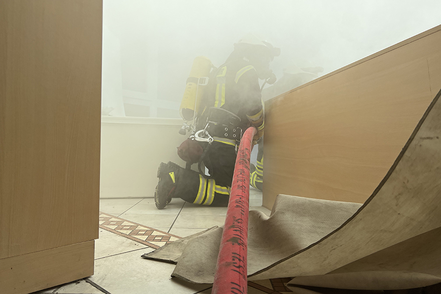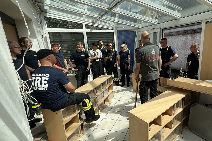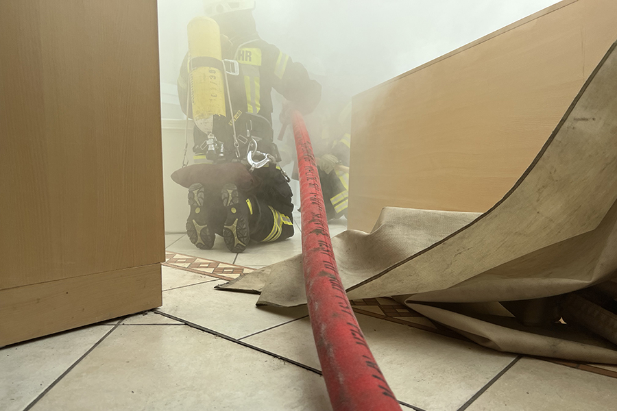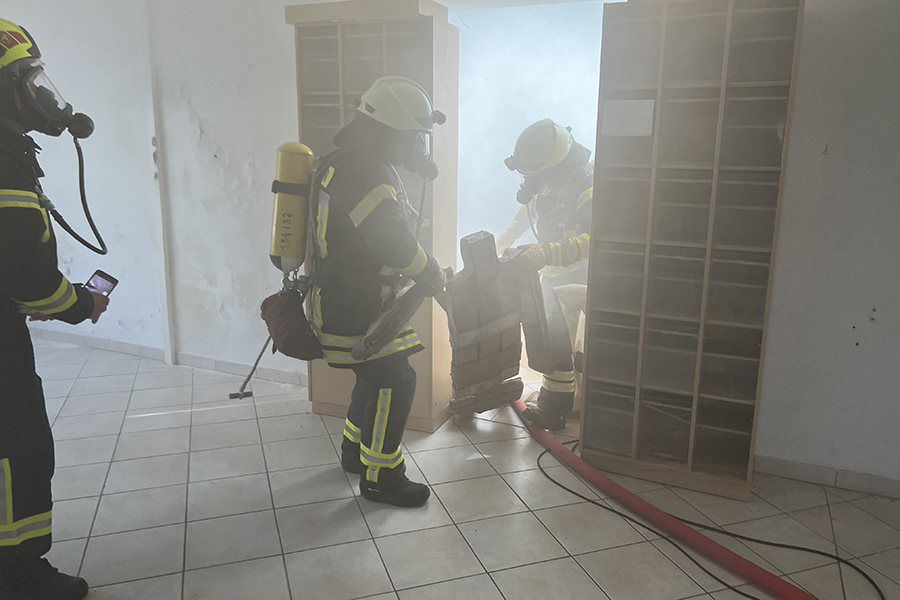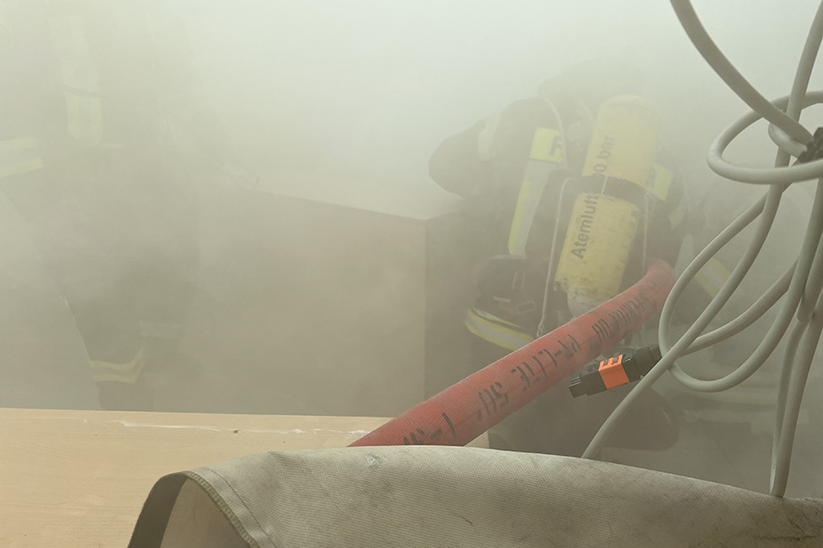 "Wir können hier ohne den Einsatz von Wasser und den damit einhergehenden Schäden auch in sensiblen Bereichen üben", so Feuerwehr-Stadtausbildungsleiterin Lena Ehrhardt. Weiterer Vorteil: Die Szenarien, eingeleitet durch den Notruf "Mayday, Mayday, Mayday", können immer und immer wieder durchgespielt oder aber ohne großen Aufwand neue Übungsszenarien aufgebaut werden.