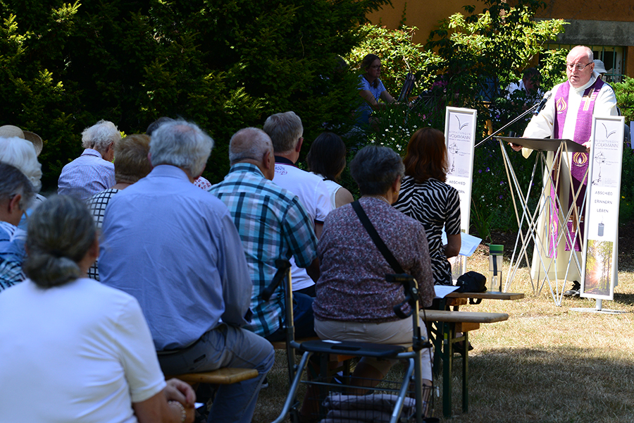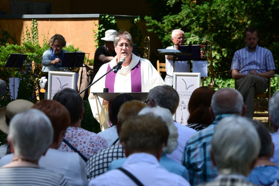 In Würde Abschied nehmen: Das war vielen nach dem Tod eines geliebten Menschen während Teilen der Corona-Pandemie versagt worden. Aus diesem Grund haben am gestrigen Sonnabend, 2. Juli 2022, die St. Pankratius Kirchengemeinde, die Nikolaus-Gemeinde und Volkmann Bestattungen zu "Abschied – Erinnern – Leben" hinter die Alte Landratsvilla (Rathaus II) eingeladen, um diesen Abschied noch gebührend nachholen zu können.