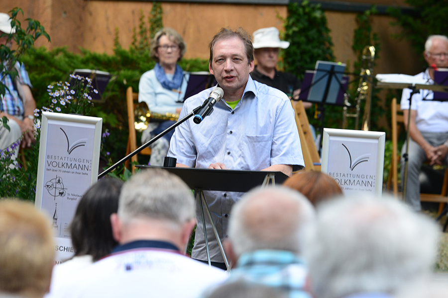 Ist eine Trauerfeier normalerweise auf eine Person ausgerichtet, so war "Abschied – Erinnern – Leben", begleitet vom Posaunenchor der St. Pankratiusgemeinde unter der Leitung von Kreiskantor Martin Burzeya, für alle gedacht, die während der Pandemie einen Menschen verloren haben und keine Möglichkeit hatten, diesen Abschied zu vollziehen. "Einen Abschied gab es zum Teil nur für ganz wenige Personen, alle anderen mussten draußen bleiben", so Thorsten Volkmann von Volkmann Bestattungen.