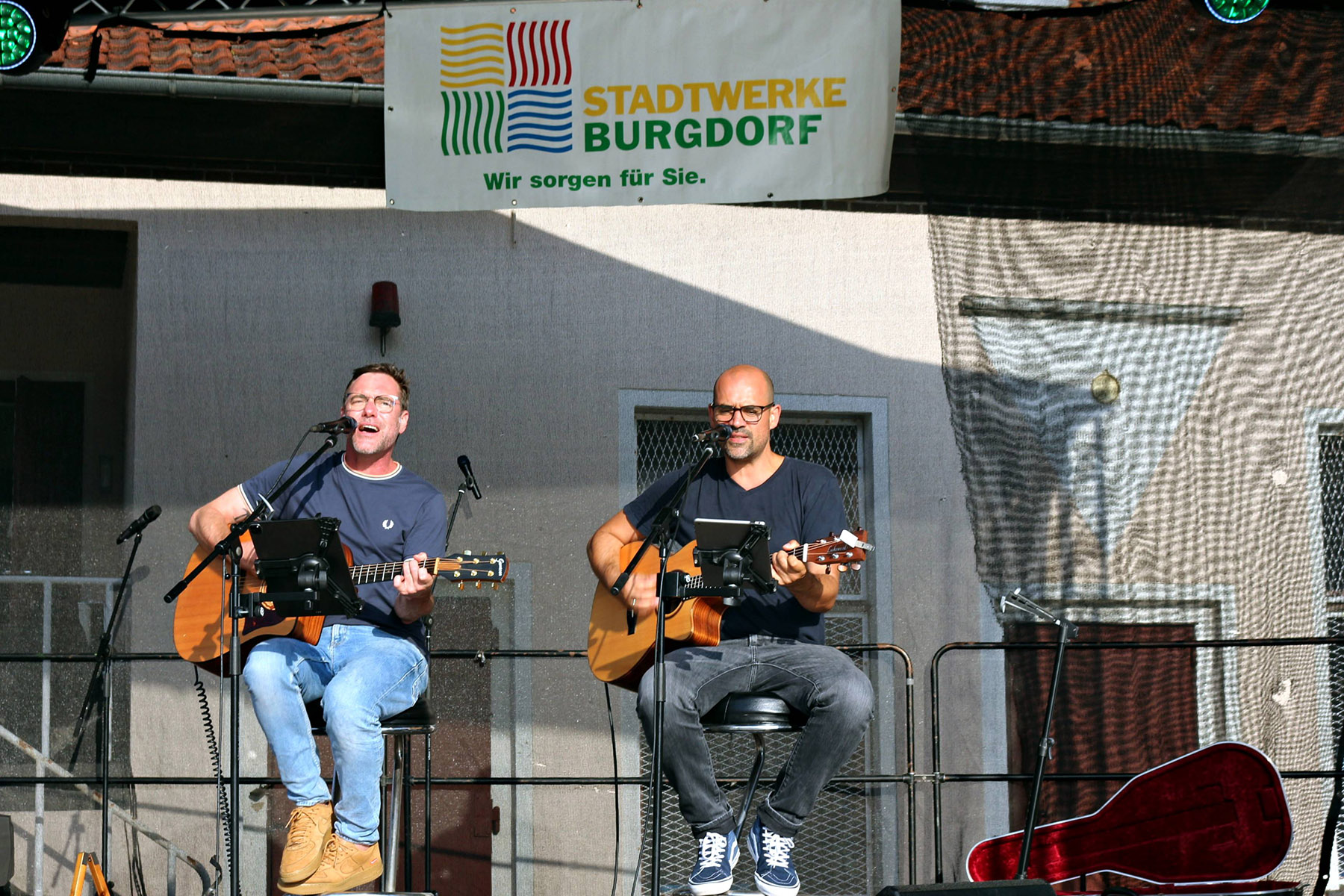 Aber als sich der graue Himmel und der unwillkommene Niederschlag am frühen Vormittag verzogen hatte, stand dem Sommerspaß bei Spinning und Kinderzumba mit dem Premium Sportclub im Burgdorfer Freibad eigentlich nichts mehr im Wege. Indessen zogen wieder Regenwolken heran und sorgten gegen Mittag für eine kurzfristig feuchte Auszeit der Aktivitäten. Allerdings ließ sich die Sonne bald wieder blicken. Und die Besucherschar sowie Stadtwerke-Geschäftsführer Frank Jankowski-Zumbrink und Marketingleiterin Carmen Bleicher, die sich von dem Schauer nicht hatten vertreiben lassen, konnten nun das Sommerfest bis zum musikalischen Finale mit Sängerin Antonia am Keyboard und Picasso`s Sons, die mit Gitarre und Gesang das "Schlussbild malten", in vollen Zügen genießen.