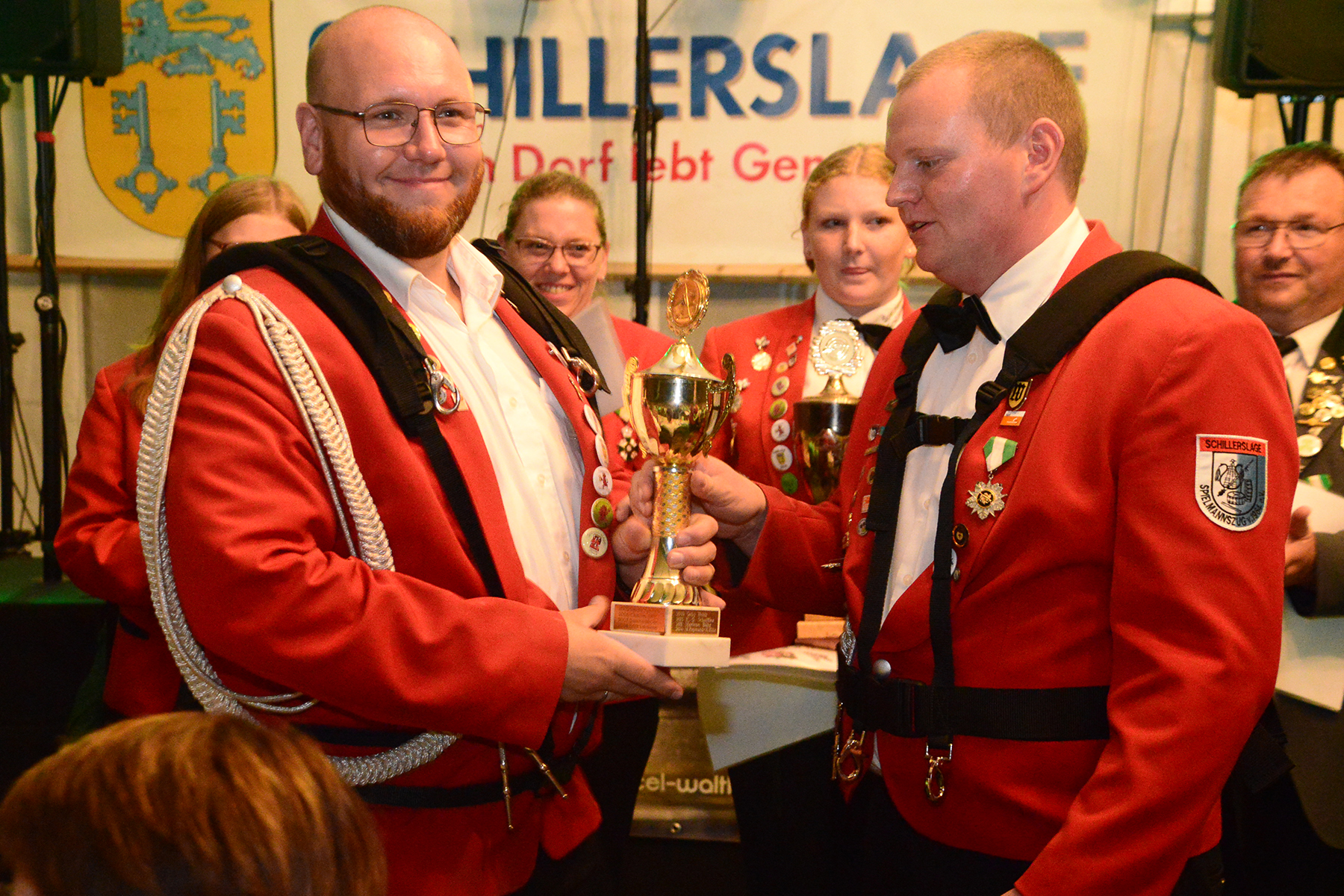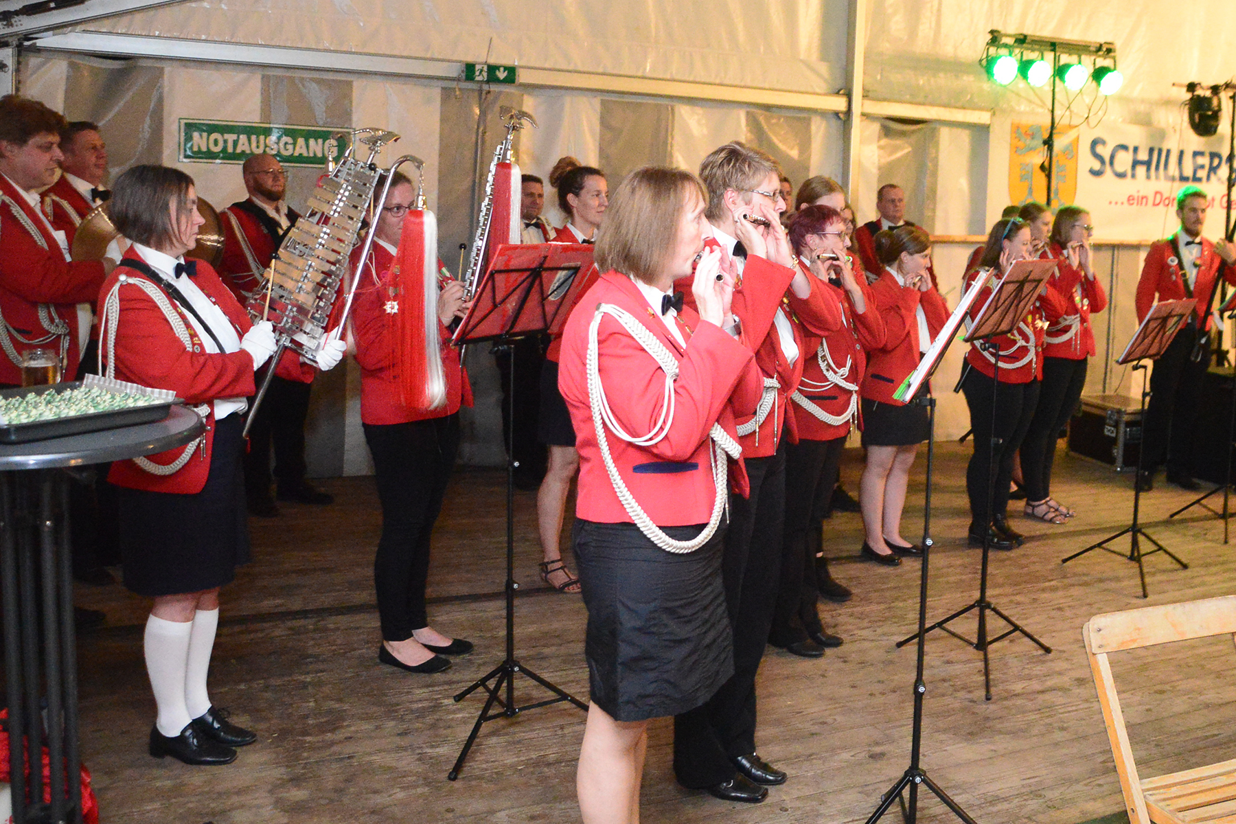 Musikalisch begleitet wurde der Abend durch den Spielmannszug des SSV Schillerslage, hinter dessen Auftritt vor dem Festwochenende ebenfalls ein Fragezeichen stand. Mit der Reaktivierung ehemaliger Mitspieler wurde ein spielfähiger Spielmannszug zusammengestellt, in dem auch neue Gesichter zu sehen waren, wie die 2. Vorsitzende erkannte, und der alle drei Tage die Feierlichkeiten begleiten wird.