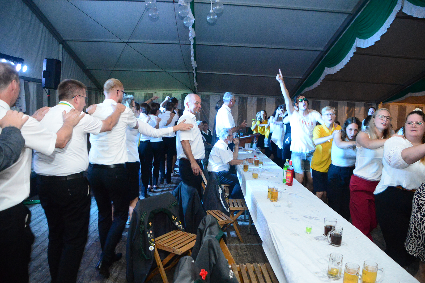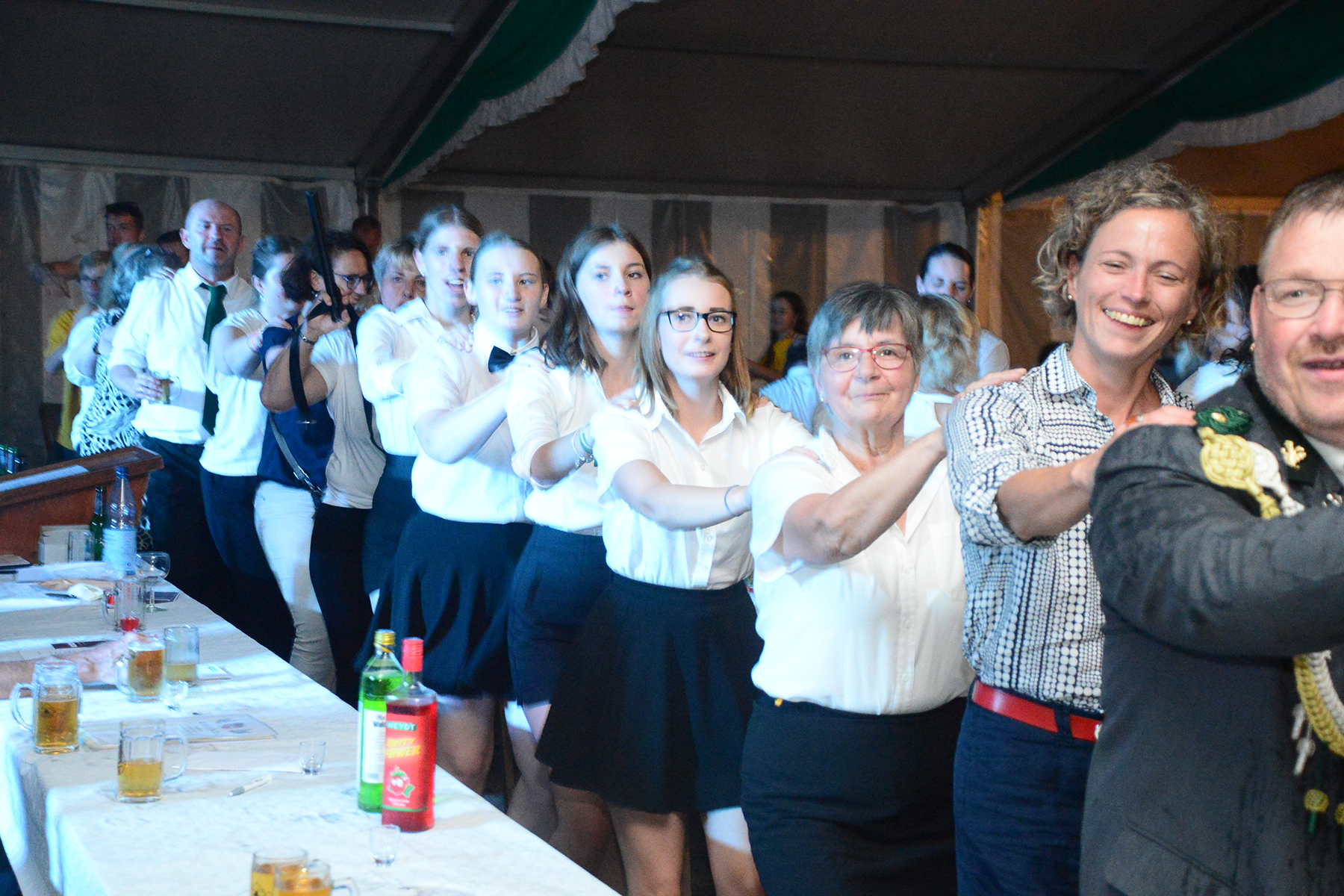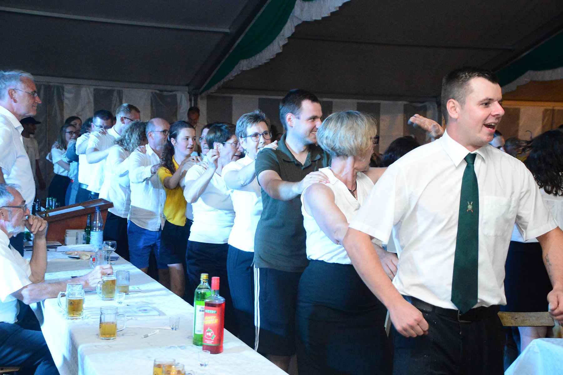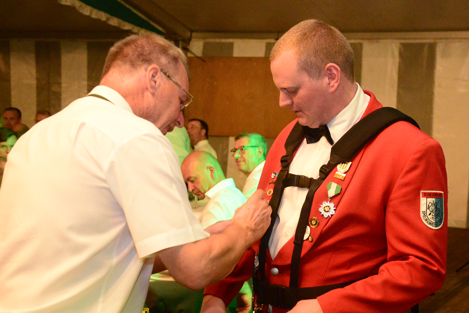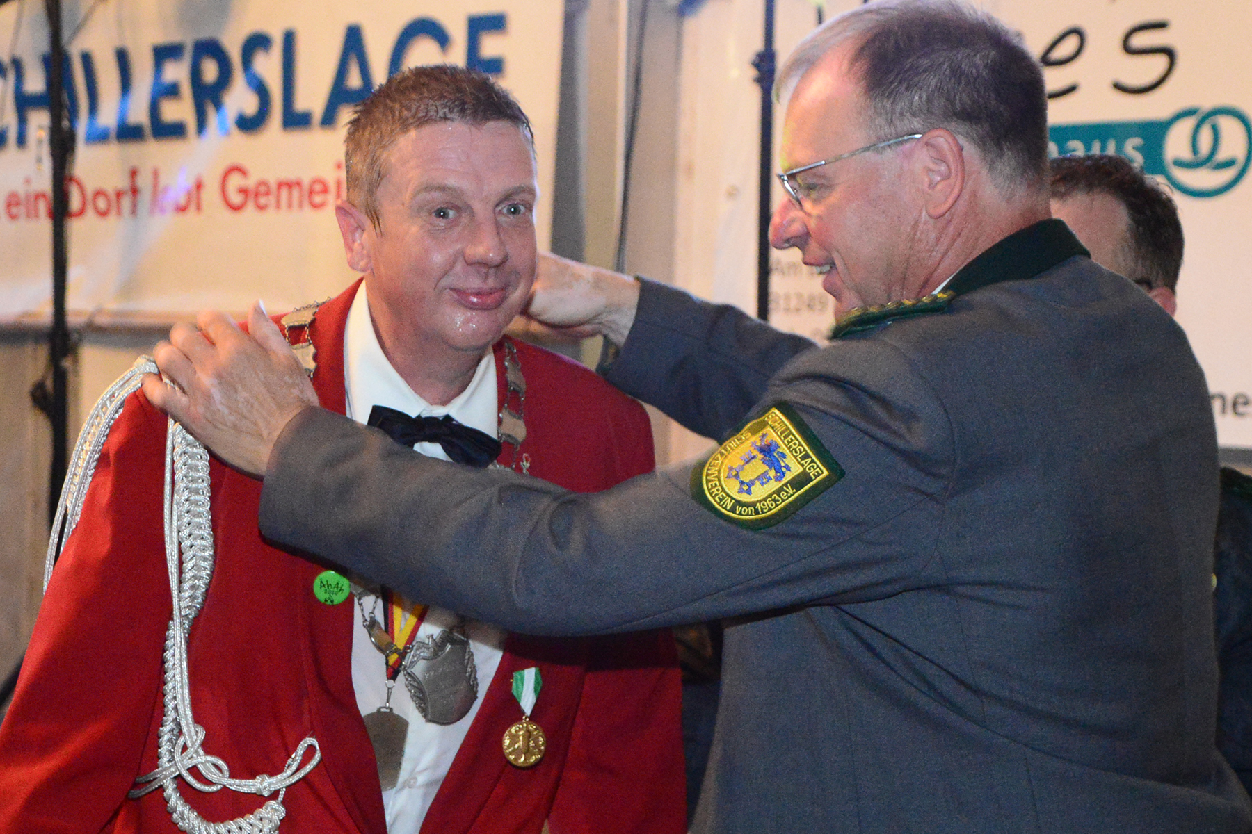 Drei Jahre war Corona-Zwangspause, doch zum Schützenfest in Schillerslage haben die Schützen des Sport- und Schützenvereins (SSV) Schillerslage und ihre Gäste beim Festkommers am gestrigen Freitag, 26. August 2022, an die Tradition nahtlos angeknüpft und einen fröhlichen Start ins Schützenfestwochenende hingelegt. Dass es beim Festkommers zum Schillerslager Schützenfest weniger bierernst zugeht, hatten die Gäste nicht vergessen: So zog während des Festaktes auch in diesem Jahr schon mal eine Polonaise durch die Reihen des Festzeltes oder es wurde zwischenzeitlich auf den Stühlen getanzt. Und der Regenschauer eines vorüberziehenden Gewitters wurde ebenso zur Erfrischung und Tanz im Regen genutzt.