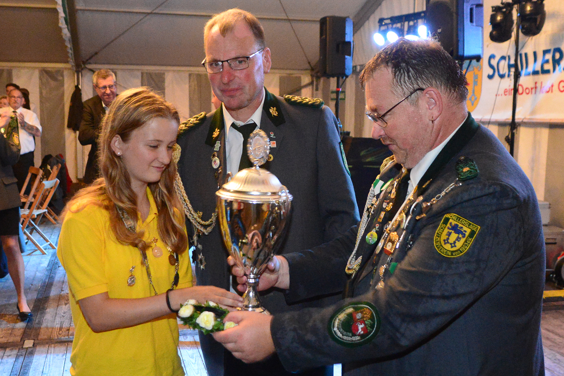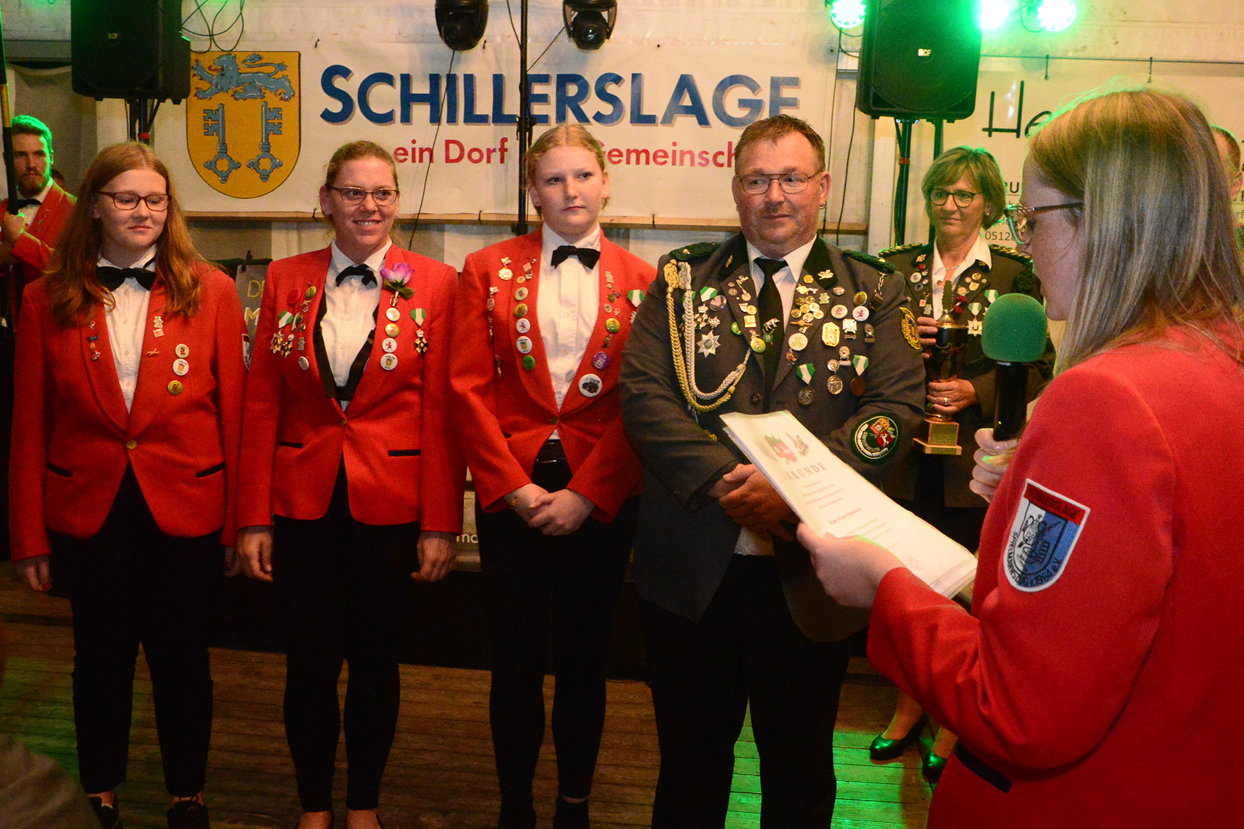 Unter den Gästen konnten zudem Ehrenmitglied Manfred Meyer, der Präsident des Kreisschützenverbandes Burgdorf, Werner Bösche, die Landtagsabgeordnete Thordies Hanisch, Vertreter des Ortsrates, der VVV-Vorsitzende Karl-Ludwig Schrader, die Freiwillige Feuerwehr Schillerslage, die Schützenvereine aus Otze, Burgdorf, Sorgensen und Hülptingsen sowie die Aue Rosen und Junggesellen der Burgdorfer Schützengesellschaft begrüßt werden.