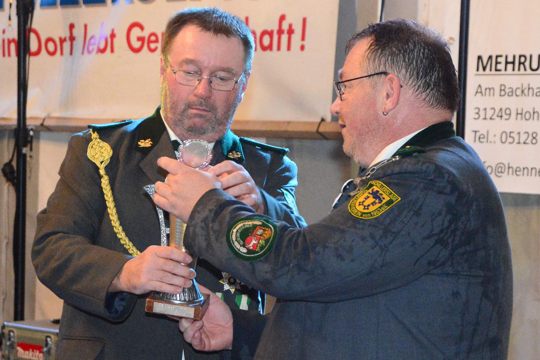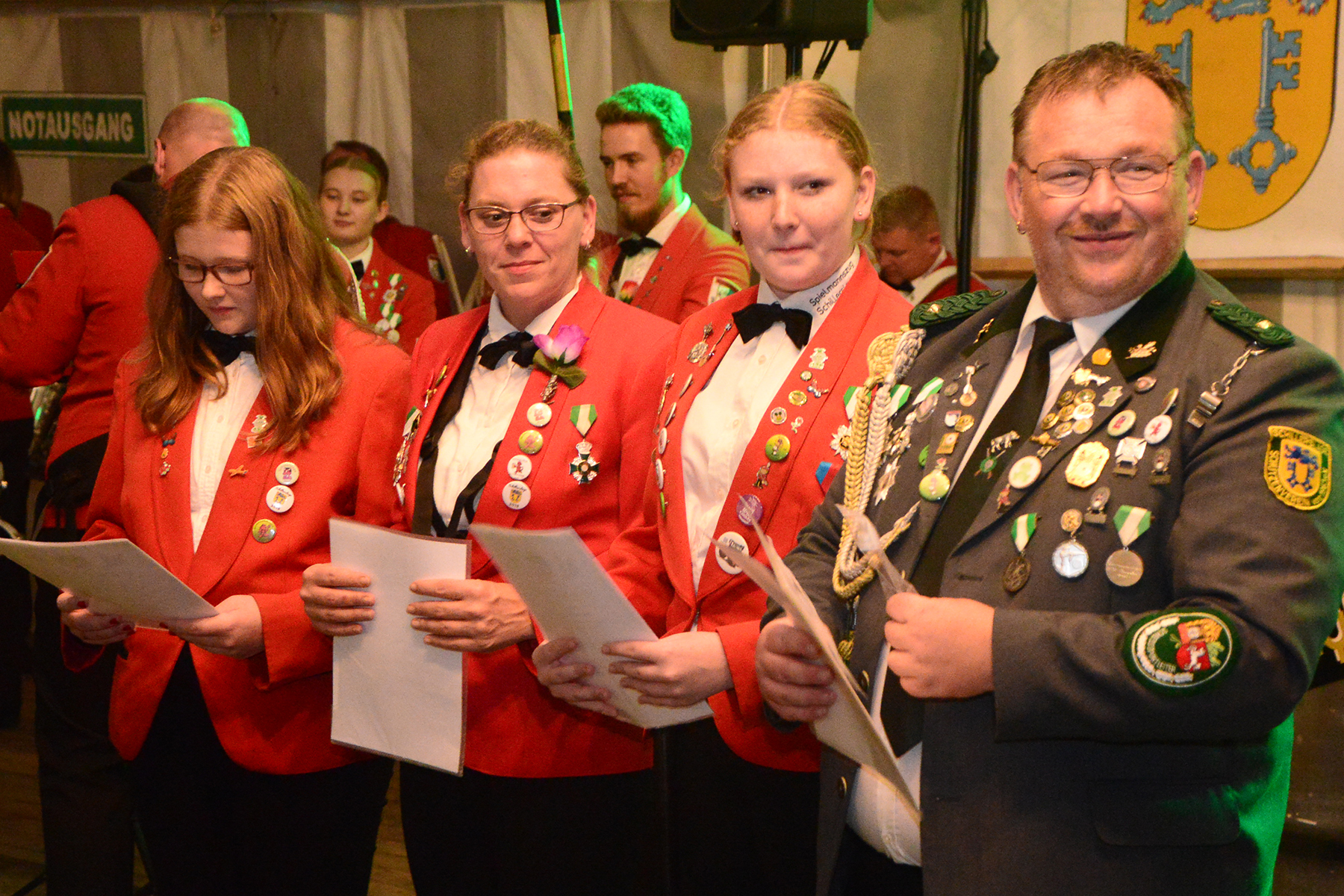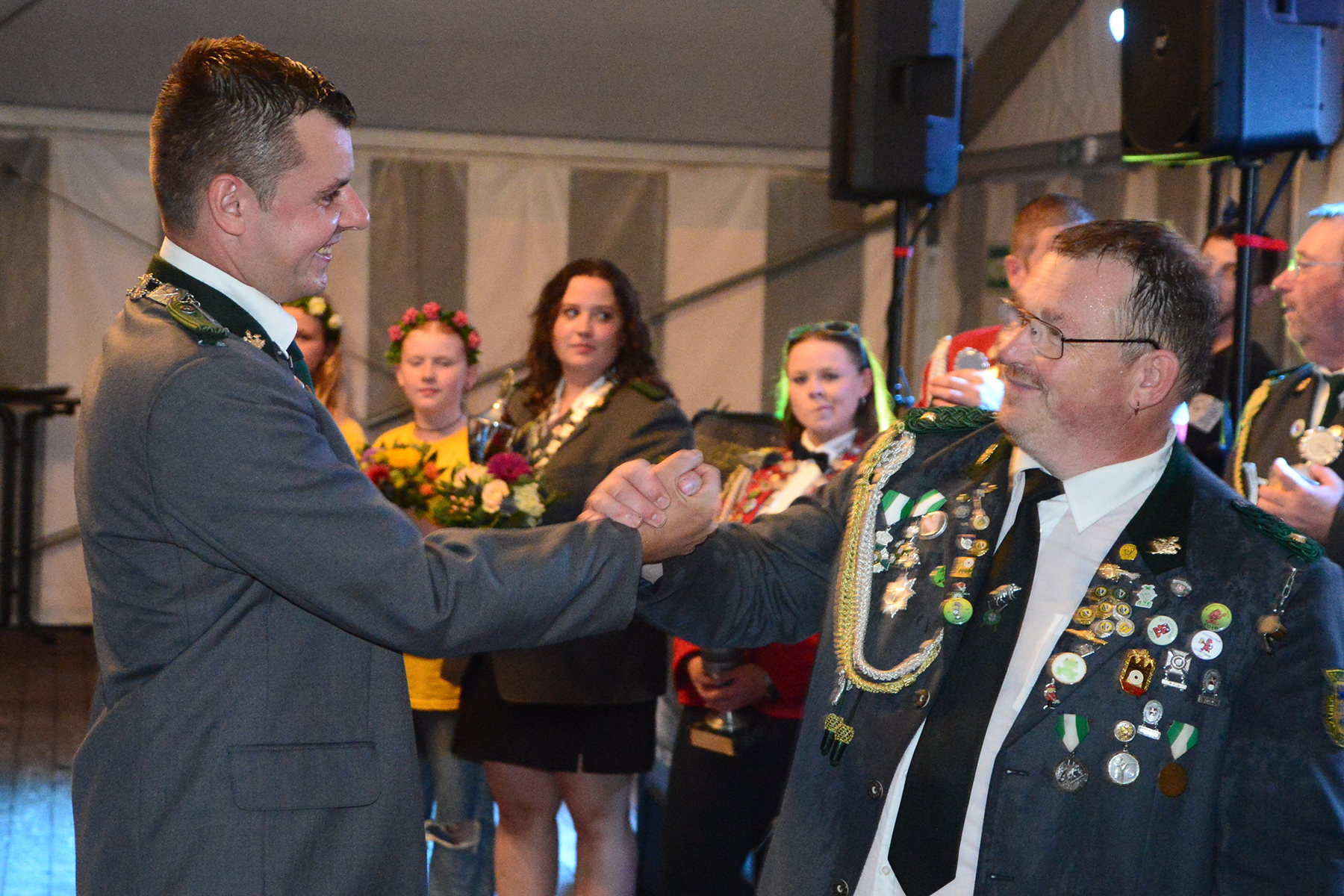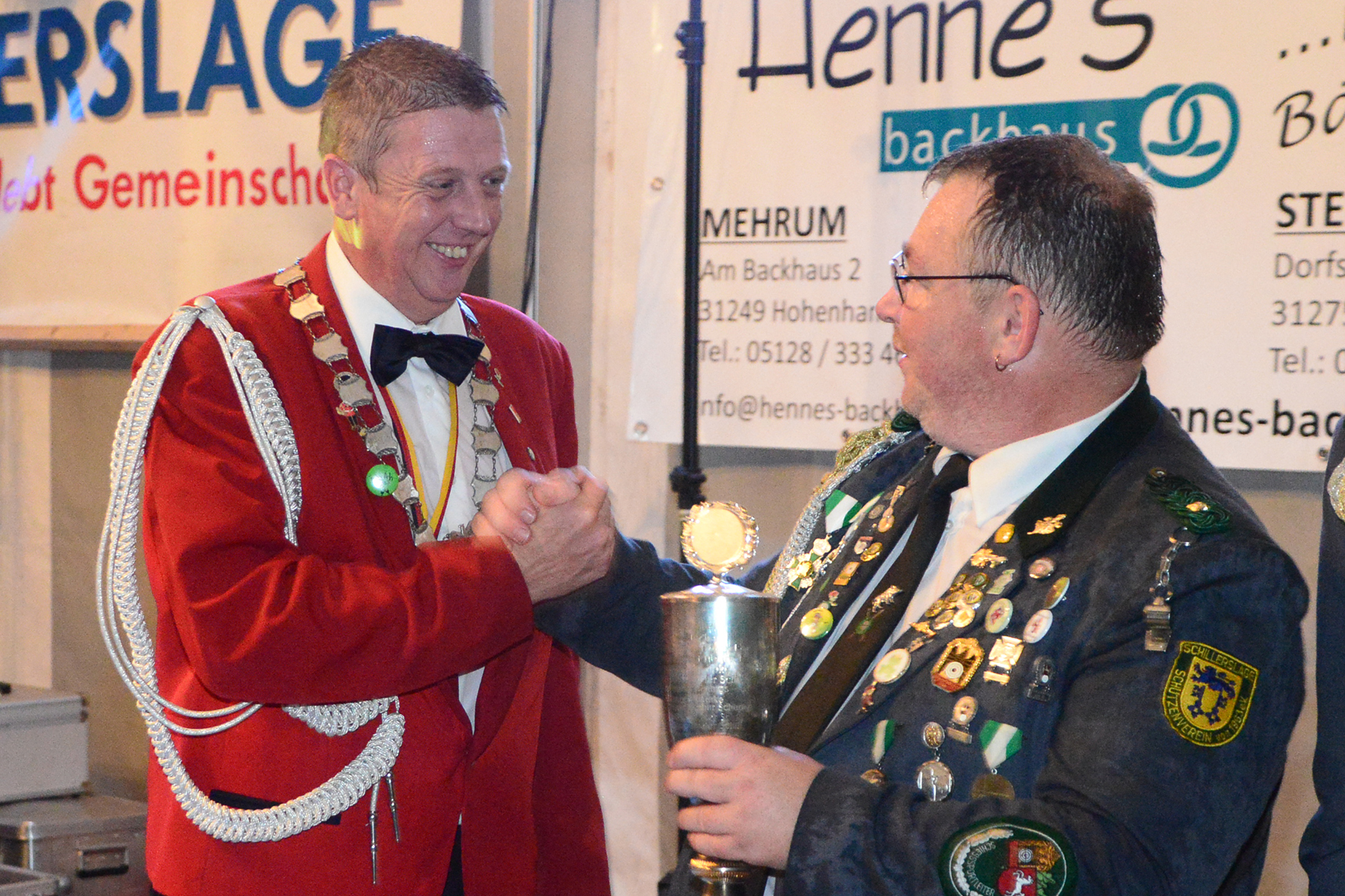 Ehe die neuen Majestäten, die am vergangenen Sonntag bekannt gegeben worden waren, inthronisiert werden konnten, nutzte der Vorstand die Gelegenheit, Dank an Kerstin Huth vom Festausschuss auszusprechen. Weiter wurden der Damenpokal an Katharina Scharringhausen und der Schützenpokal an Jörg Reupke überreicht. Der Spielmannszug hatte in seinen Reihen ebenfalls einen Pokal ausgeschossen: Den Oldiepokal errang Kim Scharringhausen. Die Ehrung des Spielmannszuges mit dem "Pokal der 1000 Möglichkeiten" ging an Tobias Bähr. Zudem ehrten der Verein wie auch der Spielmannszug langjährige Mitglieder.