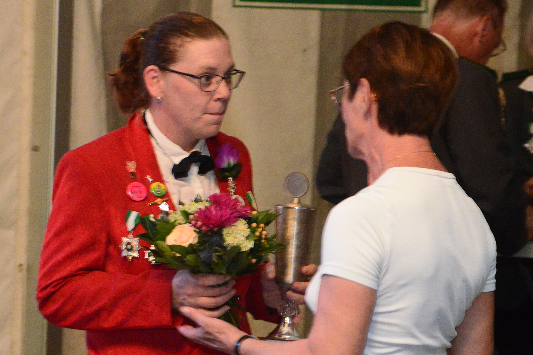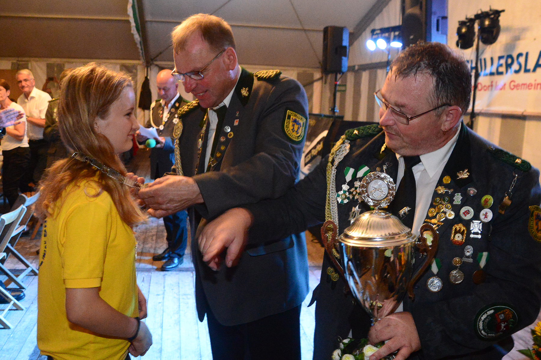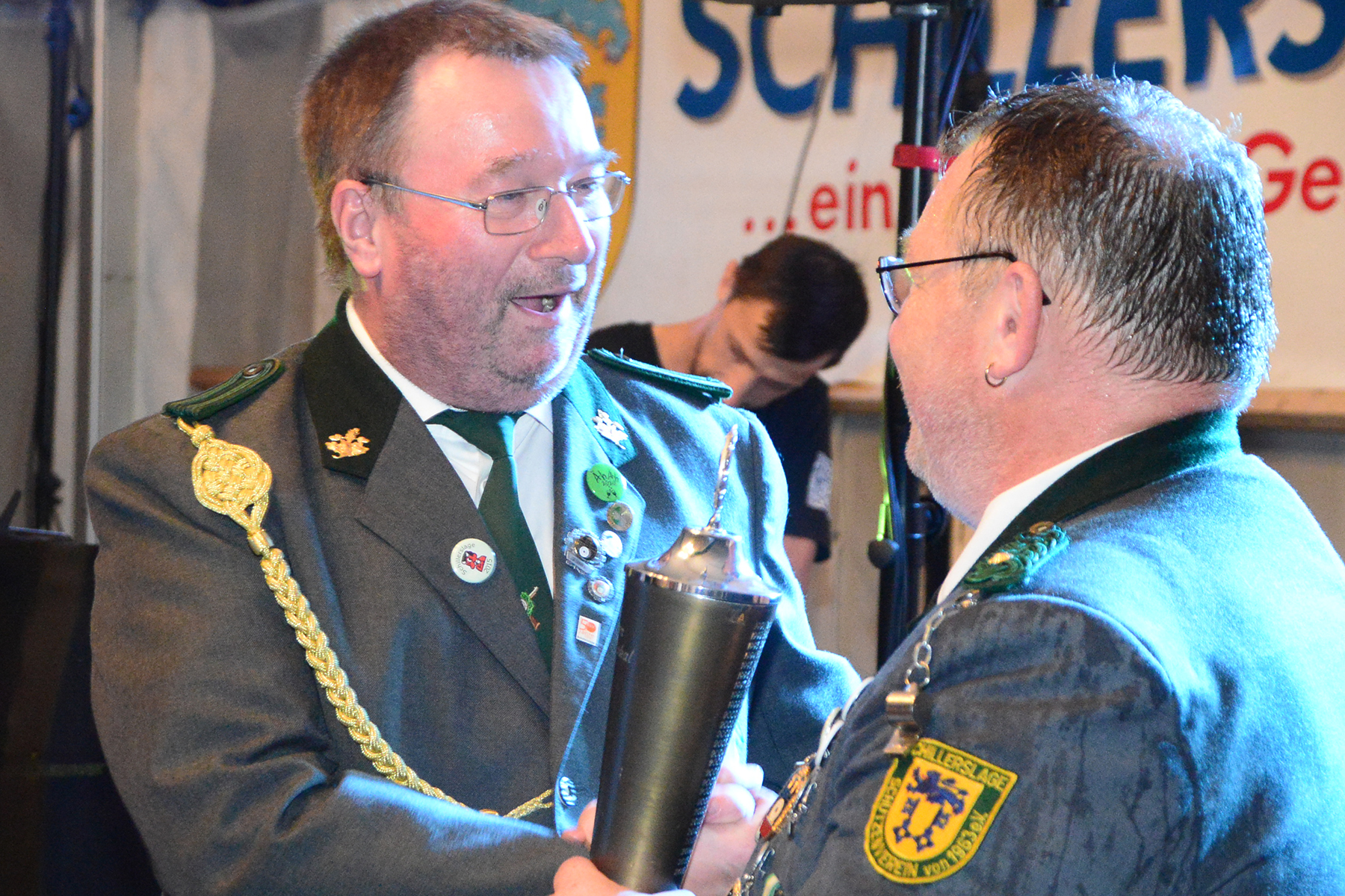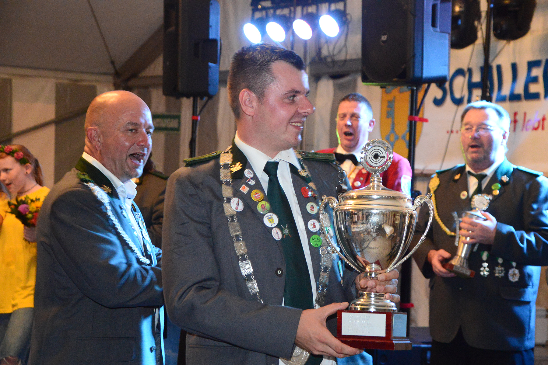 Ehe die neuen Majestäten, die am vergangenen Sonntag bekannt gegeben worden waren, inthronisiert werden konnten, nutzte der Vorstand die Gelegenheit, Dank an Kerstin Huth vom Festausschuss auszusprechen. Weiter wurden der Damenpokal an Katharina Scharringhausen und der Schützenpokal an Jörg Reupke überreicht. Der Spielmannszug hatte in seinen Reihen ebenfalls einen Pokal ausgeschossen: Den Oldiepokal errang Kim Scharringhausen. Die Ehrung des Spielmannszuges mit dem "Pokal der 1000 Möglichkeiten" ging an Tobias Bähr. Zudem ehrten der Verein wie auch der Spielmannszug langjährige Mitglieder.