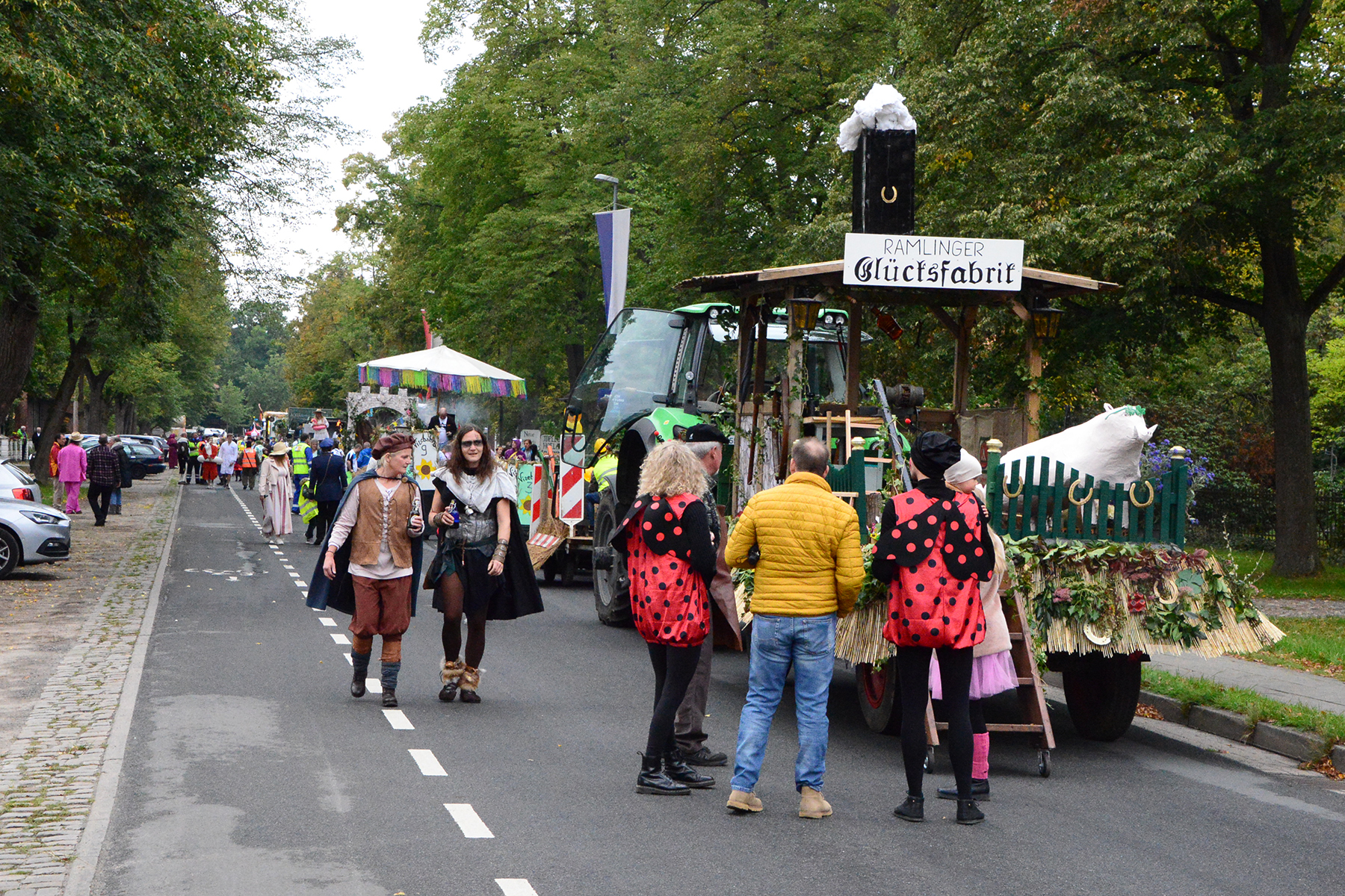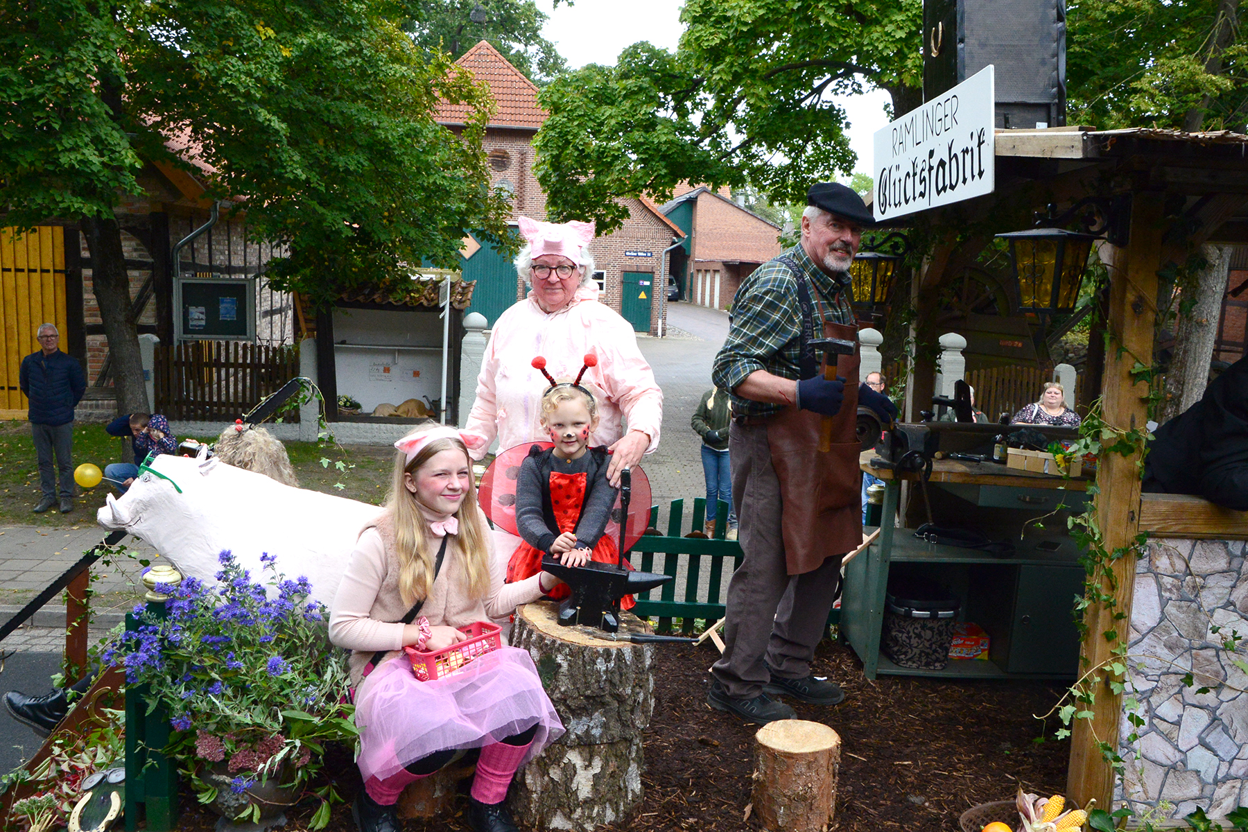 Es war aber nicht alles so düster: Die "Ramlinger Glücksfabrik" hatte genügend "Schwein" und Hufeisen wie auch einen Glücksschmied, Schornsteinfeger und Marienkäfer dabei, um Glück für alle bereitzuhalten. Glück hatten die Teilnehmer auf jeden Fall mit dem Wetter: Nur leichter Nieselregen kam runter, der den Besuchern und Festumzugsteilnehmern nicht die Laune verdarb. Viel Spaß hatten sicherlich die zehn Teilnehmer der "Vizebahn, die zusammen eine Achterbahnfahrt unternahmen.
