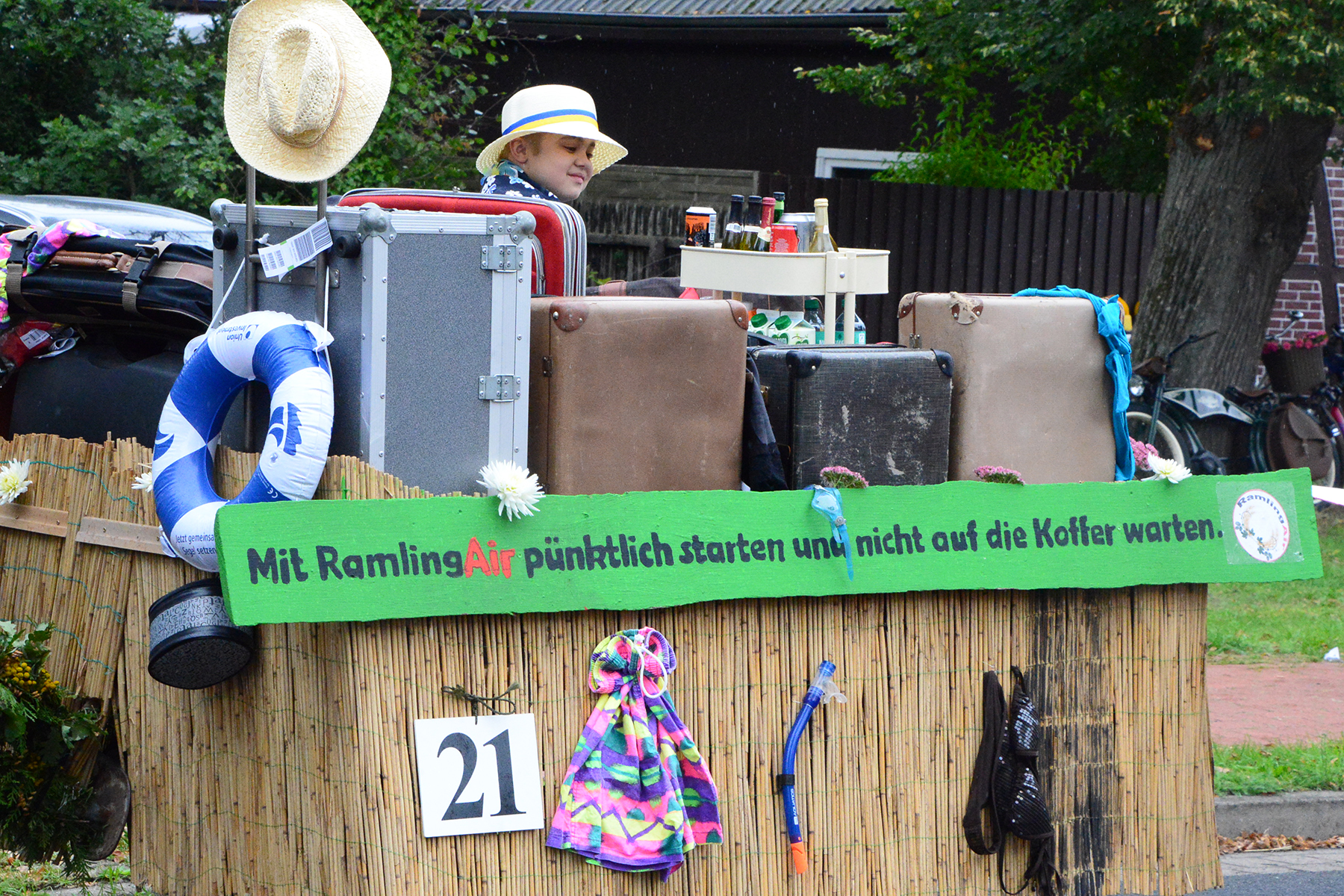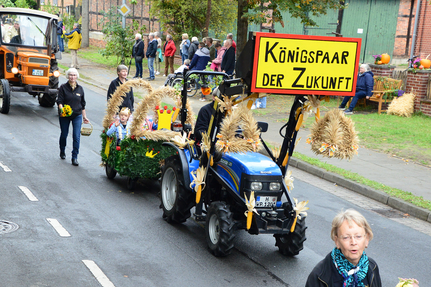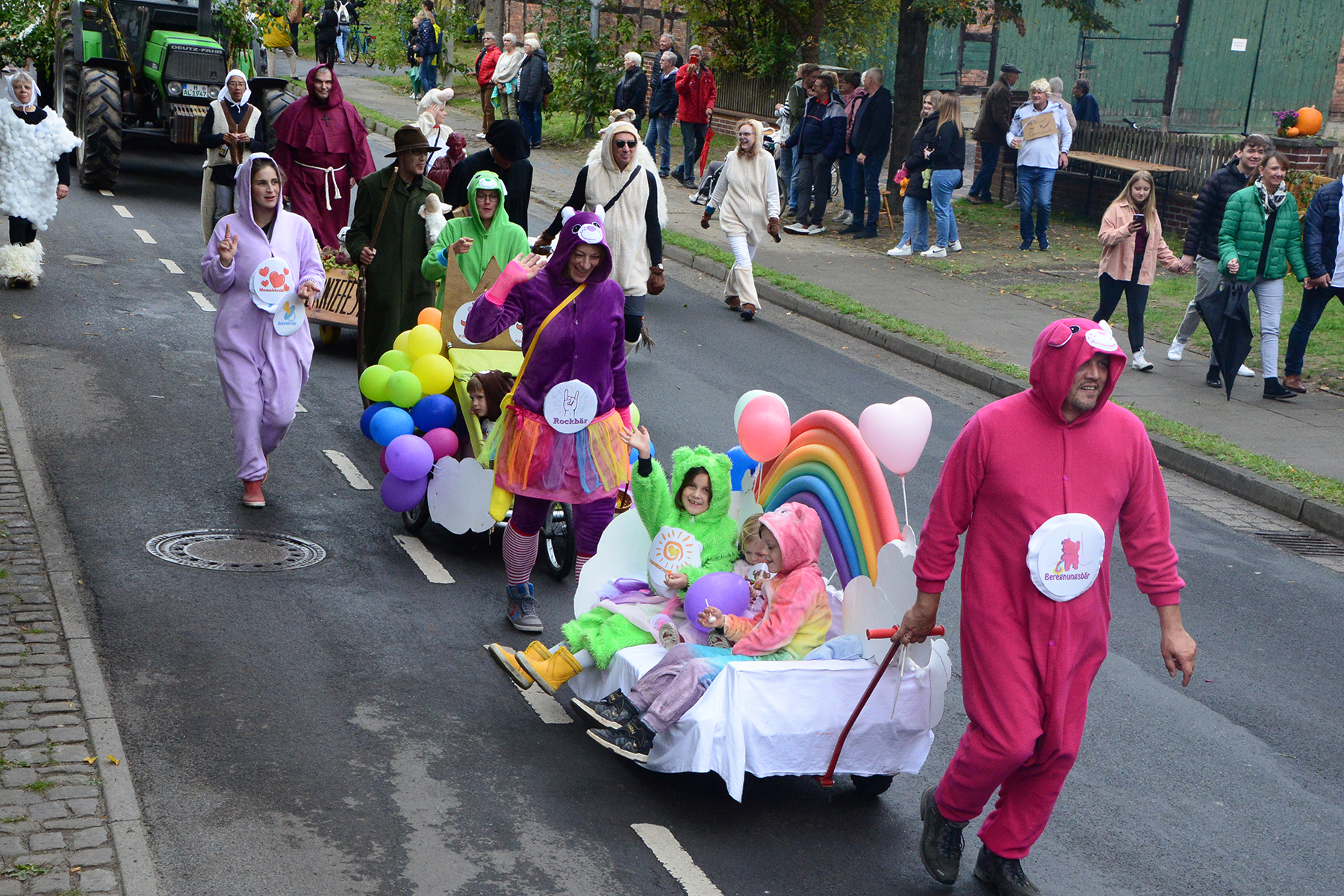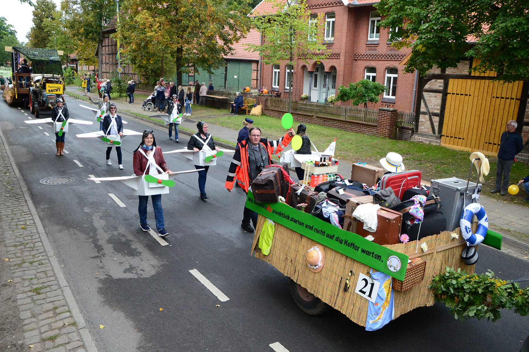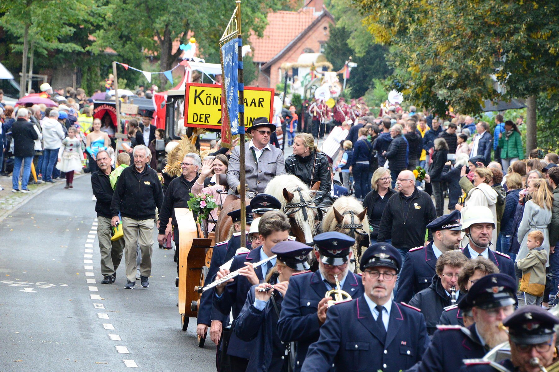 Doch ehe es zur Proklamation des 50. Erntekönigs ging, stand der erste Festumzug des Ramlinger Erntefestes auf dem Programm. Die Erntegruppen hatten sich wieder voll ins Zeug gelegt und in den vergangenen Wochen und Monaten an ihren Wagen und Outfits gefeilt.