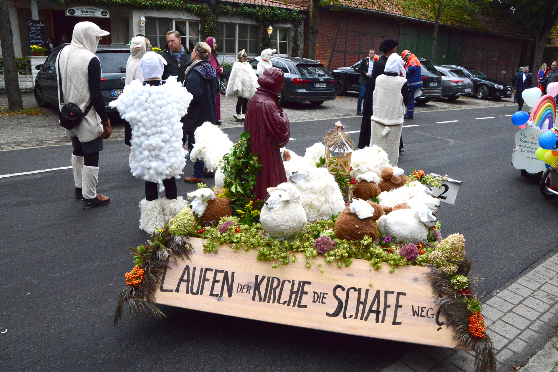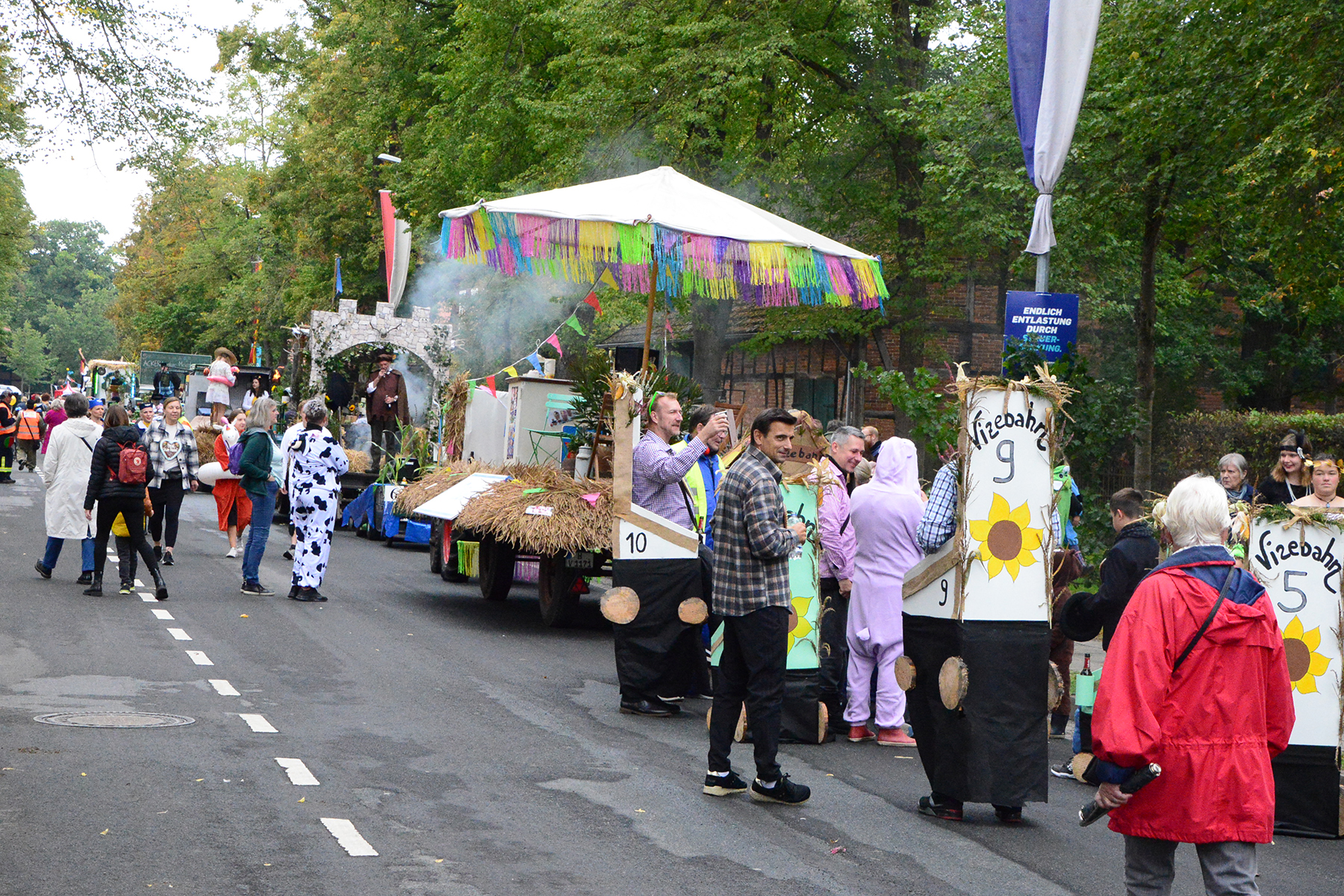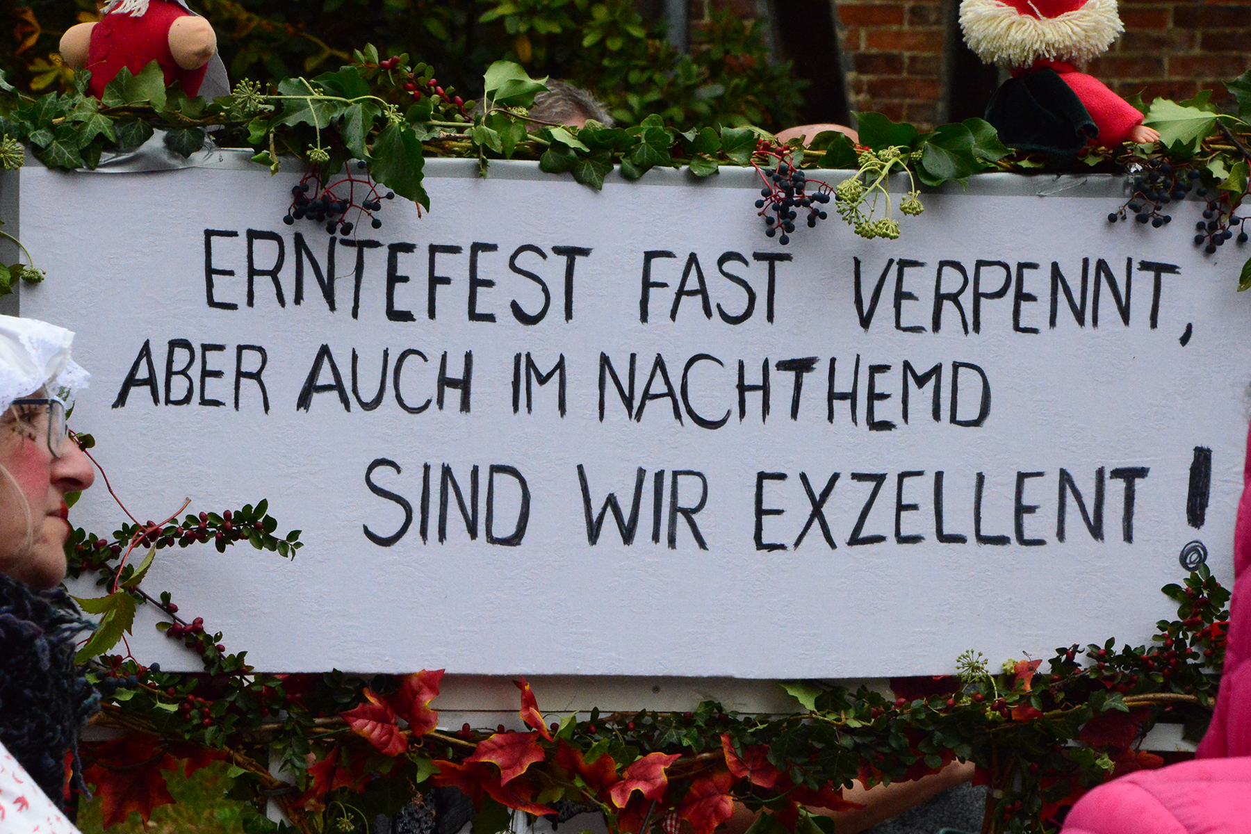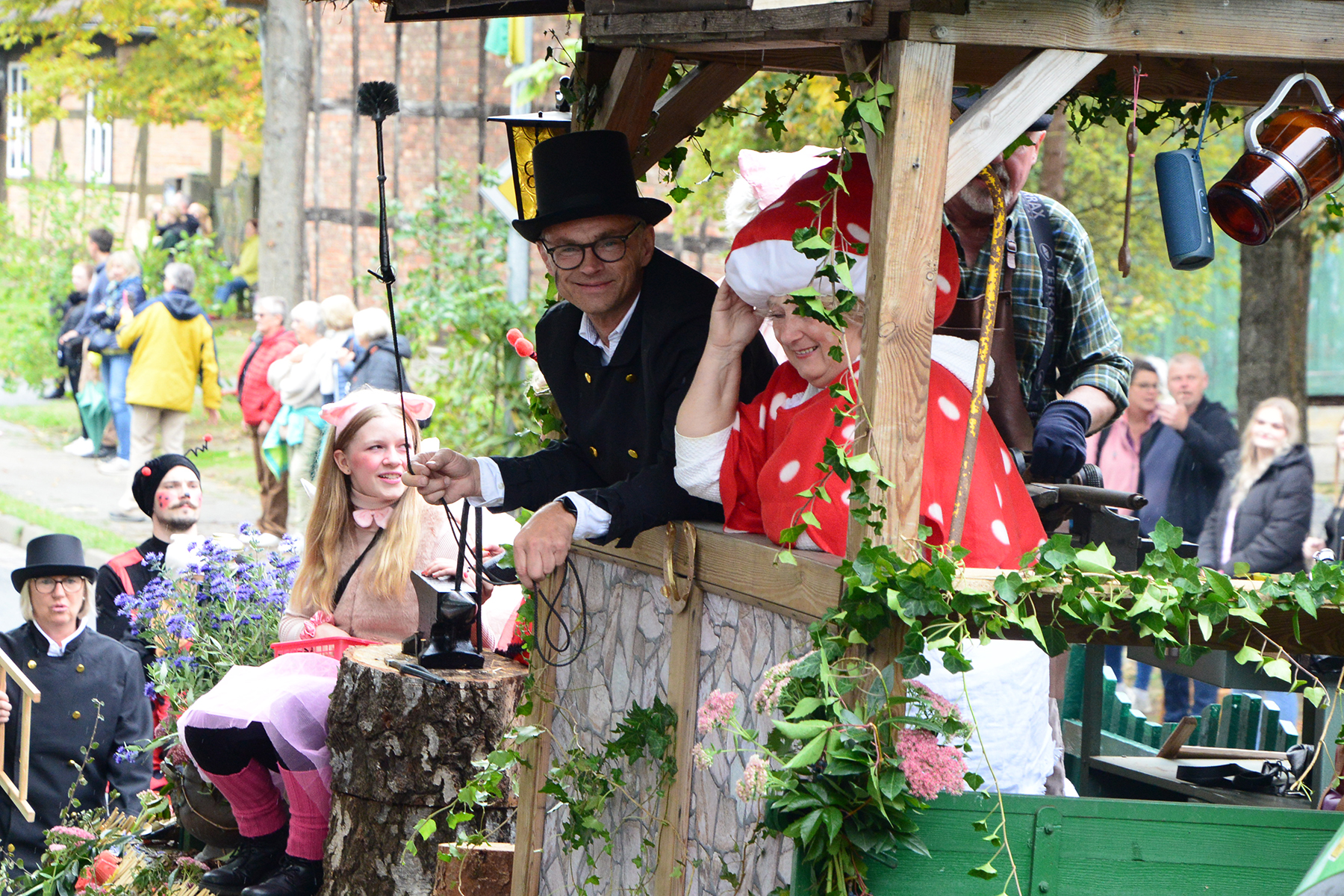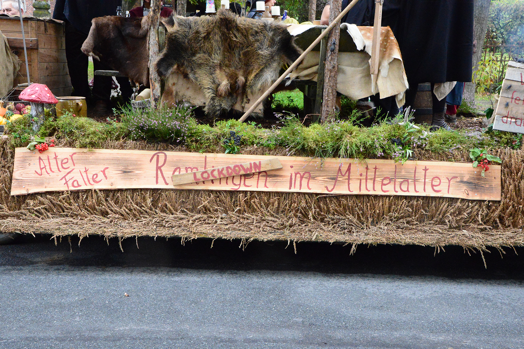 Doch ehe es zur Proklamation des 50. Erntekönigs ging, stand der erste Festumzug des Ramlinger Erntefestes auf dem Programm. Die Erntegruppen hatten sich wieder voll ins Zeug gelegt und in den vergangenen Wochen und Monaten an ihren Wagen und Outfits gefeilt.