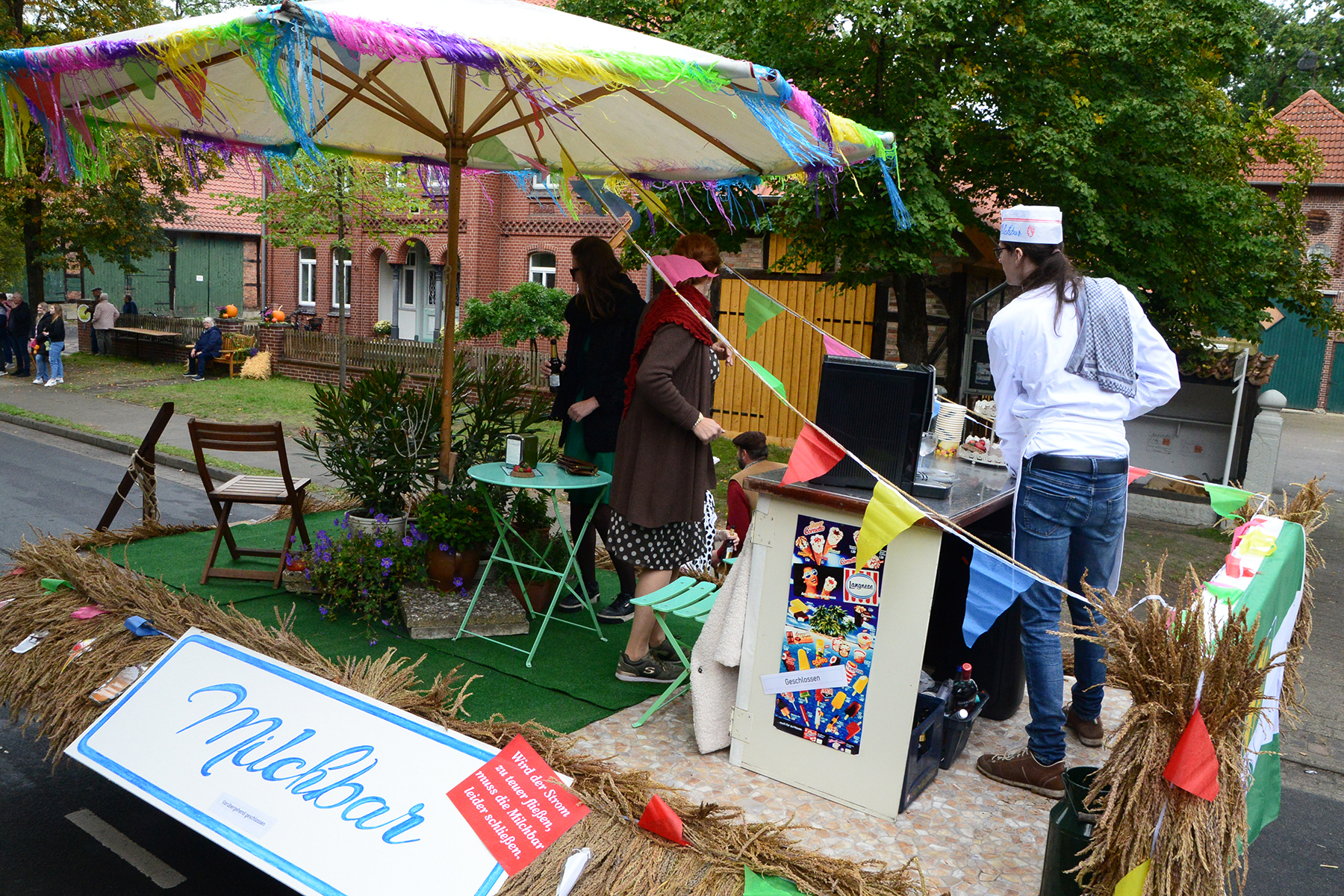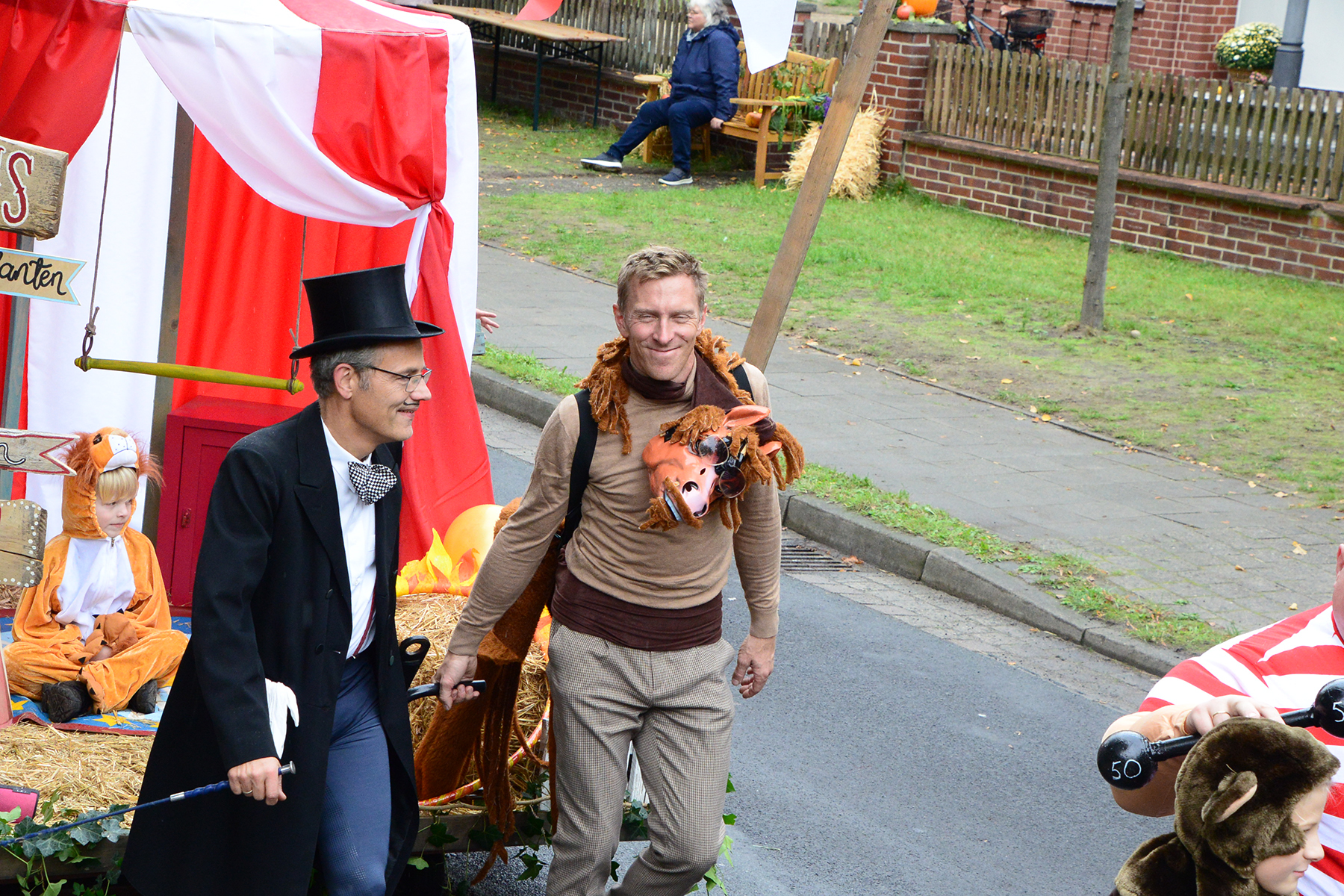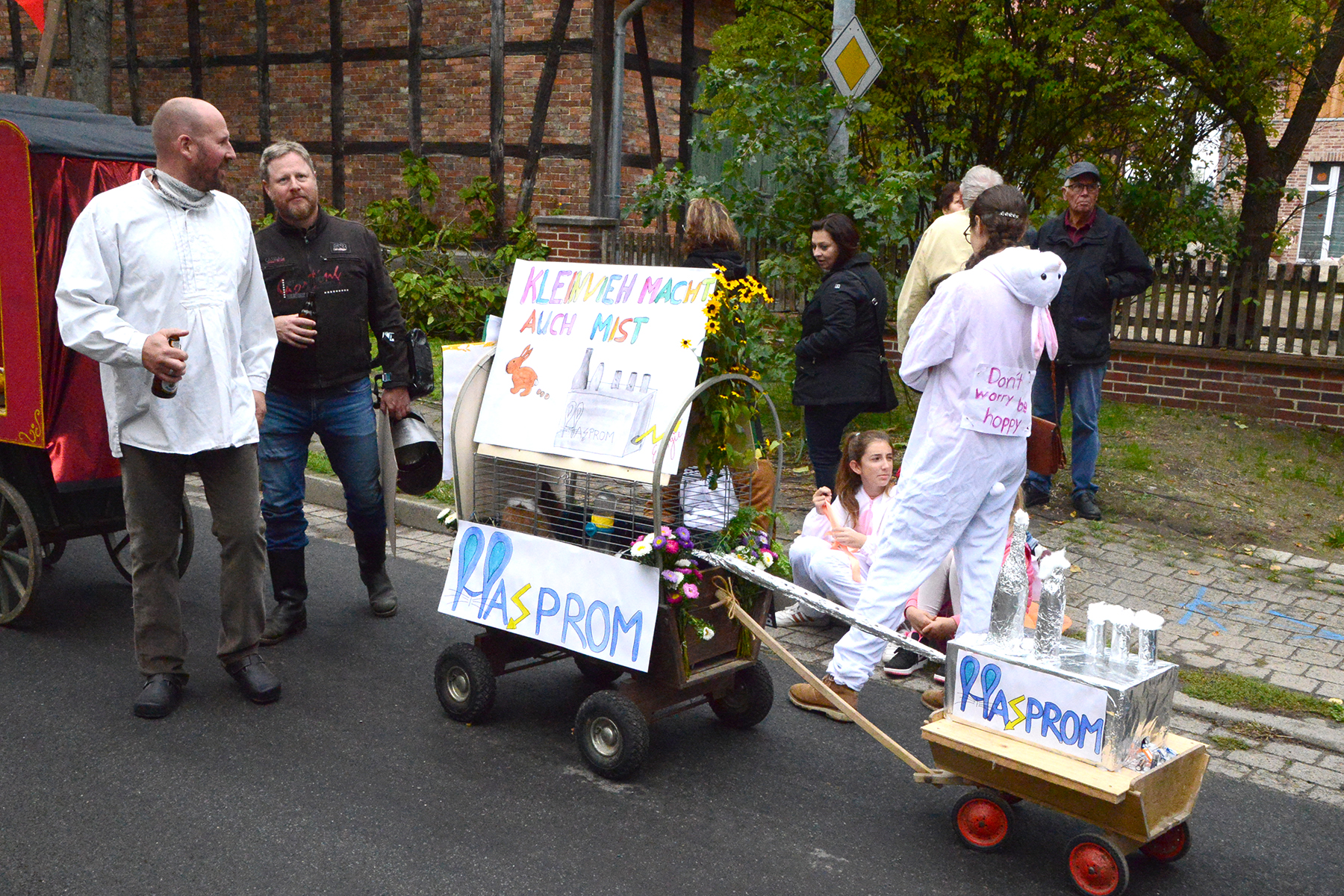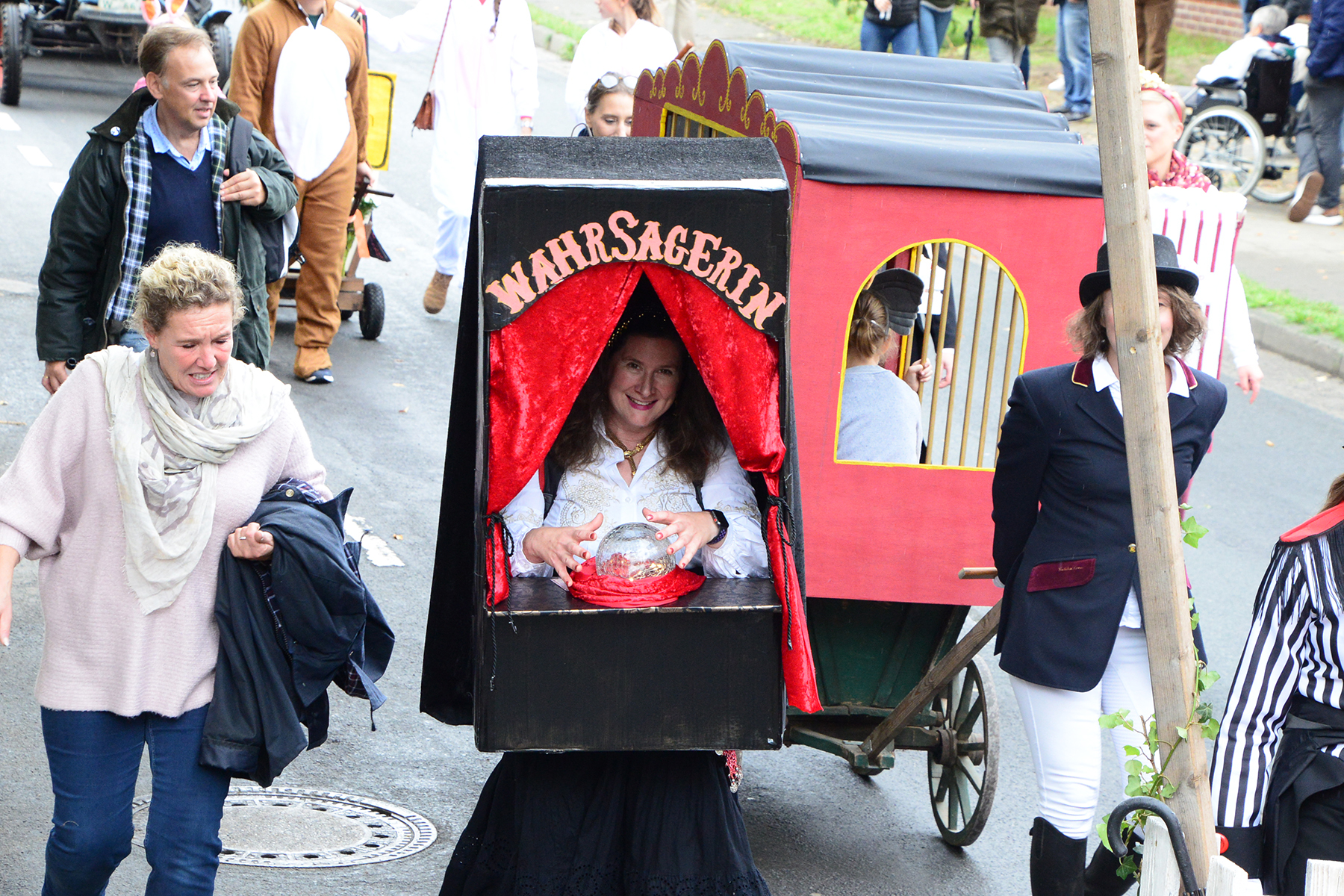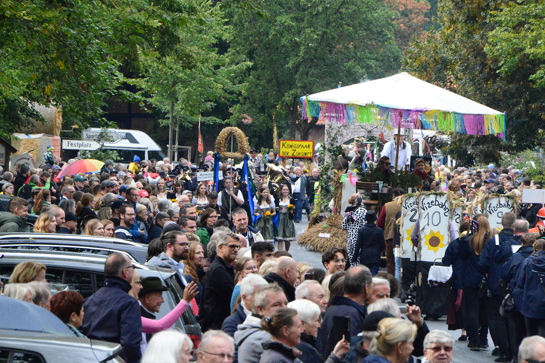 Doch ehe es zur Proklamation des 50. Erntekönigs ging, stand der erste Festumzug des Ramlinger Erntefestes auf dem Programm. Die Erntegruppen hatten sich wieder voll ins Zeug gelegt und in den vergangenen Wochen und Monaten an ihren Wagen und Outfits gefeilt.