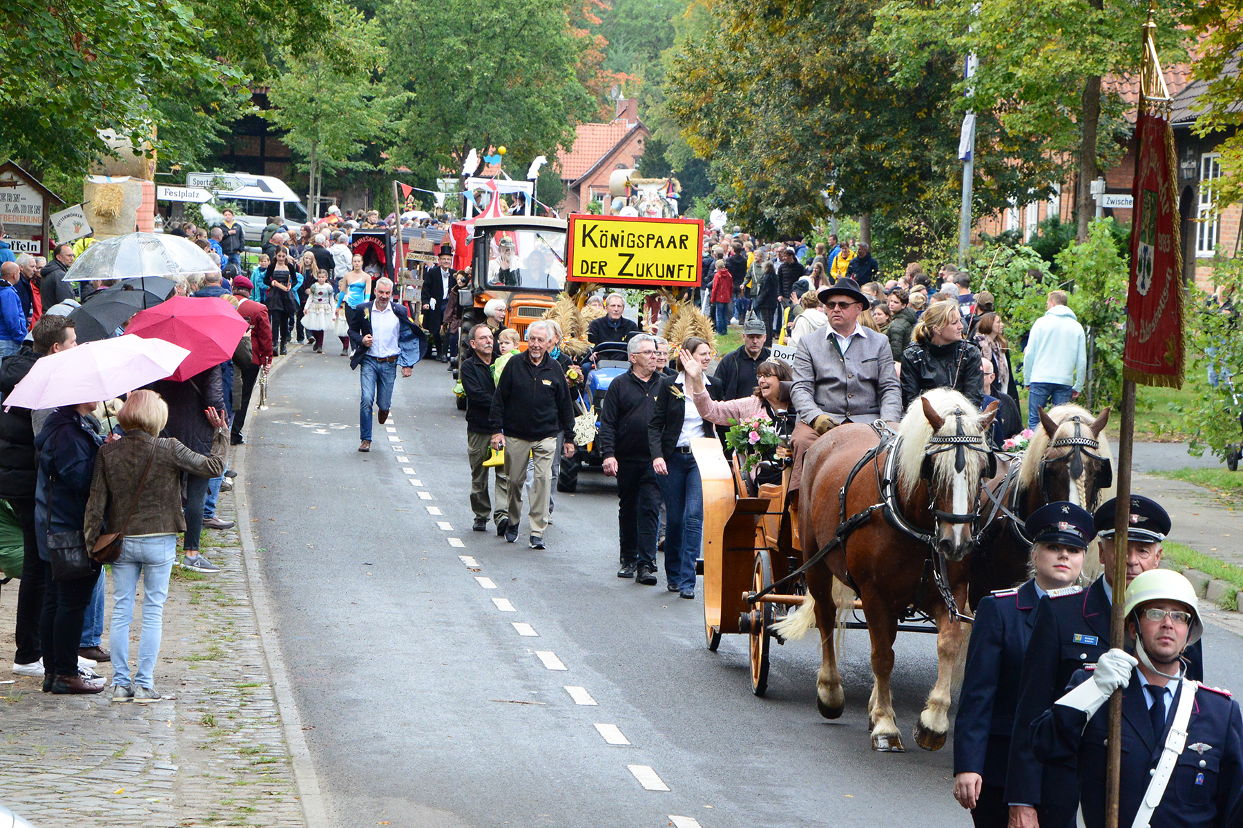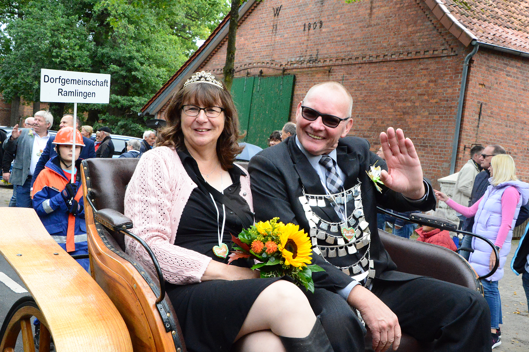 Zwei Jahre mussten die Festumzüge wegen der Corona-Pandemie ausfallen, doch die Ramlinger Dorfgemeinschaft hat intern trotzdem das Event nicht ausfallen lassen, so dass am diesem Wochenende nunmehr das 55. Erntefest in Ramlingen gefeiert wird. Nur ein neuer König wurde in den vergangenen zwei Jahren nicht ausgerufen. Dies wurde, nach dreijähriger Regentschaft von Martin I, nun geändert: König Frank II. und seiner königliche Hoheit Christiane übernahmen das Zepter..