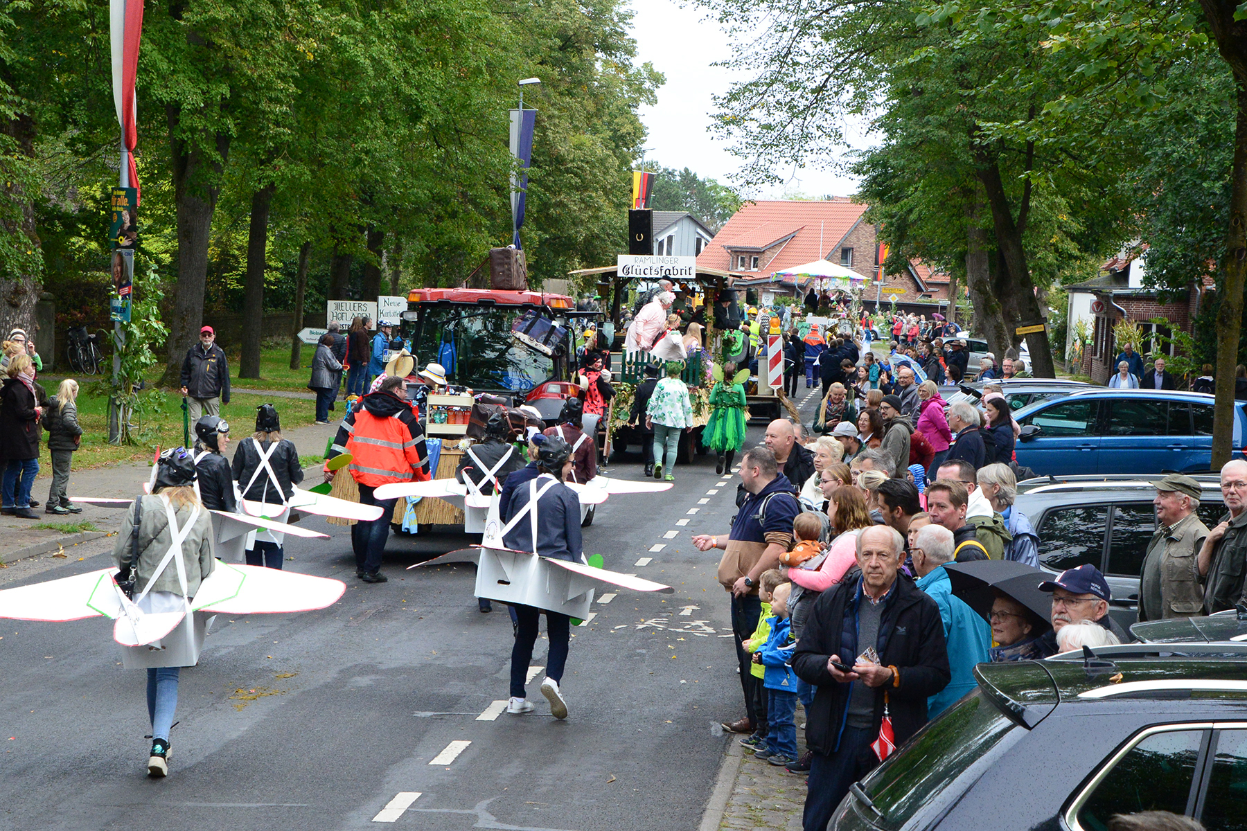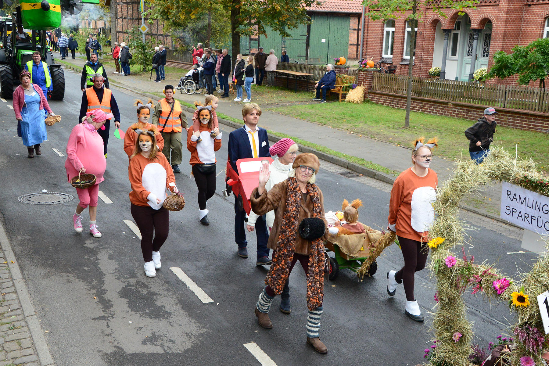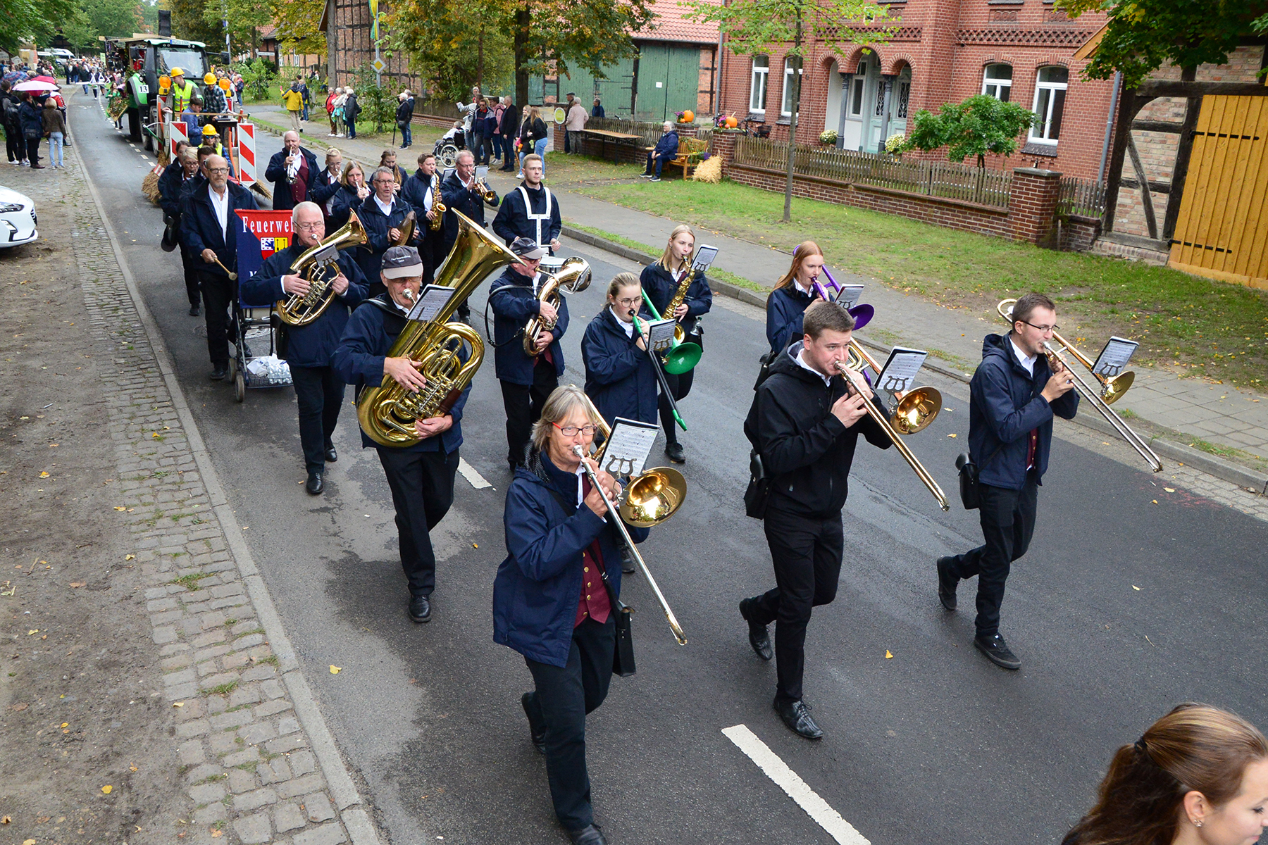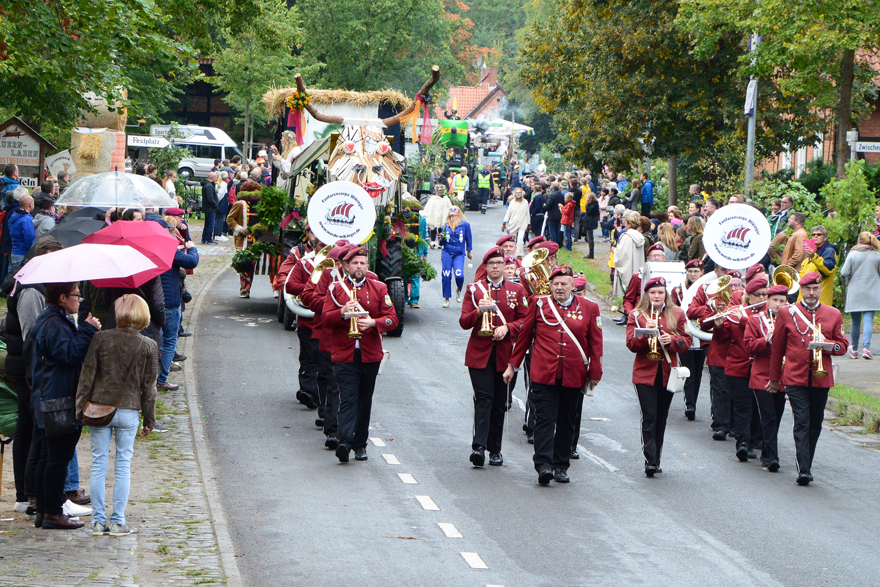 Lars Hogrefe von der Ramlinger Dorfgemeinschaft war vor dem Umzug überrascht von dem Aufmarsch der Gruppen: "Mit so vielen hatte ich dann doch nicht gerechnet", sagte er beim Aufstellen auf der Grünen Allee. Anschließend ging es, angeführt von der Erntekrone, getragen durch Dominik Schlumbohm, und den Erntemädchen, unter der Begleitung der Feuerwehrmusikzüge aus Ramlingen-Ehlershausen und Uetze sowie dem Fanfarencorps "Wikinger" Burgdorf durch den Ort.