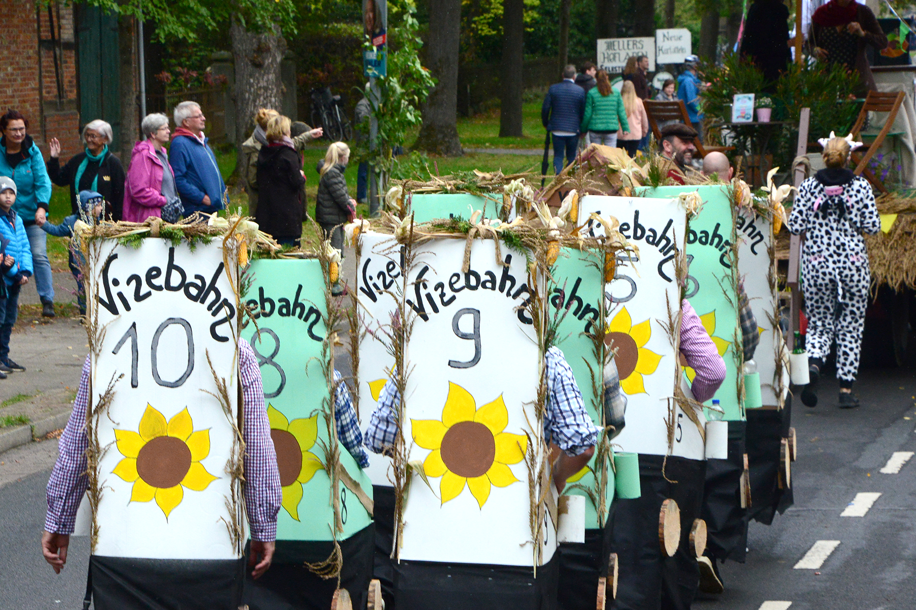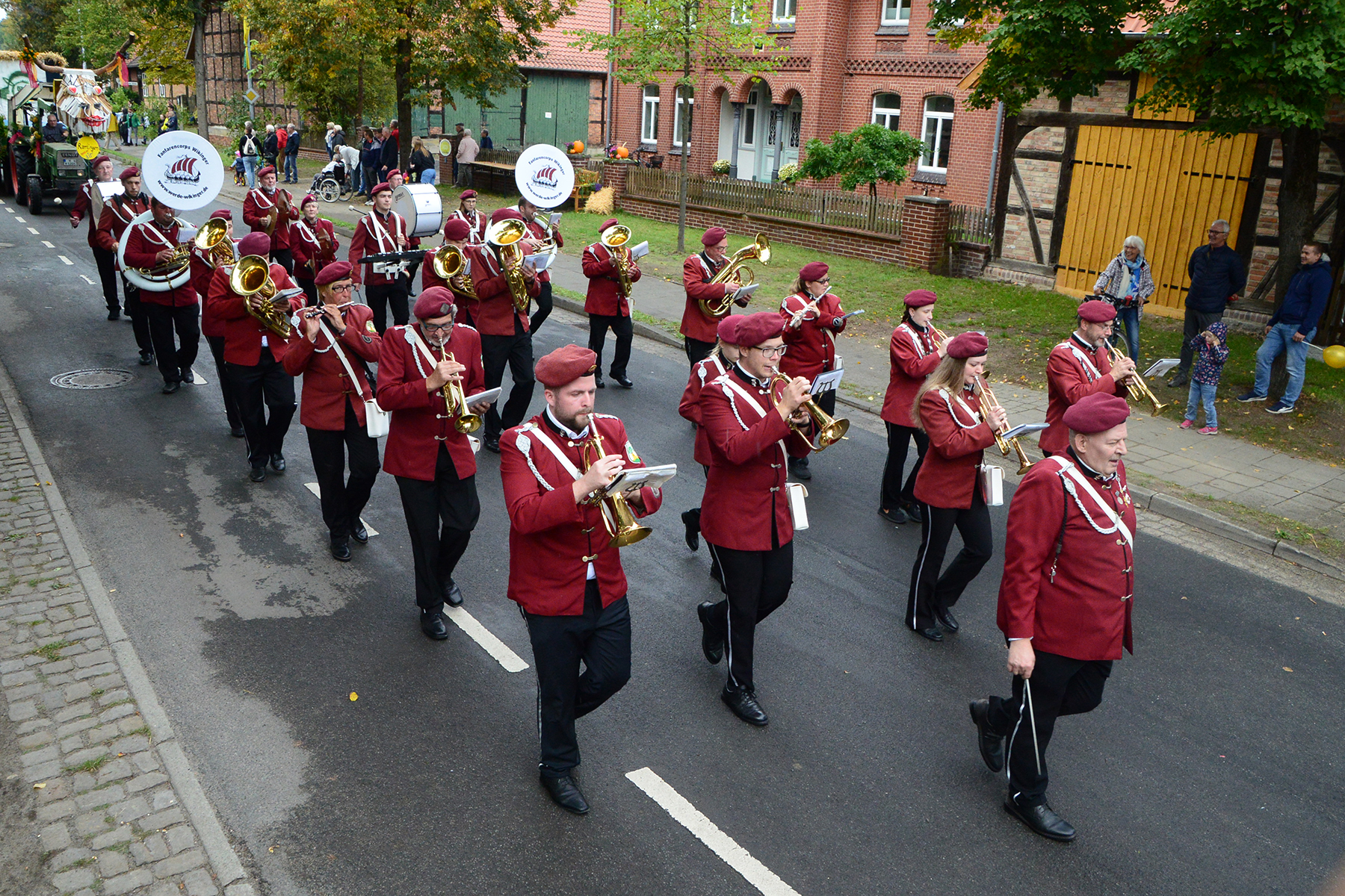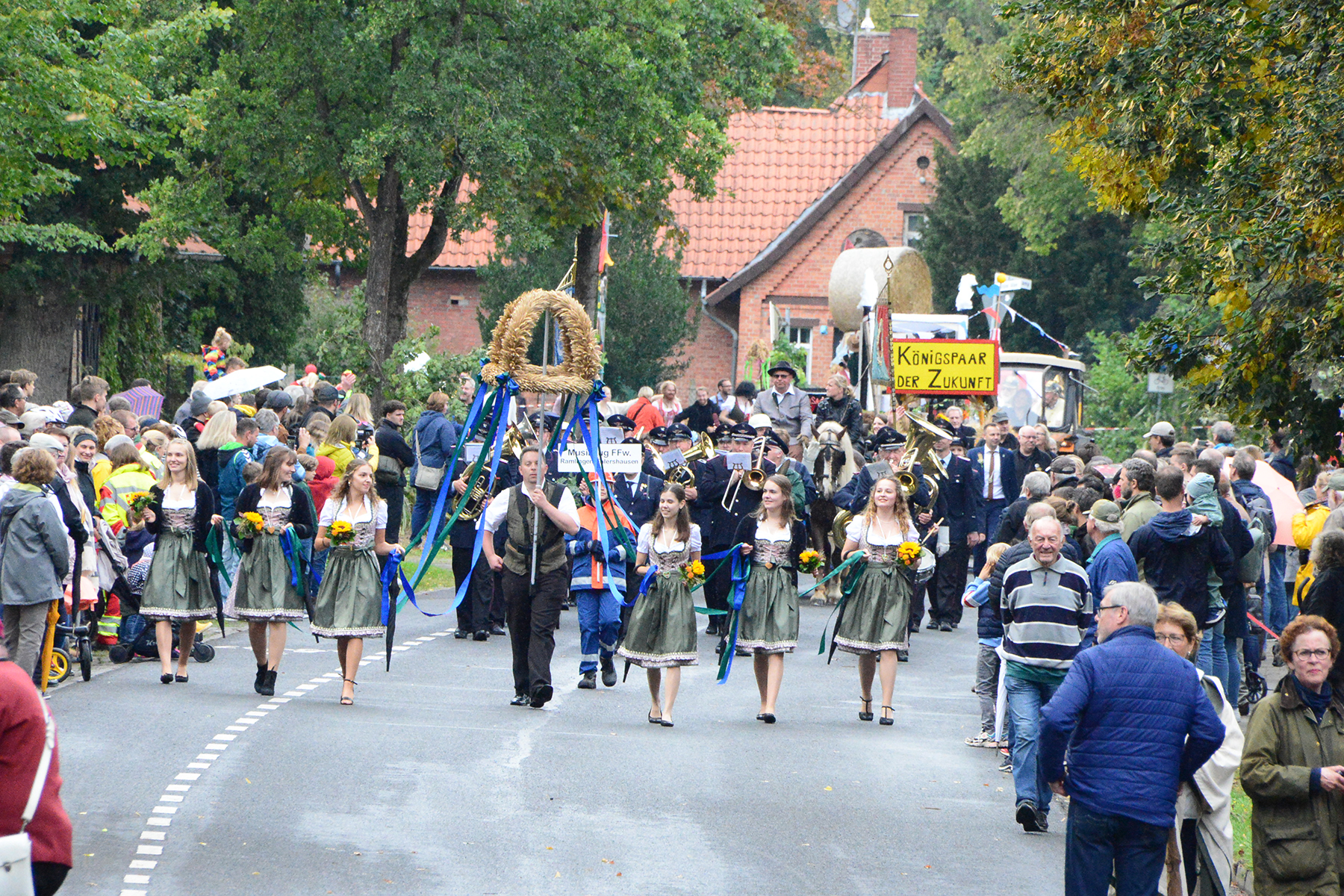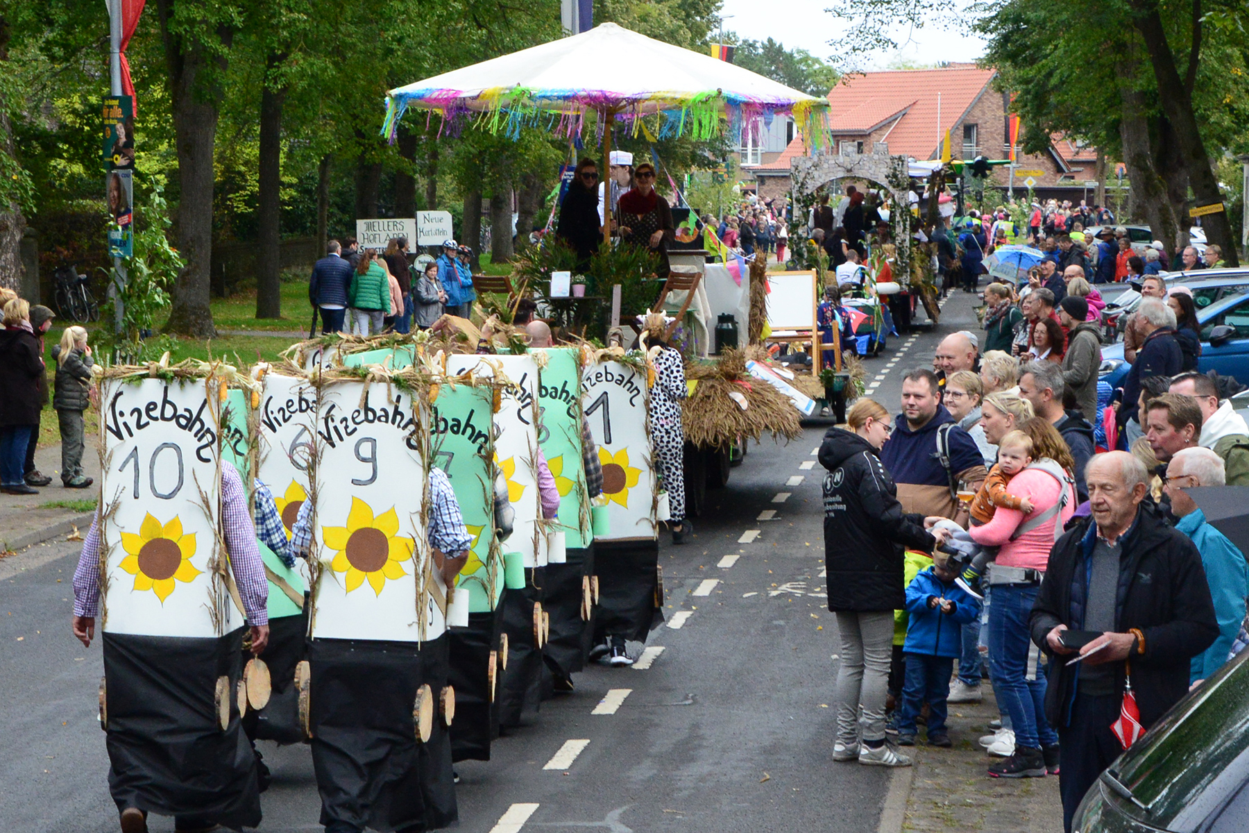 Lars Hogrefe von der Ramlinger Dorfgemeinschaft war vor dem Umzug überrascht von dem Aufmarsch der Gruppen: "Mit so vielen hatte ich dann doch nicht gerechnet", sagte er beim Aufstellen auf der Grünen Allee. Anschließend ging es, angeführt von der Erntekrone, getragen durch Dominik Schlumbohm, und den Erntemädchen, unter der Begleitung der Feuerwehrmusikzüge aus Ramlingen-Ehlershausen und Uetze sowie dem Fanfarencorps "Wikinger" Burgdorf durch den Ort.