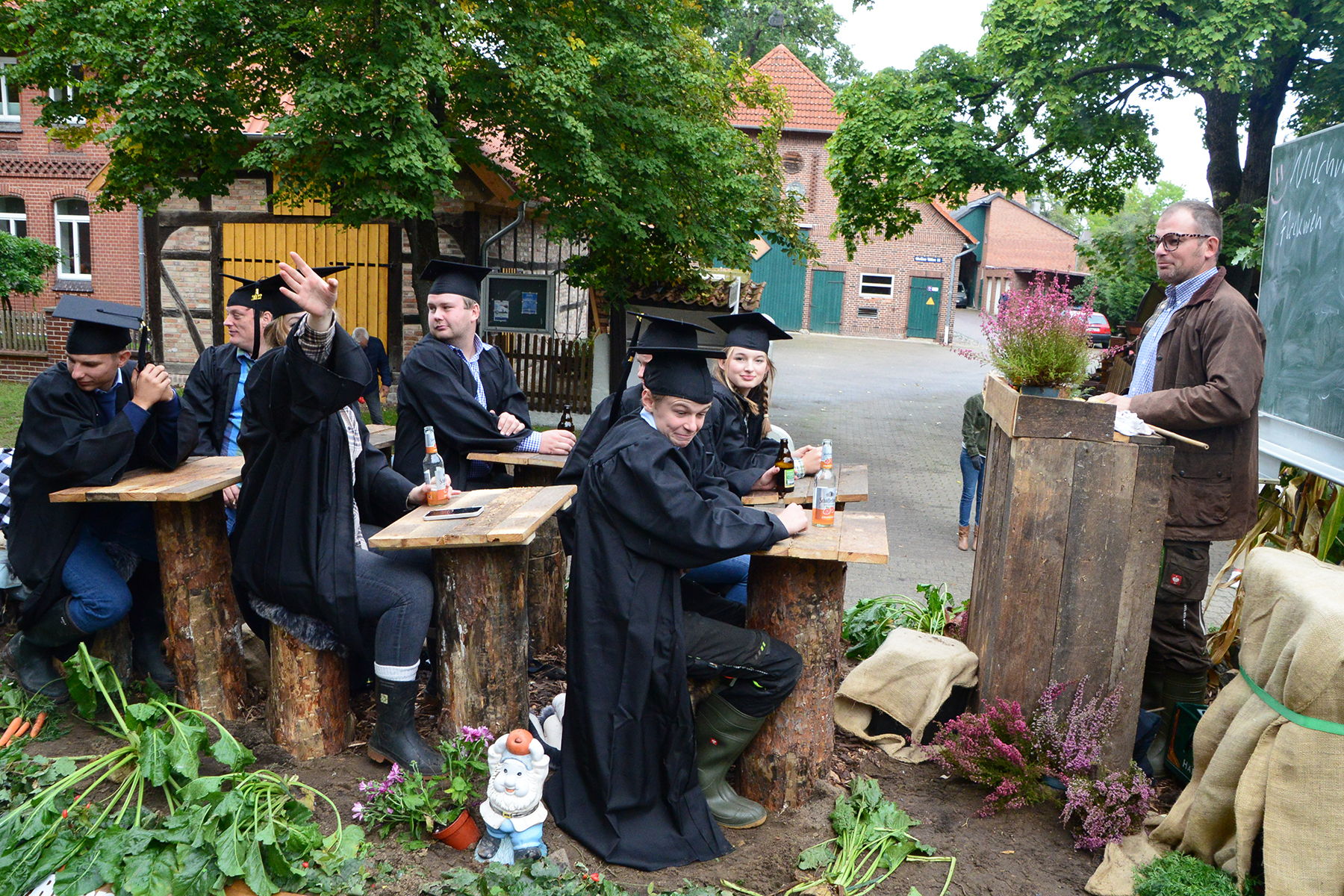 Der Umzug endete schließlich am Ehlershäuser Weg. "Ramlingen-Ost", wie Dorfgemeinschafts-Sprecher Timo Wöhler betonte. Dass der Erntekönig nicht nur aus Ramlingen kommen muss, wurde schon 2015 mit König Hartmut I. bewiesen, der aus Engensen kam. "Engensen ist Ramlingen-West", betonte Timo Wöhler mit einem Augenzwinkern.