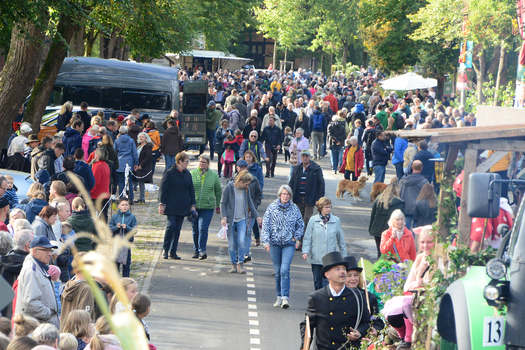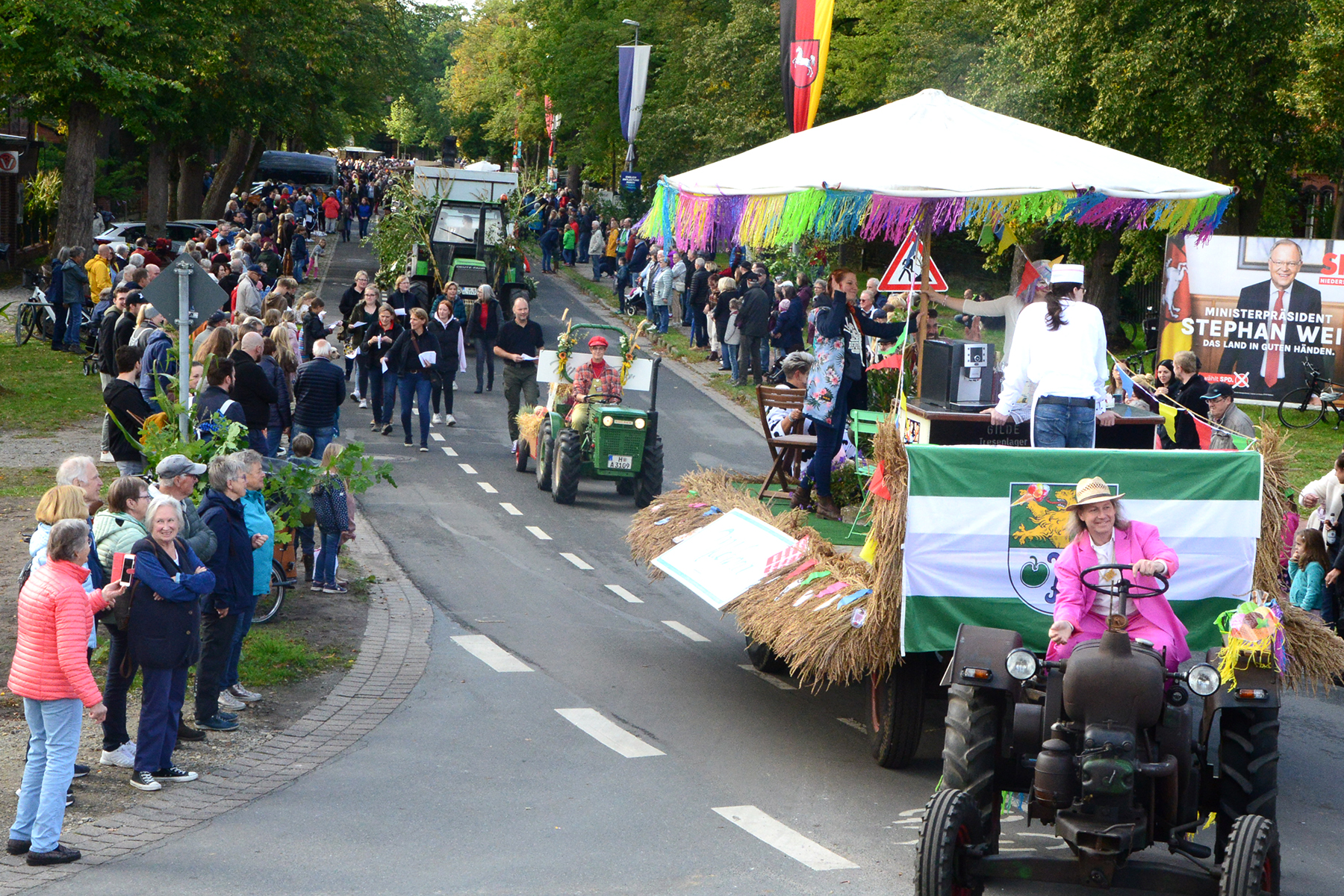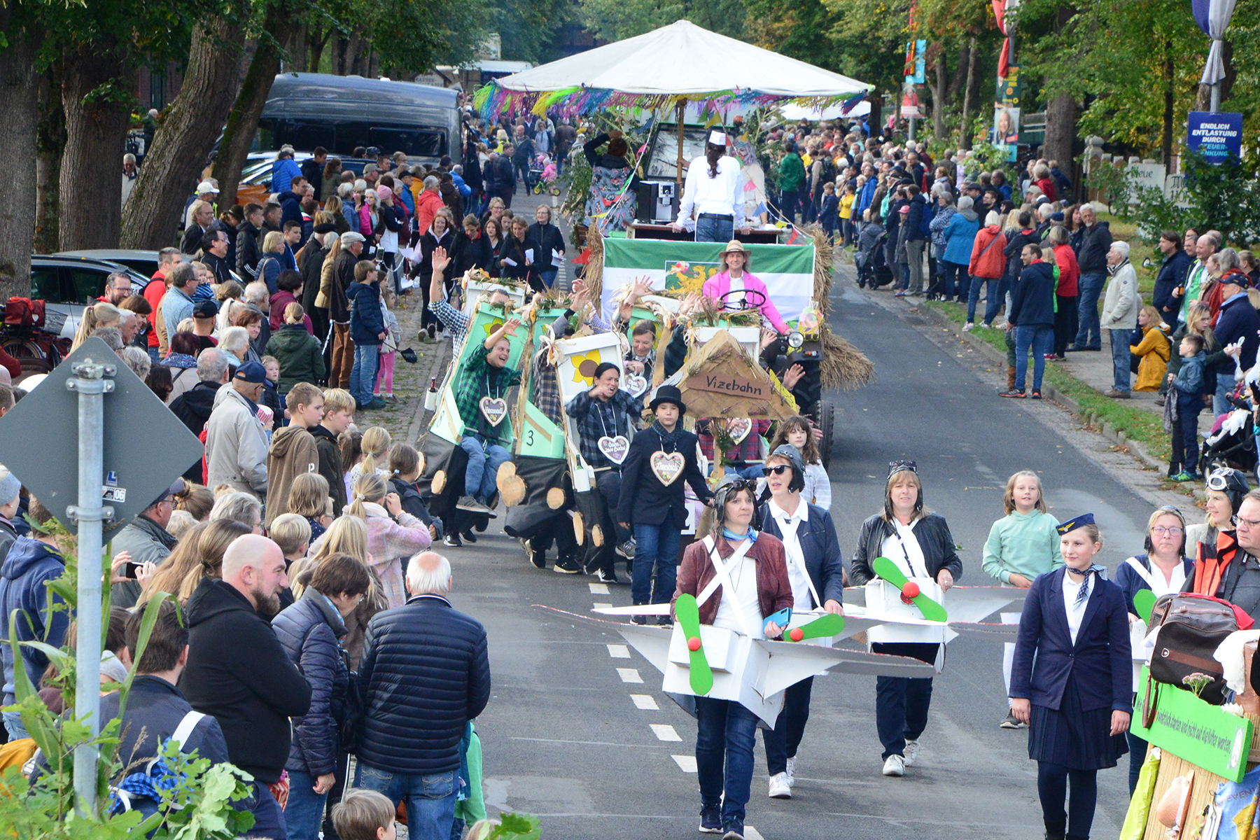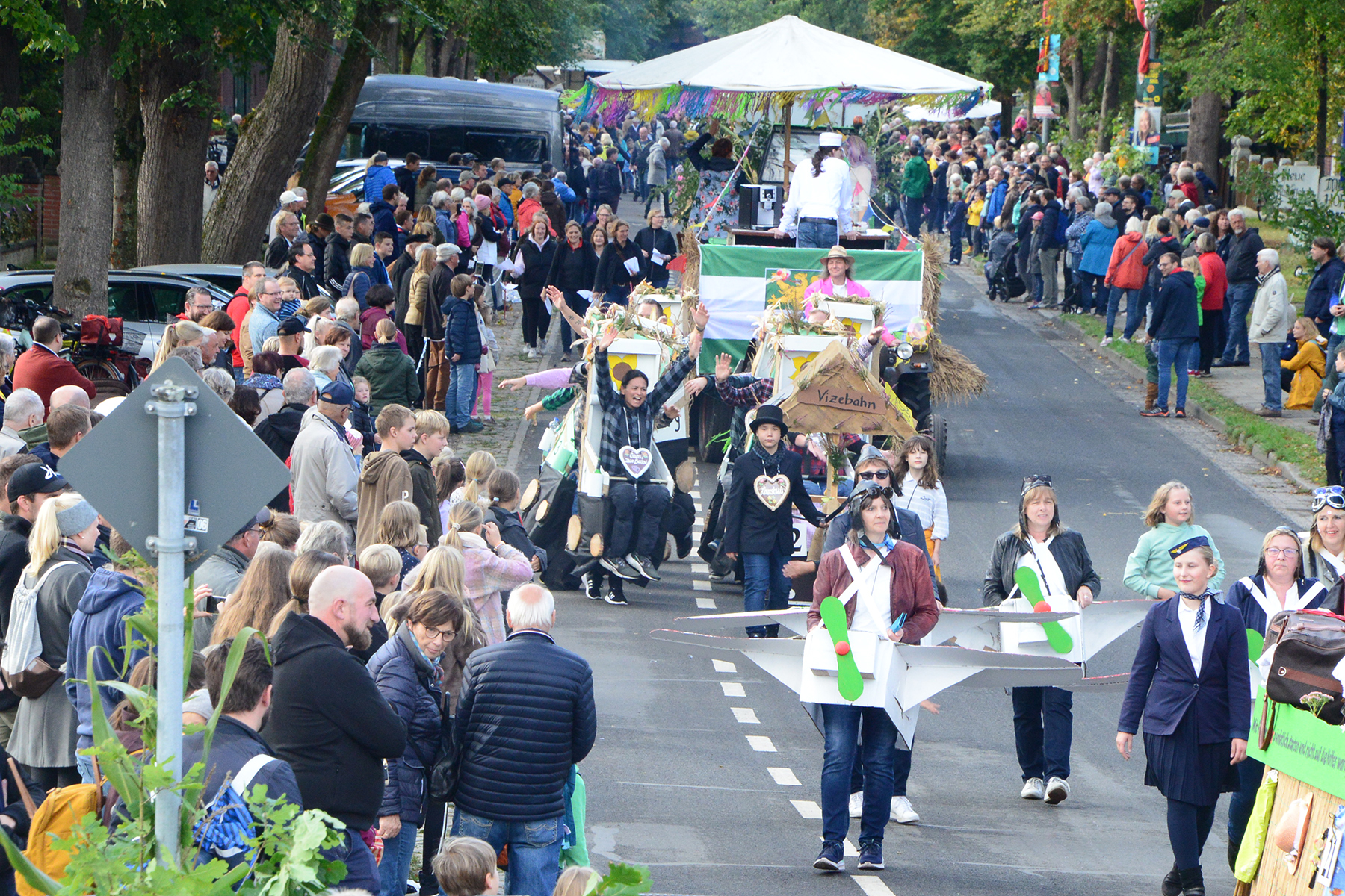 Neun Erntewagen und 17 Fußgruppen wurden von den Zuschauern bejubelt. Die Grüne Allee in Ramlingen glich einem Menschenmeer. / Foto: Bastian Kroll