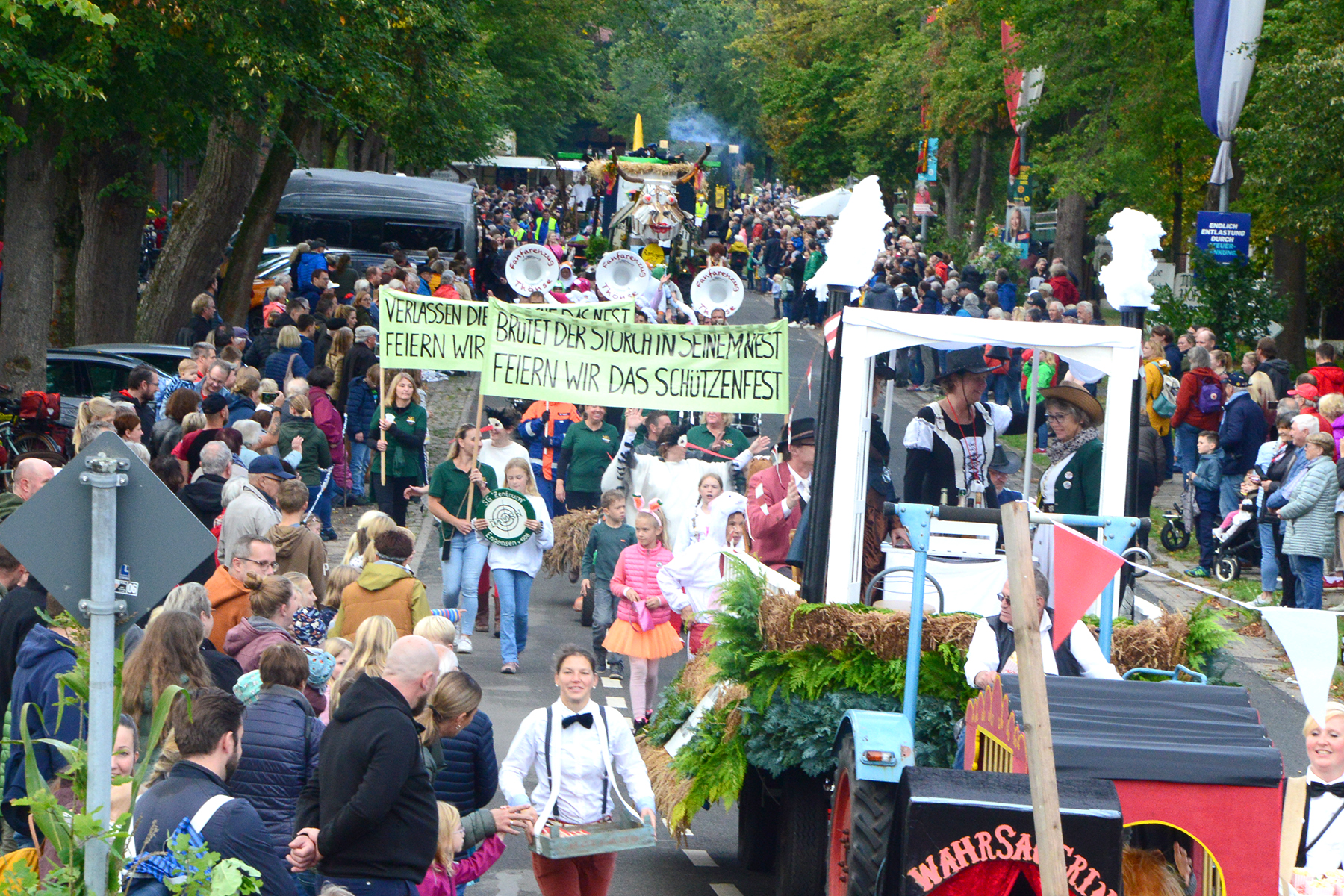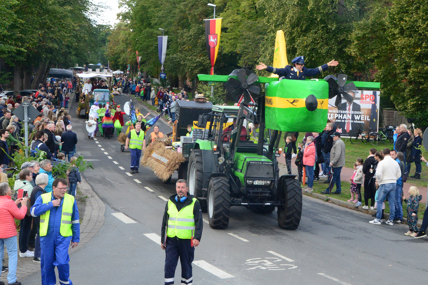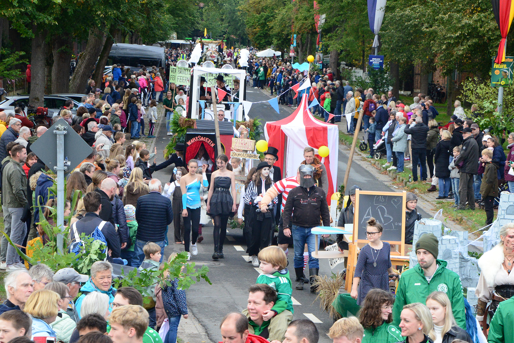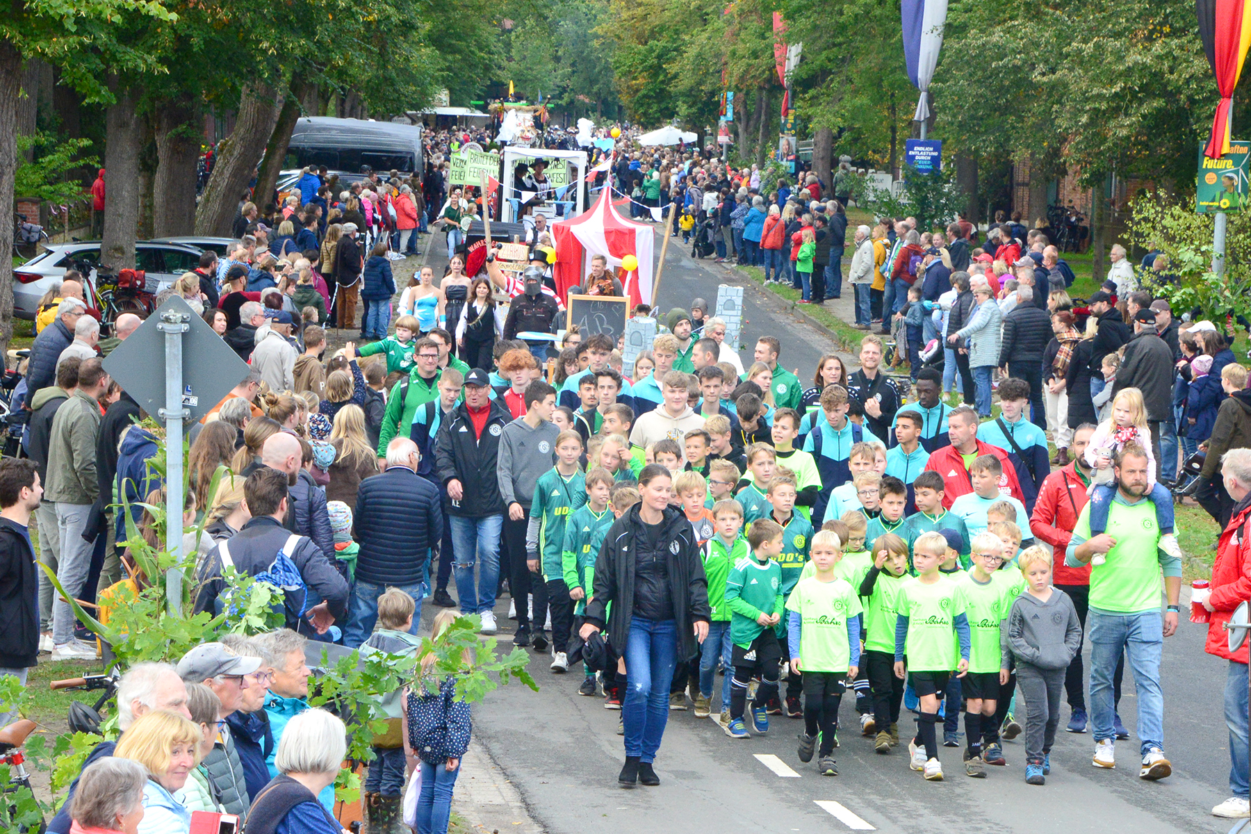 Neun Erntewagen und 17 Fußgruppen wurden von den Zuschauern bejubelt. Die Grüne Allee in Ramlingen glich einem Menschenmeer. / Foto: Bastian Kroll
