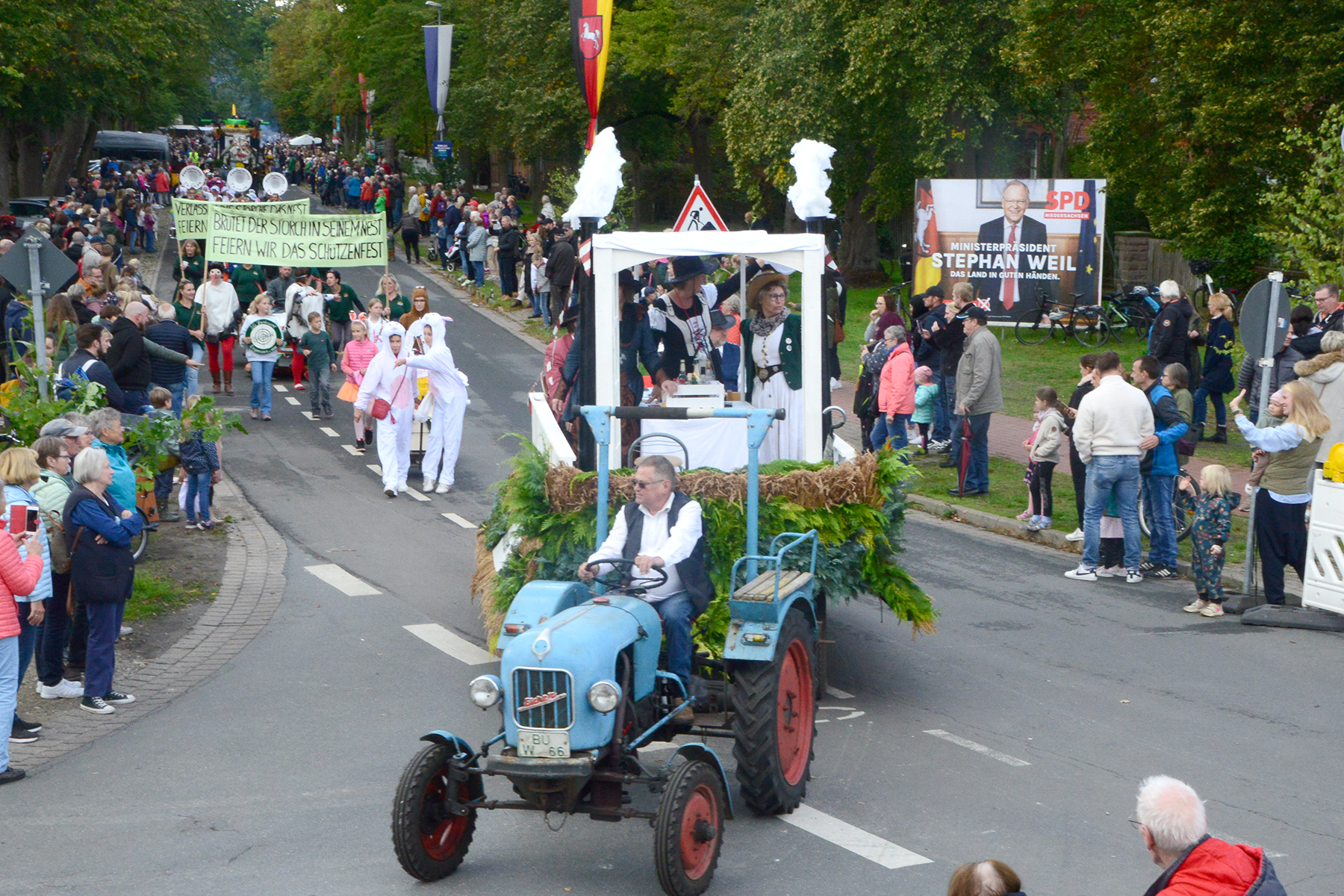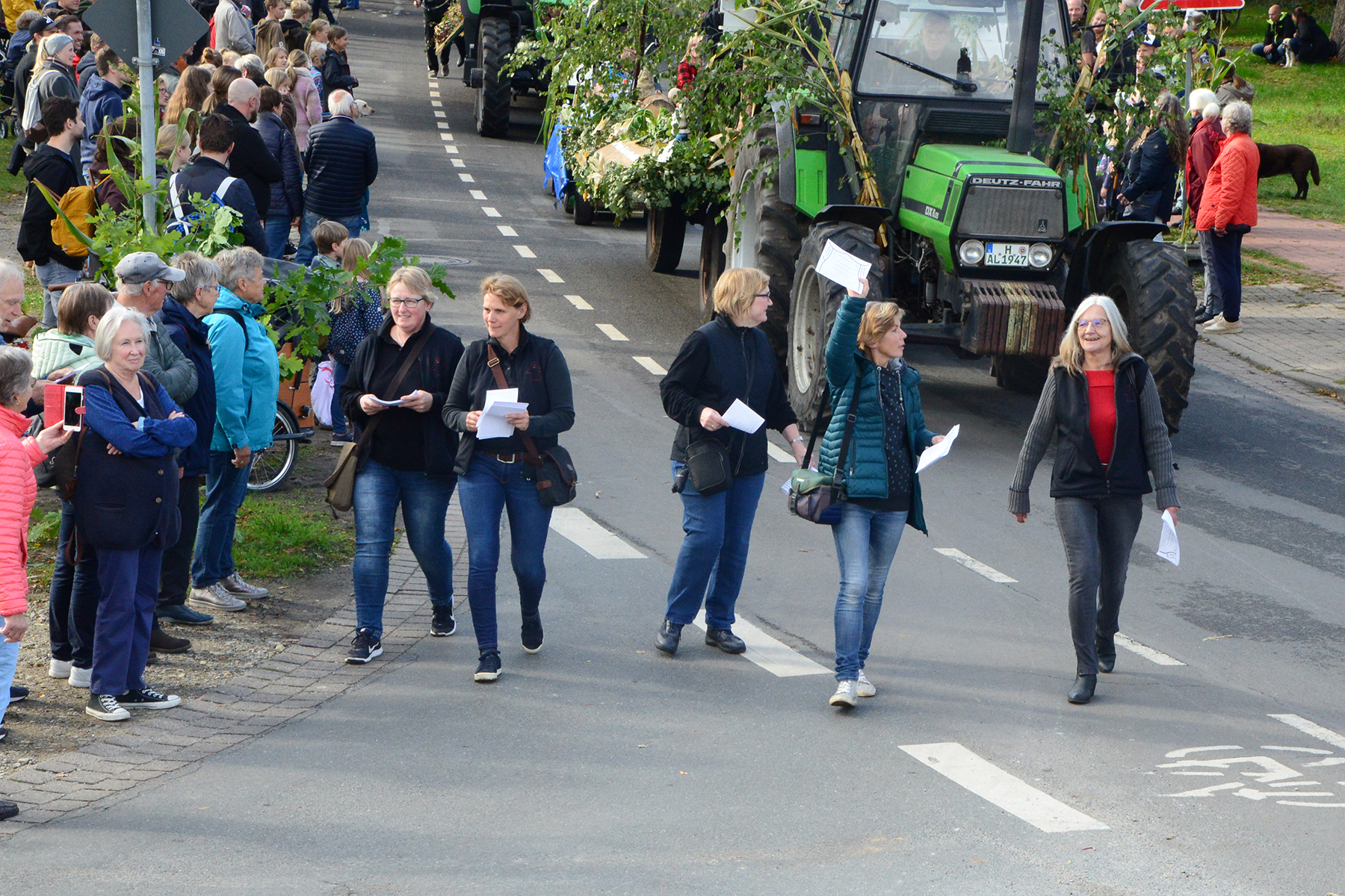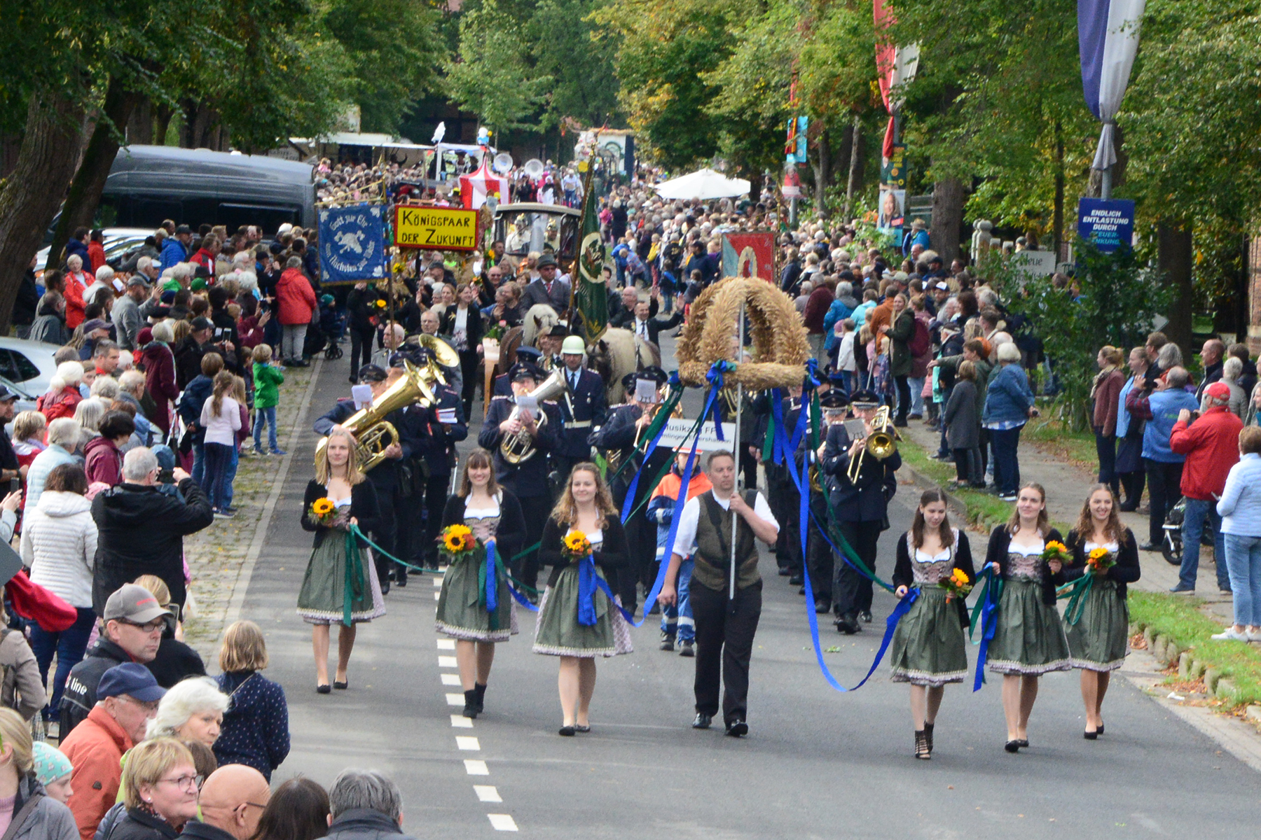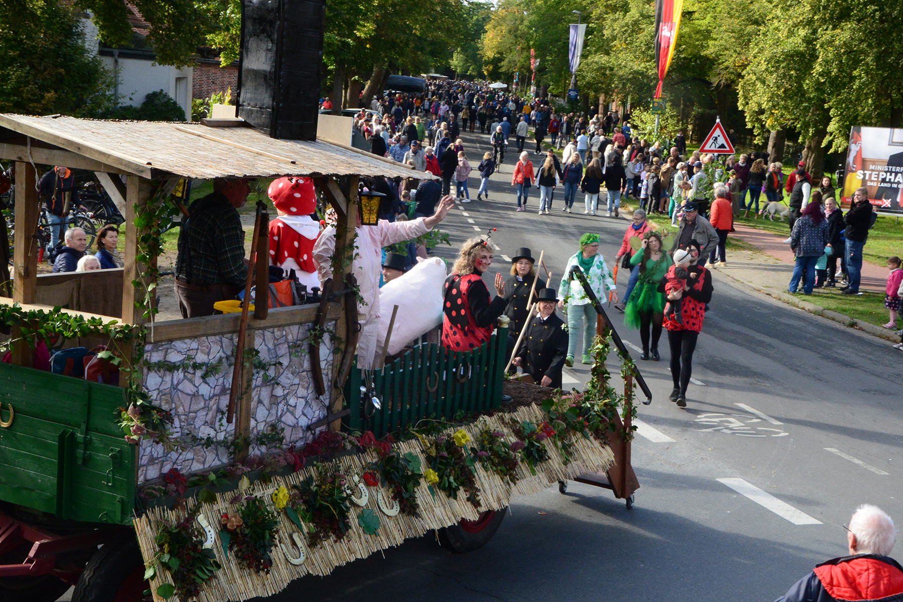 Neun Erntewagen und 17 Fußgruppen wurden von den Zuschauern bejubelt. Die Grüne Allee in Ramlingen glich einem Menschenmeer. / Foto: Bastian Kroll