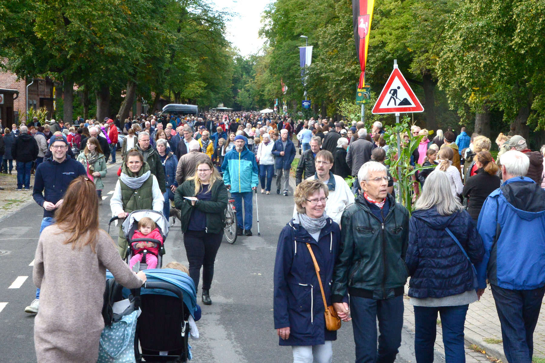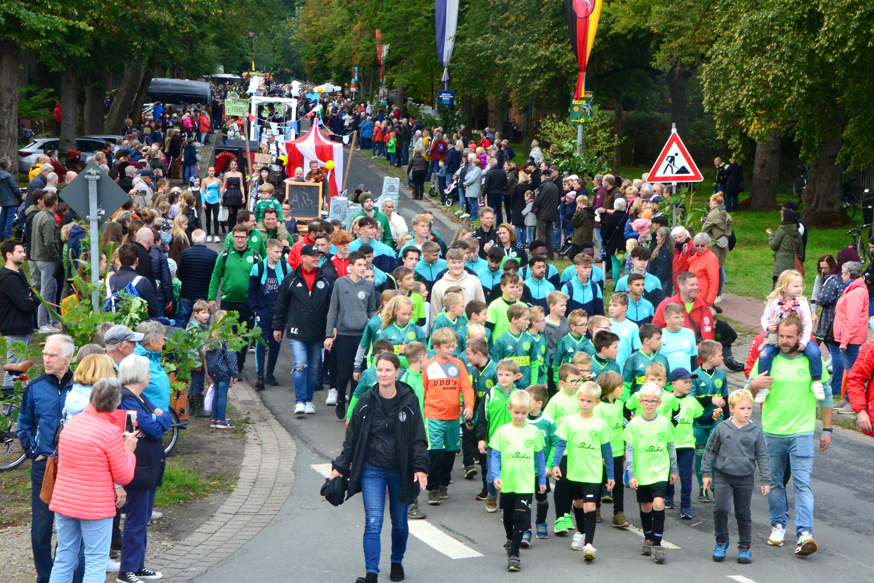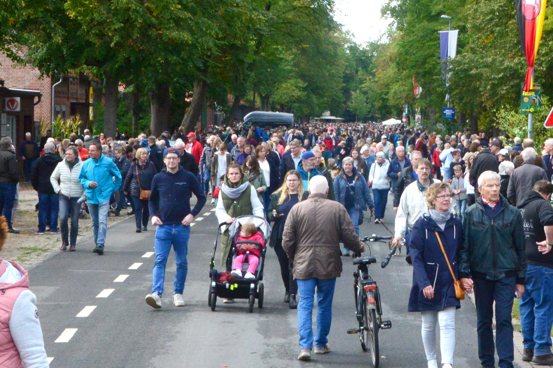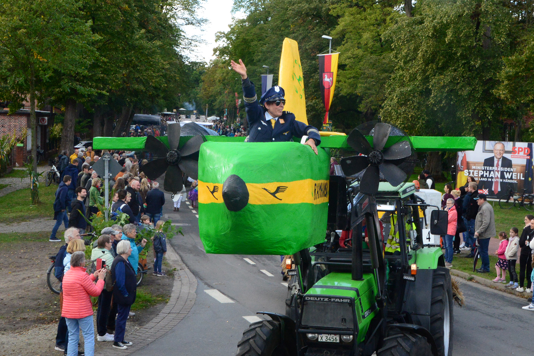 Neun Erntewagen und 17 Fußgruppen wurden von den Zuschauern bejubelt. Die Grüne Allee in Ramlingen glich einem Menschenmeer. / Foto: Bastian Kroll