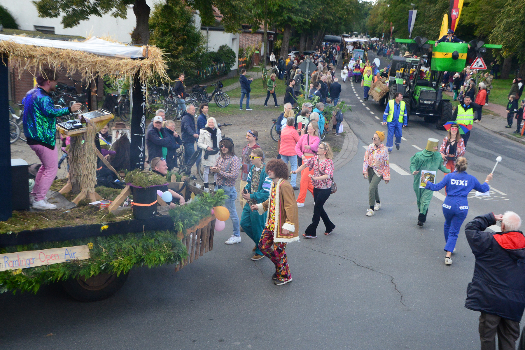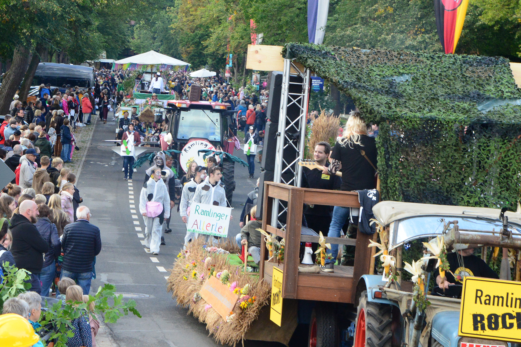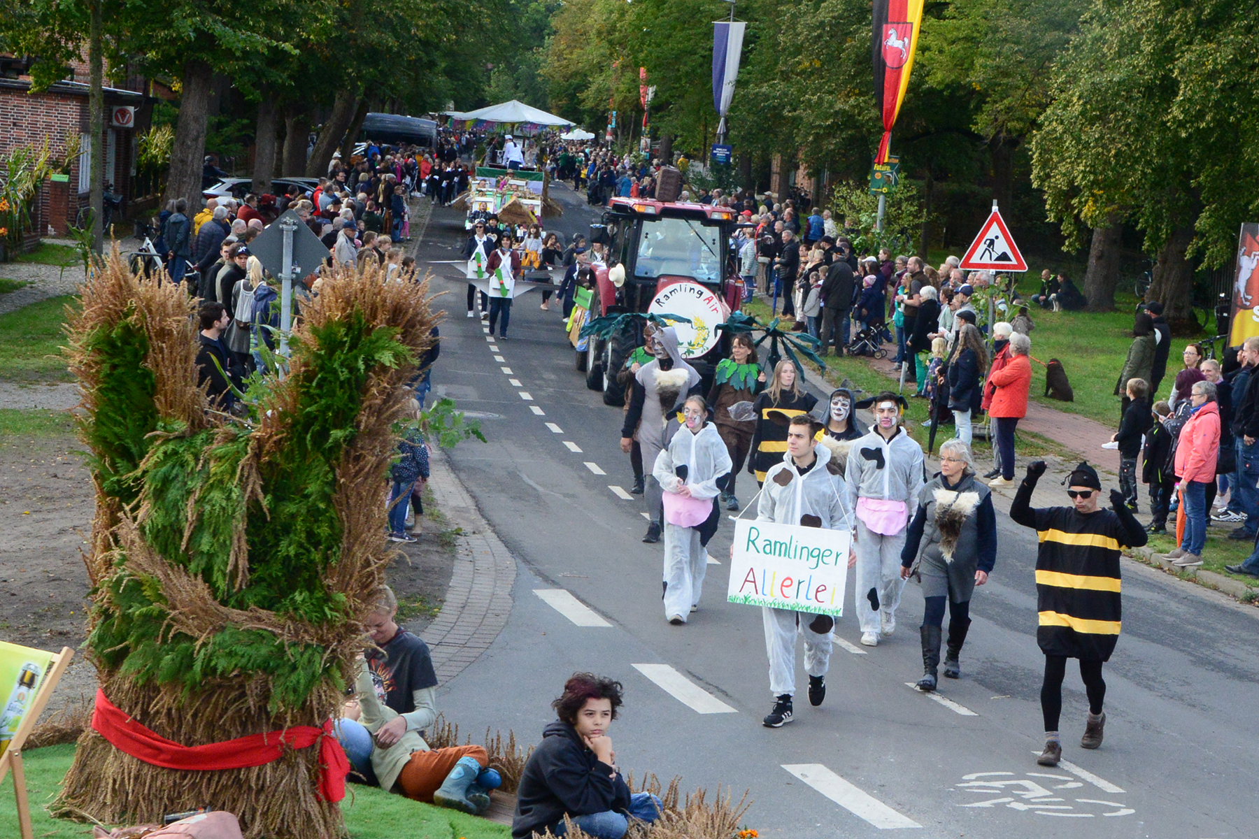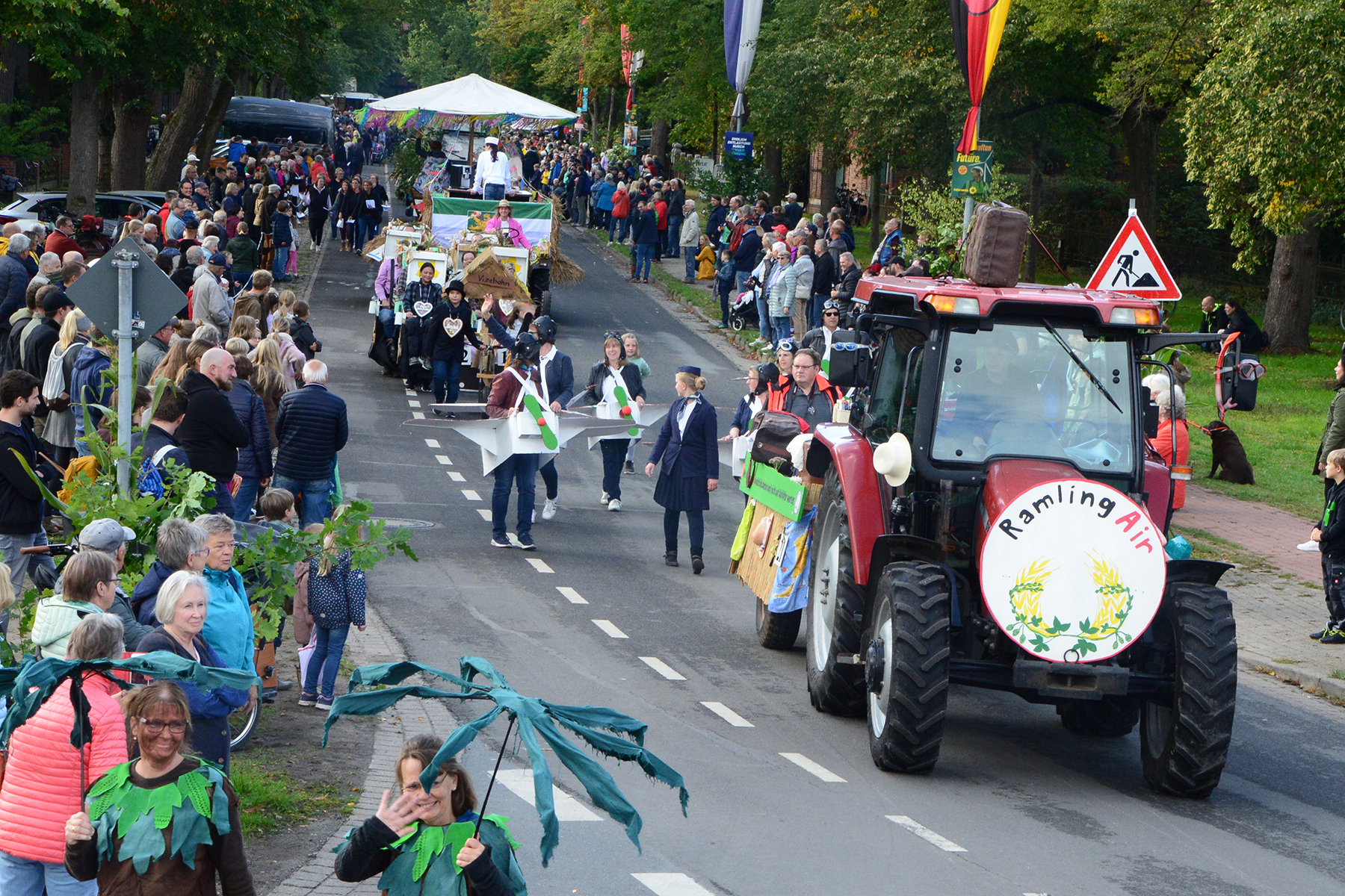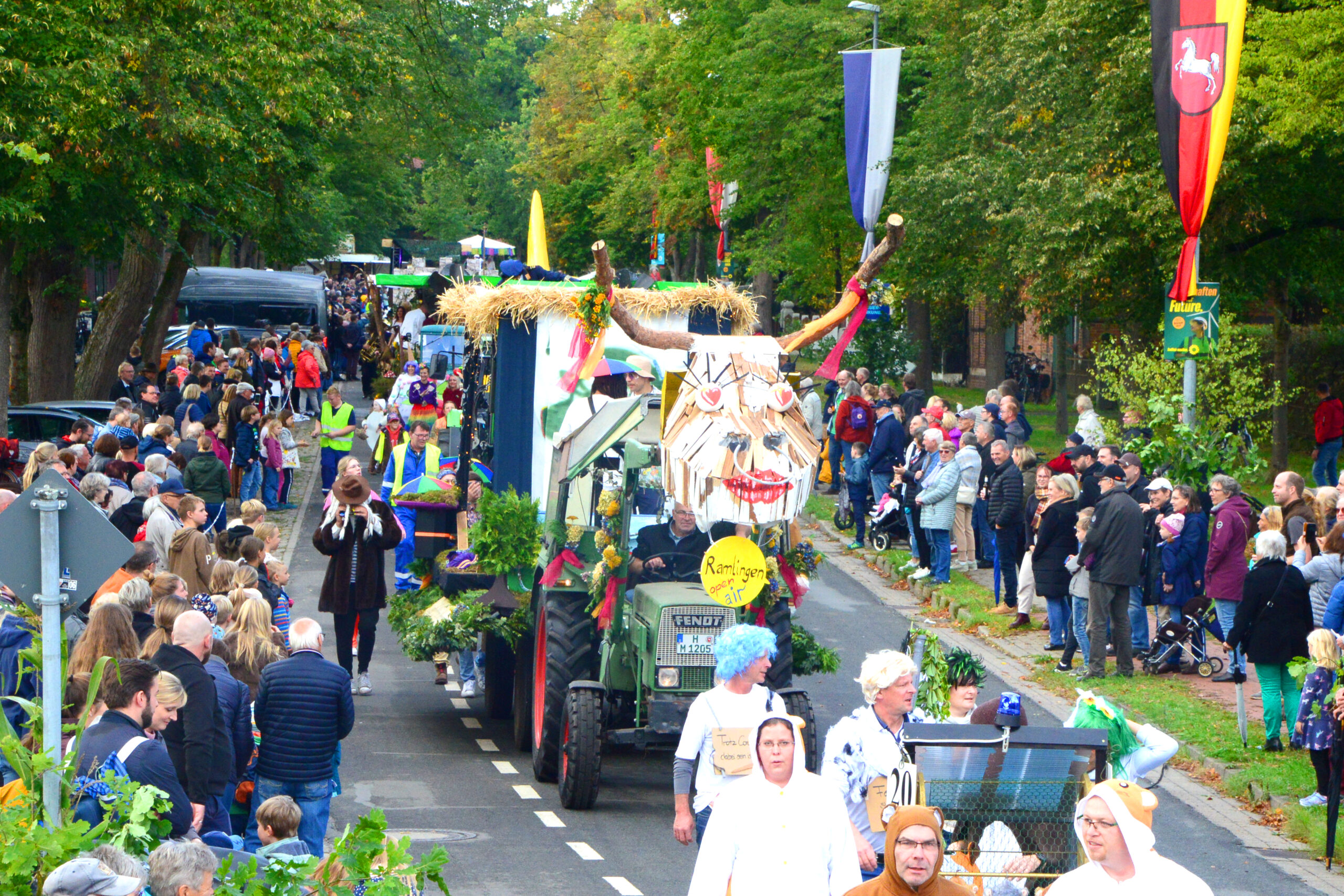 26 Gruppen nahmen im Jahr 1 nach der Corona-Pause am Umzug teil. Diese untergliederten sich in 9 große Wagen und 17 Fußgruppen. "Wir hätten niemals mit so vielen Gruppen nach der Corona-Pandemie gerechnet", so Manfred Meyer von der Ramlinger Dorfgemeinschaft. Die Dorfgemeinschaft besteht aus acht Mitgliedern, die sich für die Ausrichtung des Erntefestes verantwortlich zeigt. Doch sie müssen nicht alles allein organisieren: Durch die Mitbewohner des Ortes erfahren sie eine große Unterstützung. Sei es beim Aufbauen der Erntepuppen und dem Erstellen der Erntekronen zwei Wochen vor dem Fest, beim Schmücken des Festzeltes oder aber dem Kuchenverkauf im Festzelt nach dem Festumzug am Sonntag: Unzählige Ehrenamtliche sind ein Garant für beste Rahmenbedingungen.