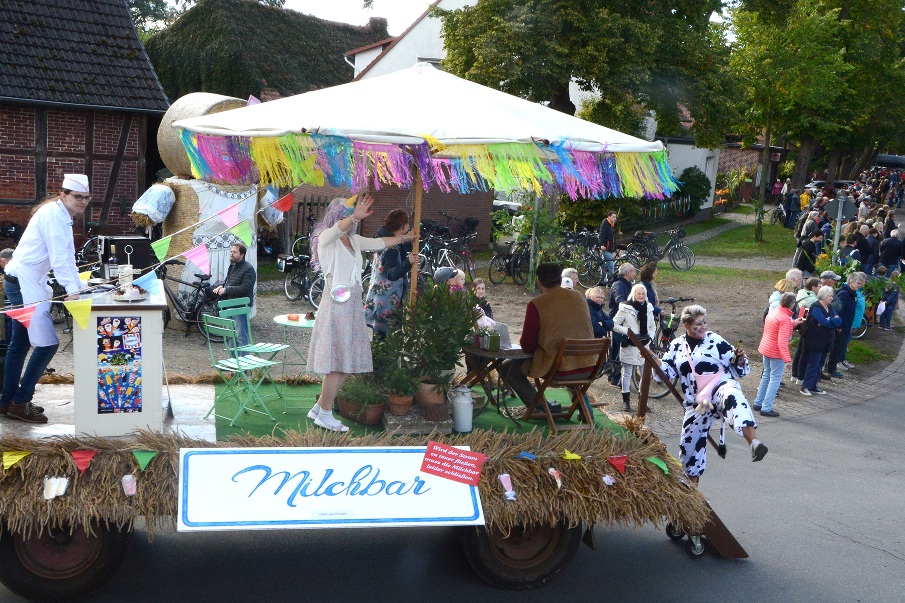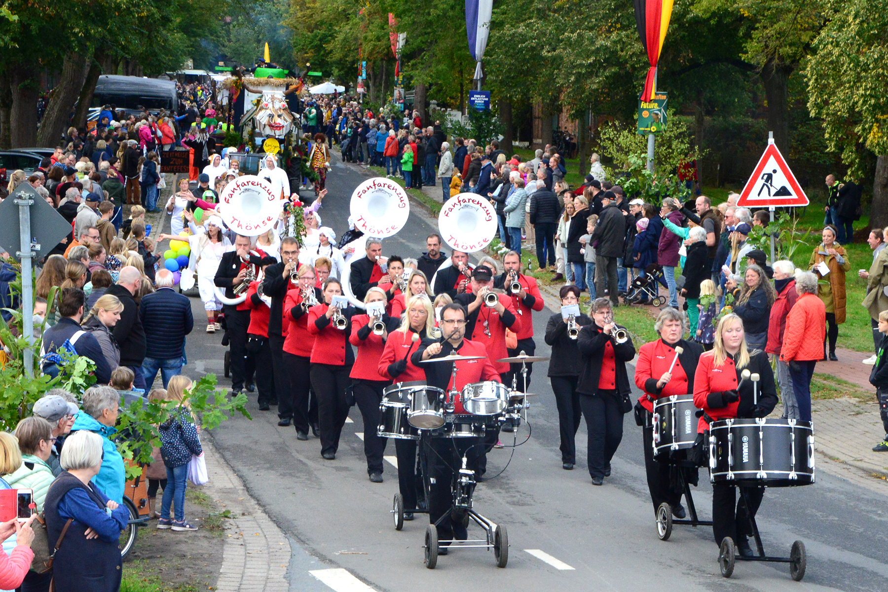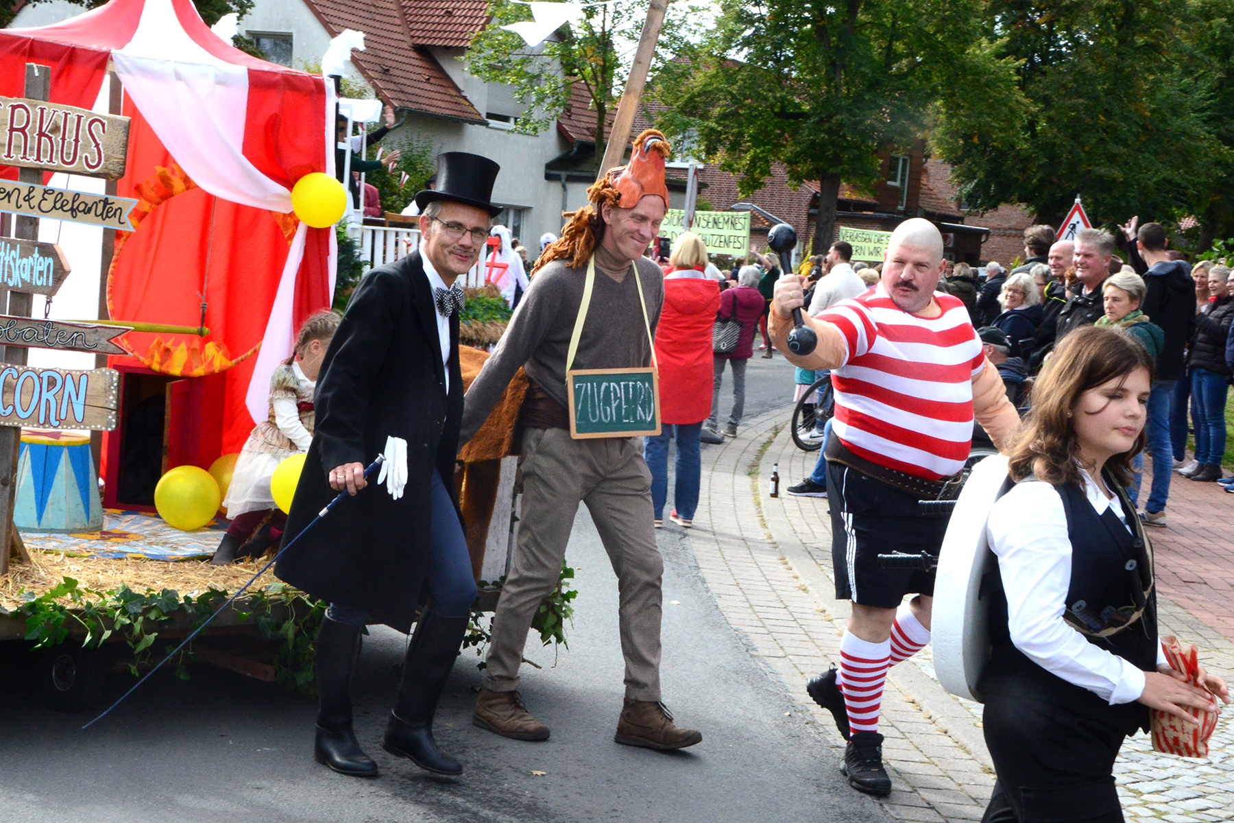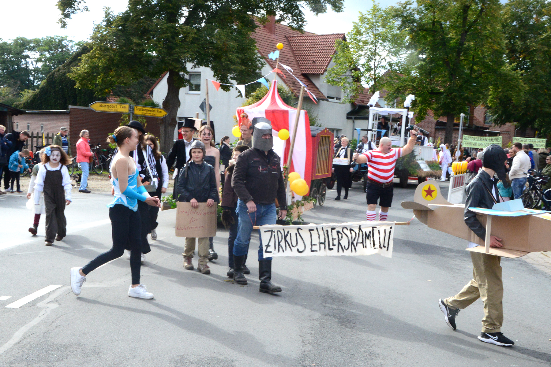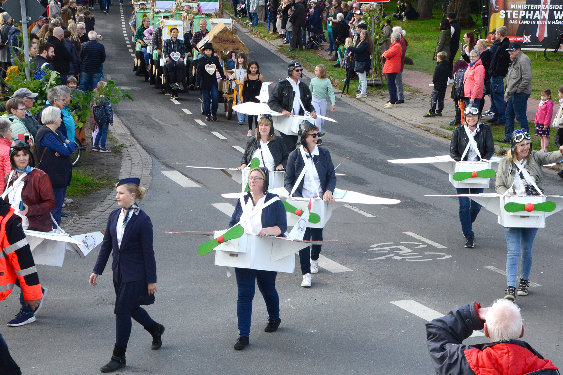 26 Gruppen nahmen im Jahr 1 nach der Corona-Pause am Umzug teil. Diese untergliederten sich in 9 große Wagen und 17 Fußgruppen. "Wir hätten niemals mit so vielen Gruppen nach der Corona-Pandemie gerechnet", so Manfred Meyer von der Ramlinger Dorfgemeinschaft. Die Dorfgemeinschaft besteht aus acht Mitgliedern, die sich für die Ausrichtung des Erntefestes verantwortlich zeigt. Doch sie müssen nicht alles allein organisieren: Durch die Mitbewohner des Ortes erfahren sie eine große Unterstützung. Sei es beim Aufbauen der Erntepuppen und dem Erstellen der Erntekronen zwei Wochen vor dem Fest, beim Schmücken des Festzeltes oder aber dem Kuchenverkauf im Festzelt nach dem Festumzug am Sonntag: Unzählige Ehrenamtliche sind ein Garant für beste Rahmenbedingungen.