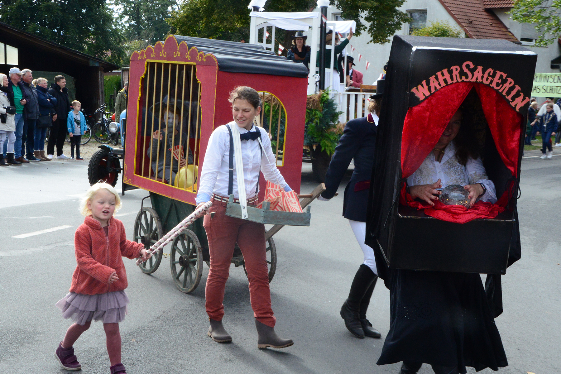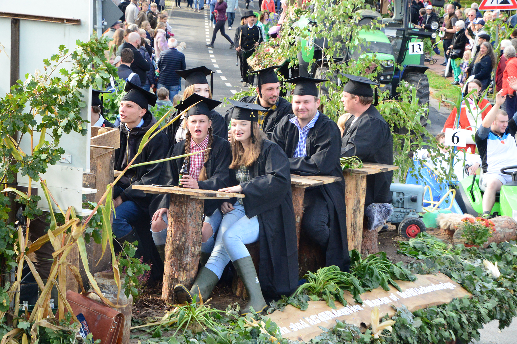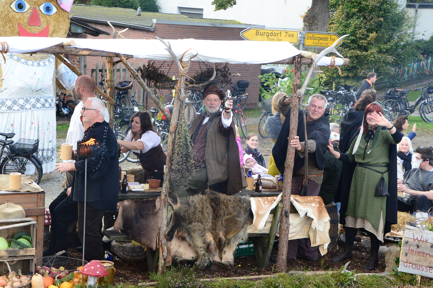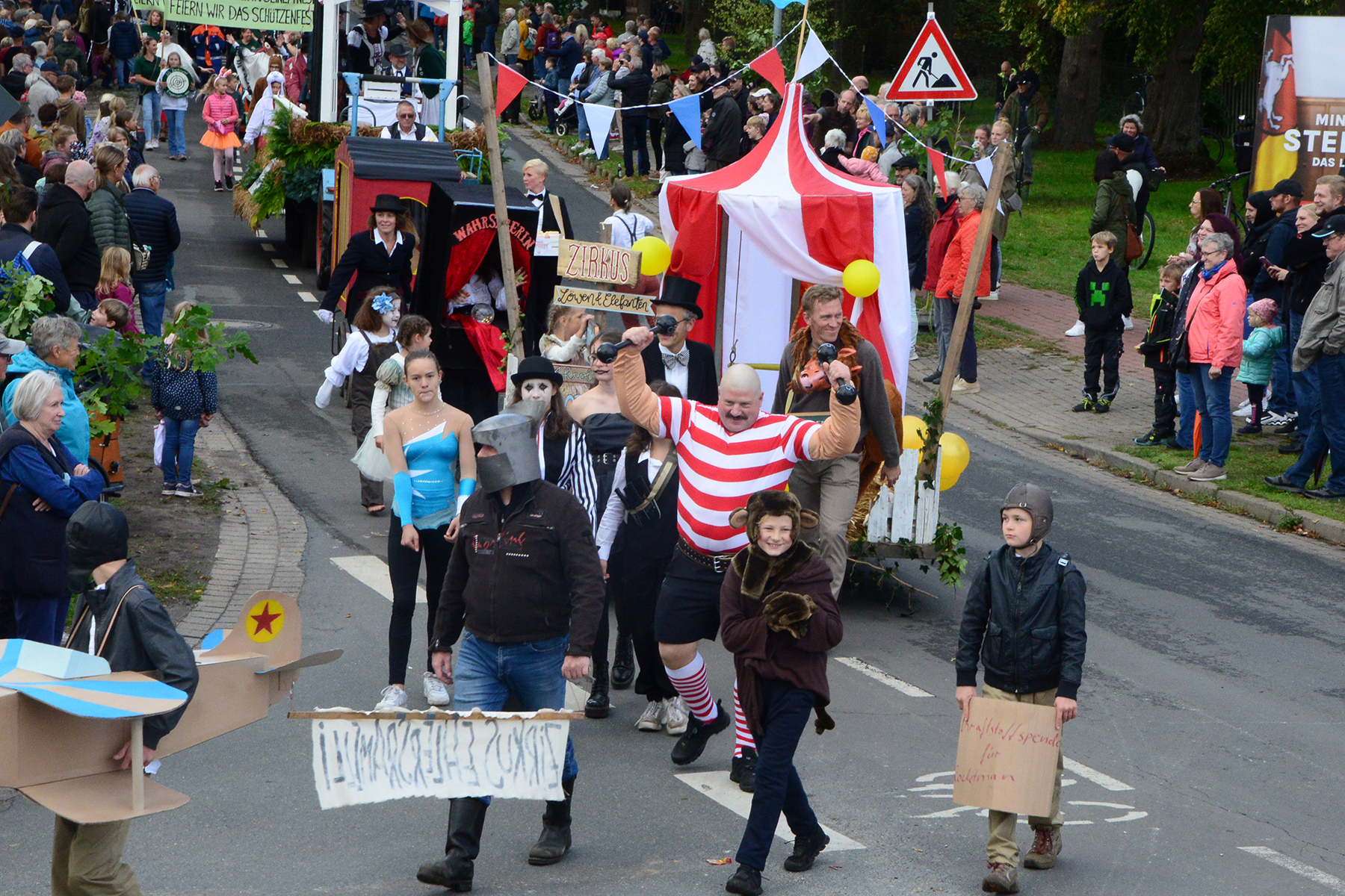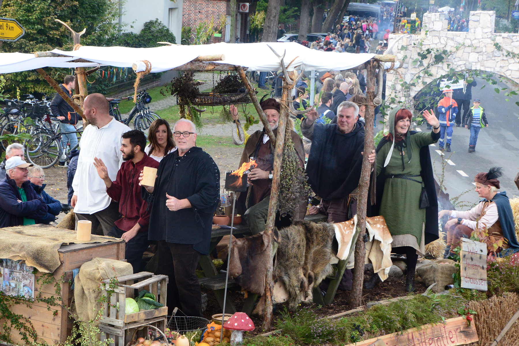26 Gruppen nahmen im Jahr 1 nach der Corona-Pause am Umzug teil. Diese untergliederten sich in 9 große Wagen und 17 Fußgruppen. "Wir hätten niemals mit so vielen Gruppen nach der Corona-Pandemie gerechnet", so Manfred Meyer von der Ramlinger Dorfgemeinschaft. Die Dorfgemeinschaft besteht aus acht Mitgliedern, die sich für die Ausrichtung des Erntefestes verantwortlich zeigt. Doch sie müssen nicht alles allein organisieren: Durch die Mitbewohner des Ortes erfahren sie eine große Unterstützung. Sei es beim Aufbauen der Erntepuppen und dem Erstellen der Erntekronen zwei Wochen vor dem Fest, beim Schmücken des Festzeltes oder aber dem Kuchenverkauf im Festzelt nach dem Festumzug am Sonntag: Unzählige Ehrenamtliche sind ein Garant für beste Rahmenbedingungen.
