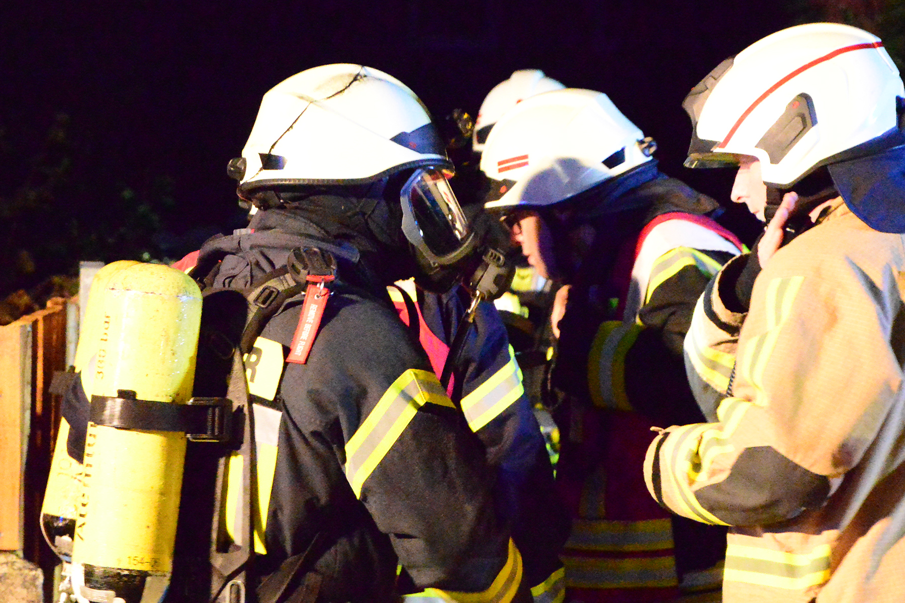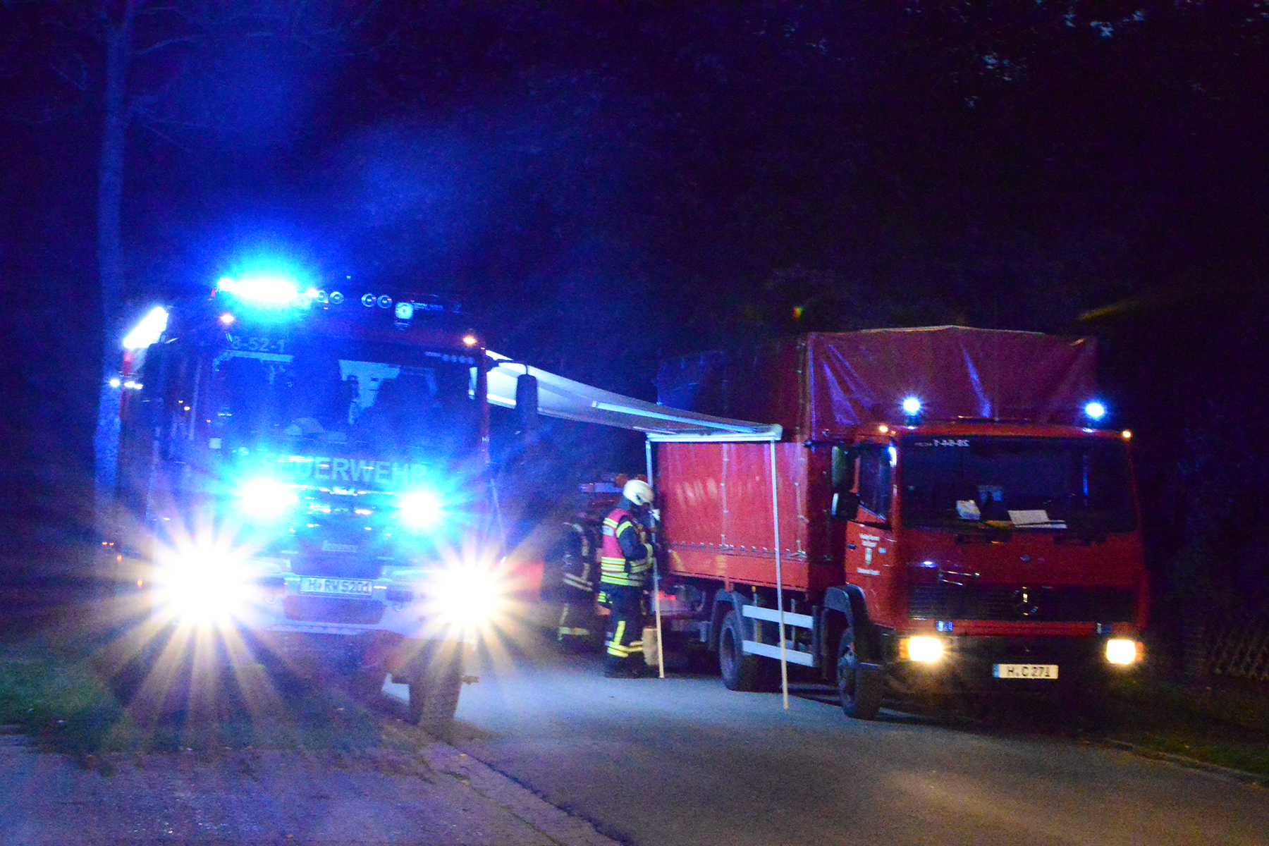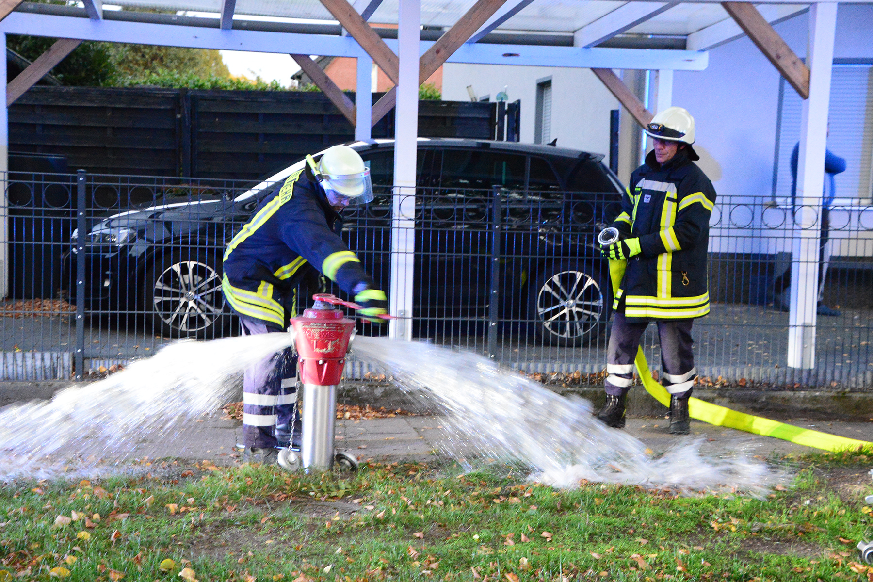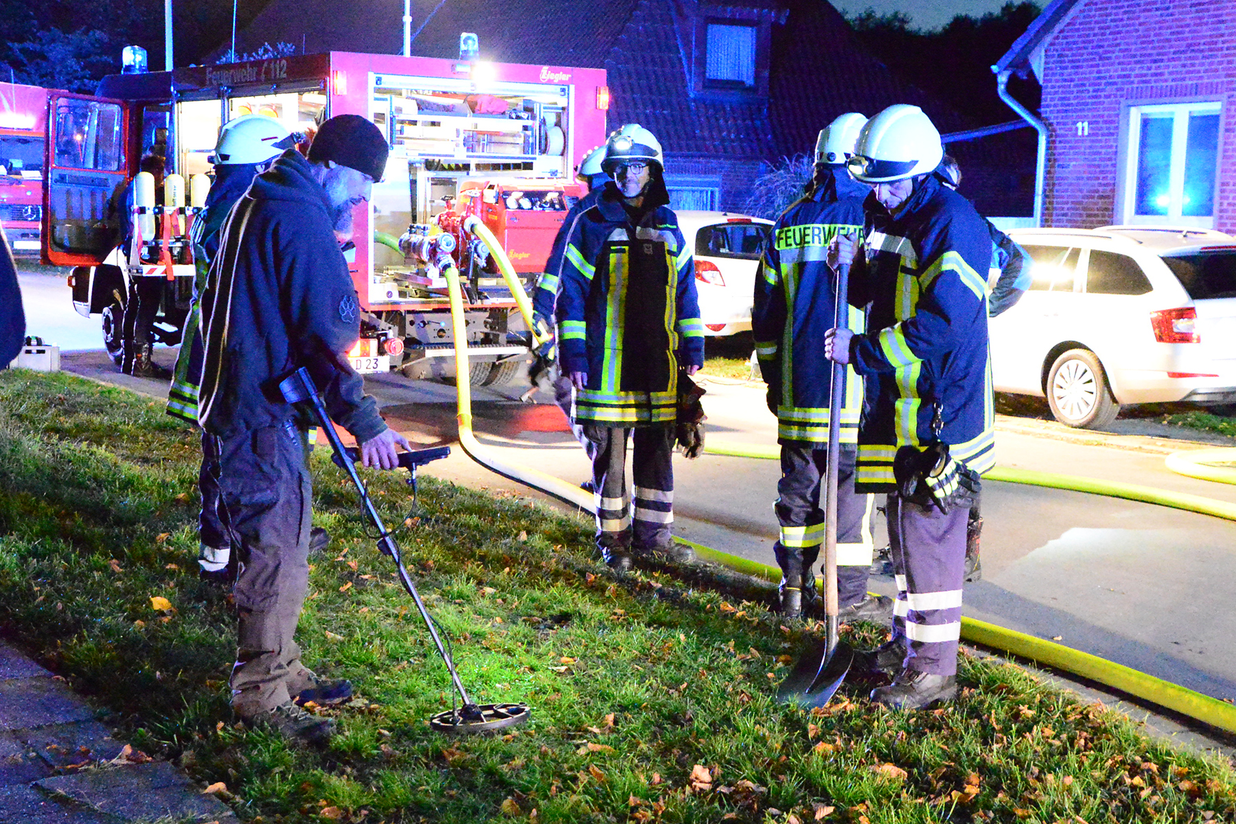 Nach den Löscharbeiten wurden Strom und Wasser zu dem Gebäude abgestellt. Da in dem Gebäude aus einer Leitung Wasser austrat, musste der Wasseranschluss abgeschiebert werden. Den Schieber allerdings trotz Schild zu finden, stellte sich als Herausforderung dar, da sich dieser unter einer Grasfläche befand. Ein Anwohner half den Feuerwehrkräften mit einem Metalldetektor bei der Suche, so dass auch der Wasseranschluss abgedreht werden konnte.