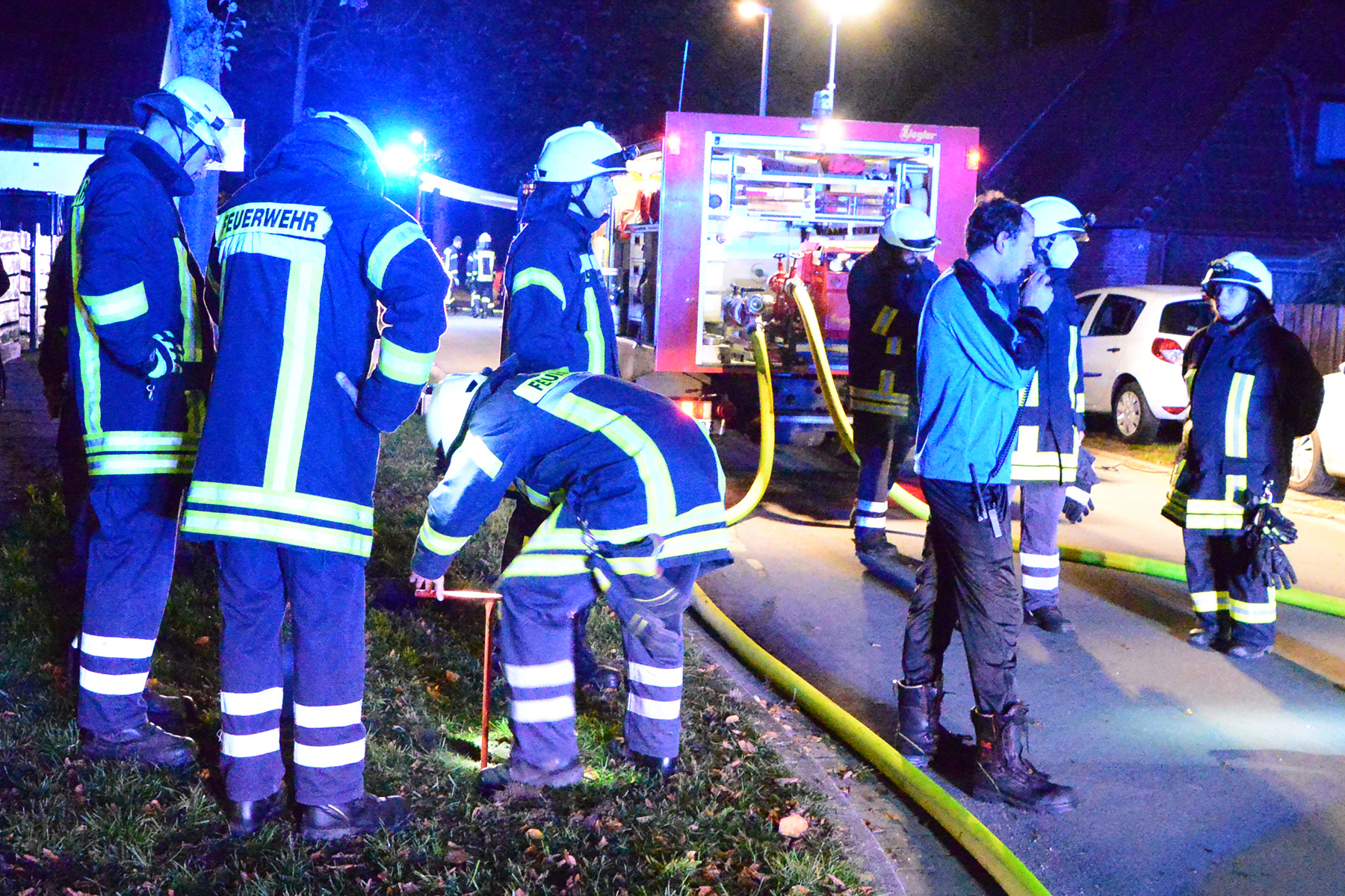 Nach einer Lageerkundung bestätigte sich das Feuer im Kellergeschoss. Personen befanden sich nicht mehr im Gebäude. Einsatzleiter Jörg Neitzel, der auch Ortsbrandmeister in Dachtmissen ist, ließ zwei Trupps unter Atemschutz mit je einem C-Rohr vorgehen. Ein Trupp wurde für die Brandbekämpfung eingesetzt, der zweite war zur Sicherung mit einem weiteren C-Rohr vorgegangen. Im Keller fanden die Brandbekämpfer ein Feuer im Bereich einer Waschmaschine vor. Das Feuer konnte zwar schnell gelöscht werden, doch die Rauchgasniederschläge haben sich auf den gesamte Kellerbereich ausgebreitet. Nach Angaben von Stadtfeuerwehr-Pressesprecherin Sandra Jost hatte sich das Feuer bereits iM Keller ausgebreitet. Durch das schnelle Eingreifen der Feuerwehrkräfte konnte ein weiteres Ausbreiten und Übergreifen auf weitere Gebäudeteile verhindert werden.
