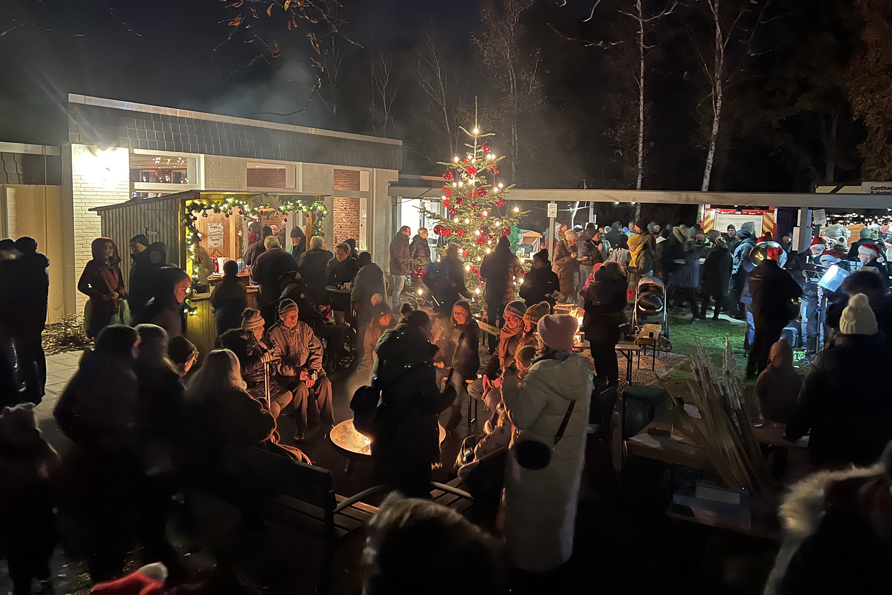 Der Nikolaus überraschte die Kinder. Kinderchor, Posaunenchor und Musikzug der Freiwilligen Feuerwehr trugen mit ihren Auftritten zur Weihnachts-Vorfreude bei. Katrin Thies (frühere Organisatorin): "Der Feuerwehrmusikzug ist von Anfang an dabei und die anderen Musiker versuchen auch immer die Möglichkeit zu finden."