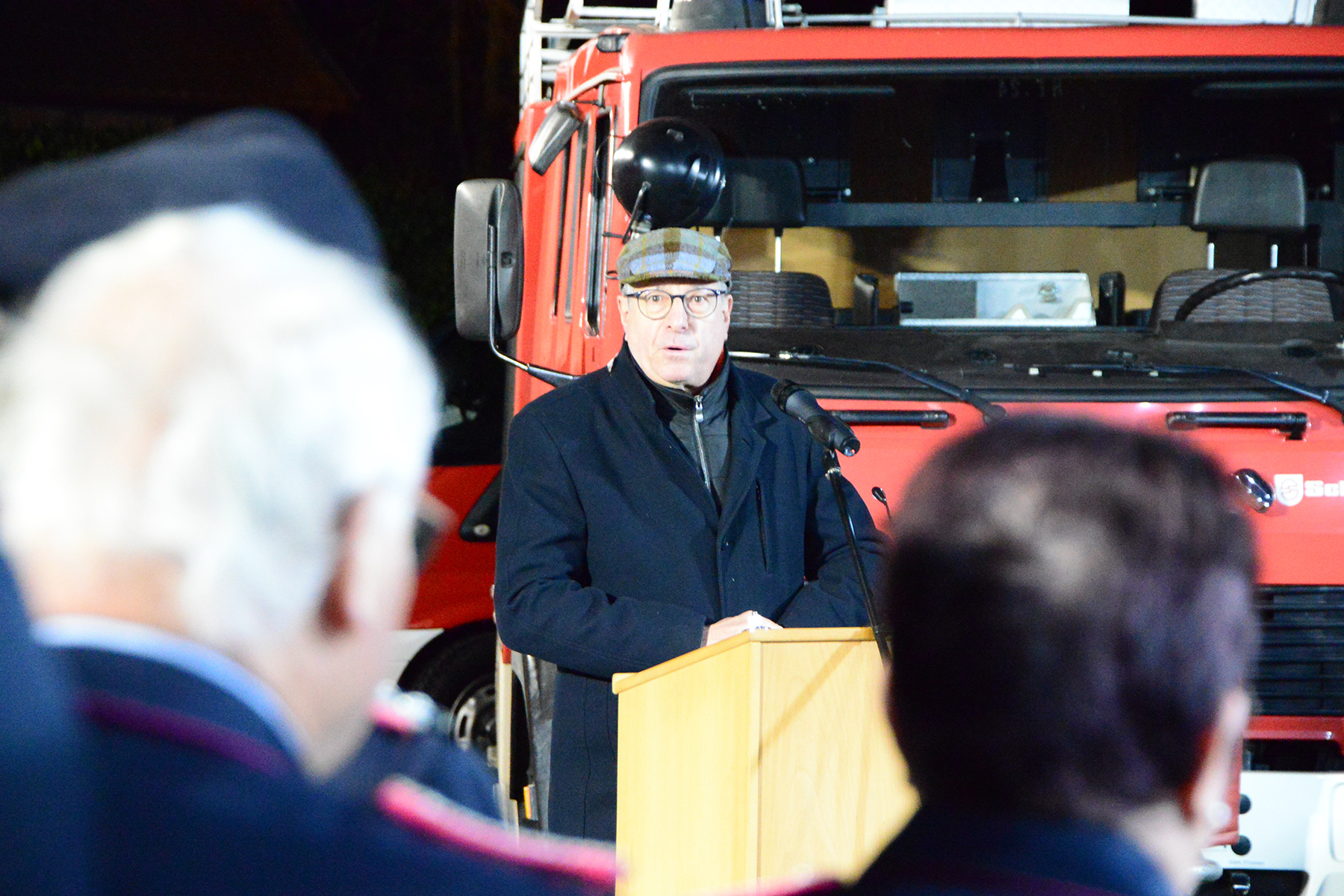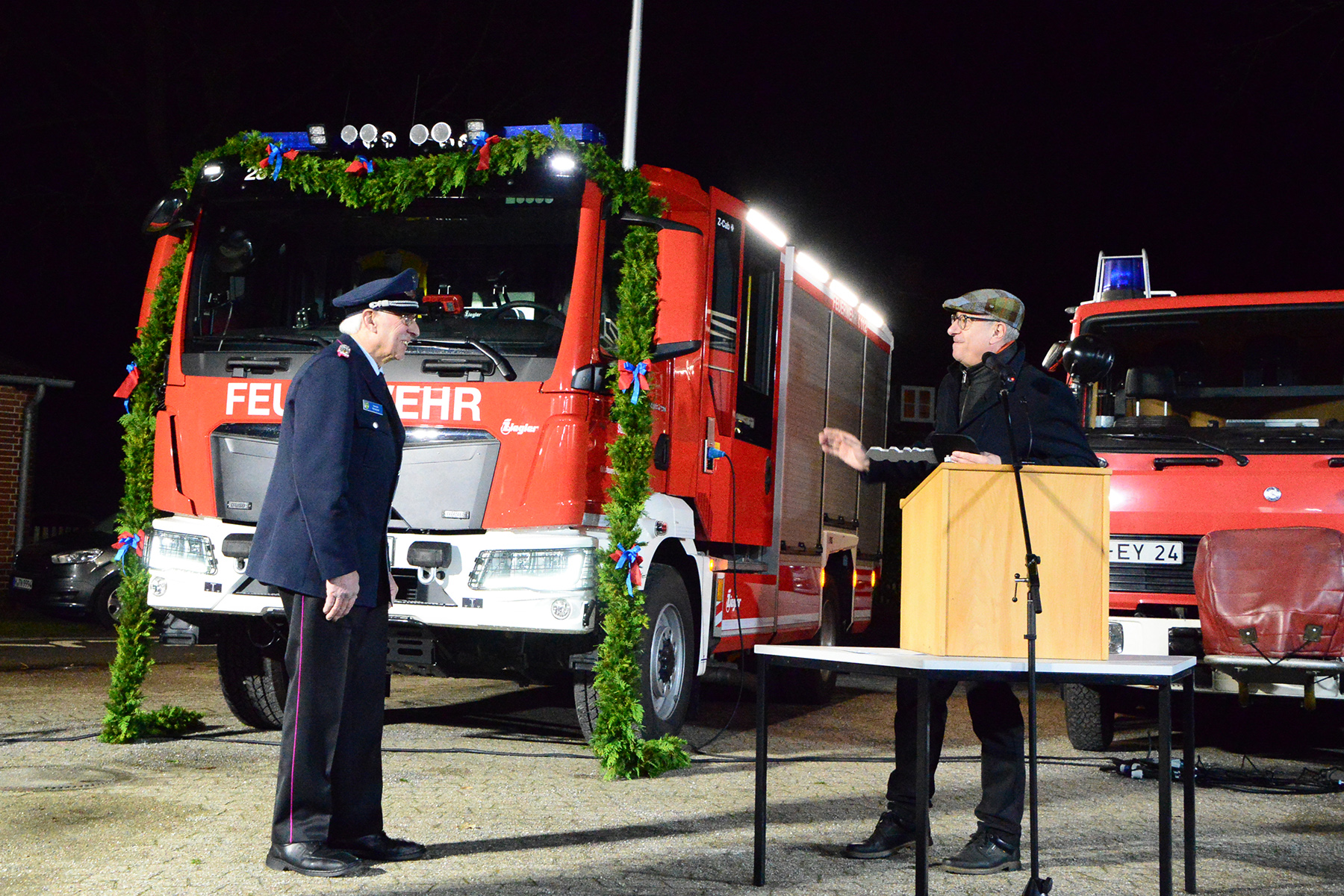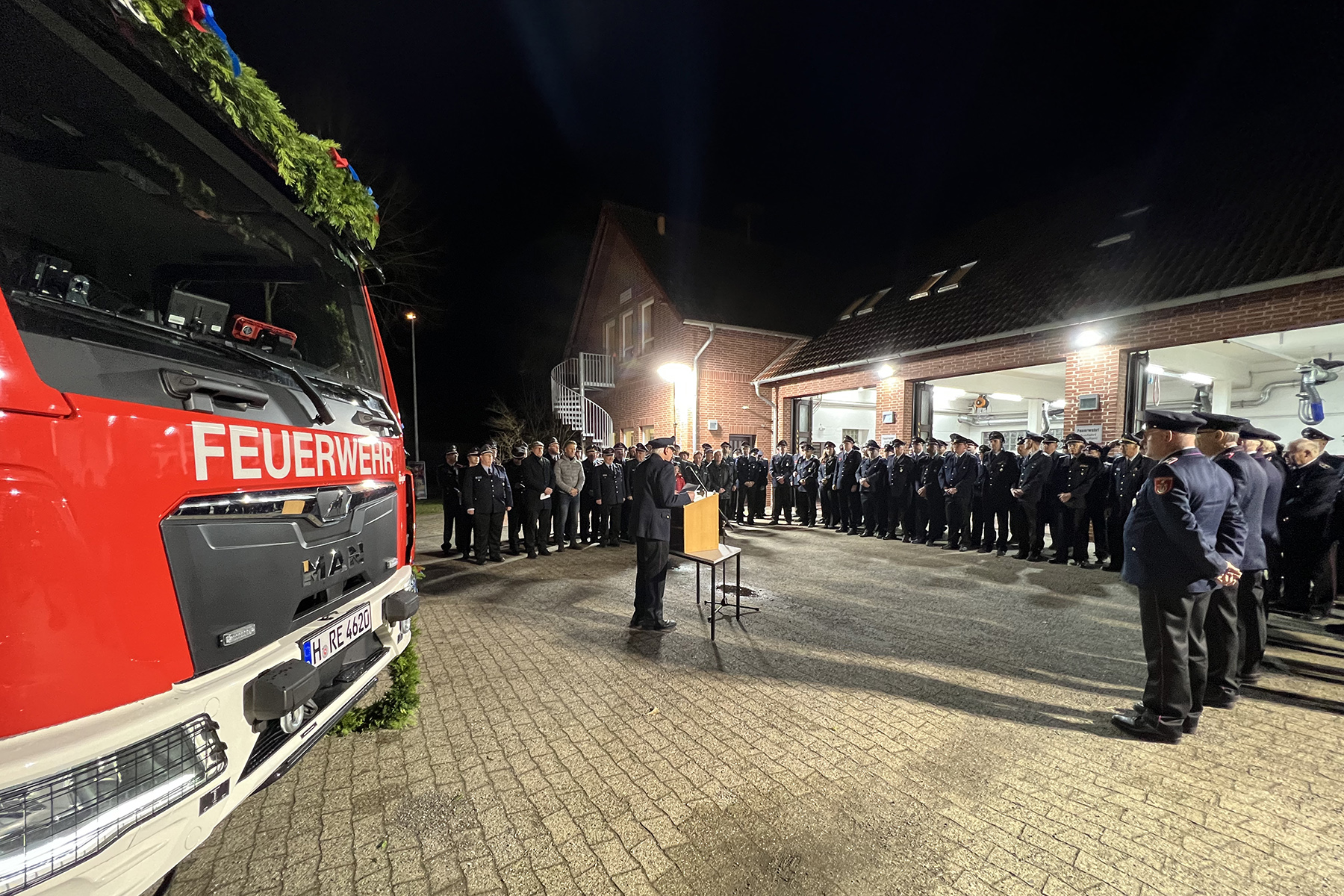 325.000 Euro hat die Stadt Burgdorf für das neue Löschfahrzeug ausgegeben. Burgdorfs Bürgermeister Armin Pollehn betonte, dass auch bei begrenzten städtischen finanziellen Mitteln die Feuerwehren gut ausgestattet werden. Nicht nur die angespannte Finanzlage der Stadt, sondern auch äußere Einflüsse wie unterbrochene Logistikketten und begrenzte Herstellerkapazitäten würden Fahrzeugbeschaffungen für die Feuerwehren schwieriger und teurer machen, so Pollehn, der den symbolischen Schlüssel des Fahrzeugs an Ortsbrandmeister Heinrich Könecke übergab.