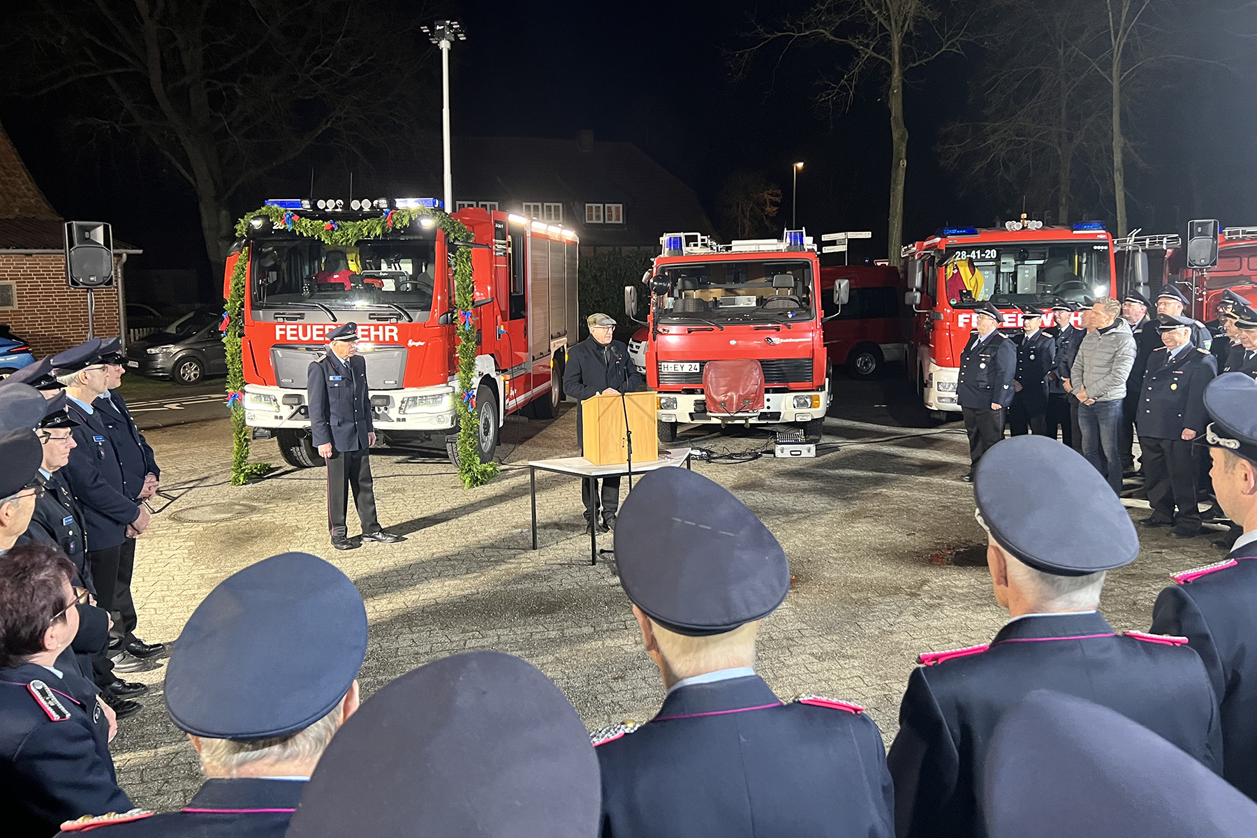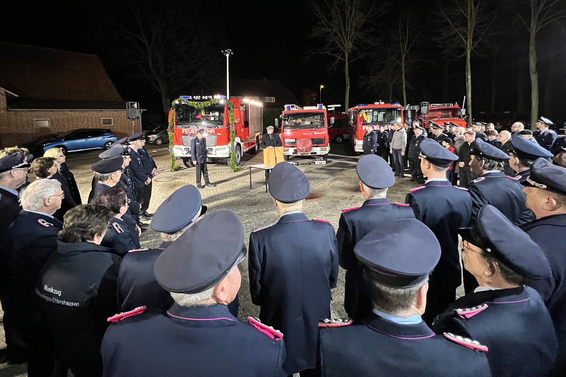Rund 100 Gäste waren zur Fahrzeugübergabe gekommen, so neben dem Bürgermeister wie auch der Einsatzabteilung der Ortsfeuerwehr auch der 1. Stadtrat Michael Kugel, der Ordnungsamtsleiter Christian Enderle, die Feuerwehrausschussvorsitzende Beate Neitzel, Ortsbürgermeister Wolfram Nolte, Stadtbrandmeister Dennis-Frederik Heuer, Abordnungen der Burgdorfer Ortsfeuerwehren, der Ortsfeuerwehren des alten Löschbezirks aus Engensen, Thönse und Wettmar, sowie aus Adelheidsdorf und Großmoor. Für die musikalische Begleitung sorgten die Musikzüge der Freiwilligen Feuerwehren aus Ramlingen-Ehlershausen und Adelheidsdorf.