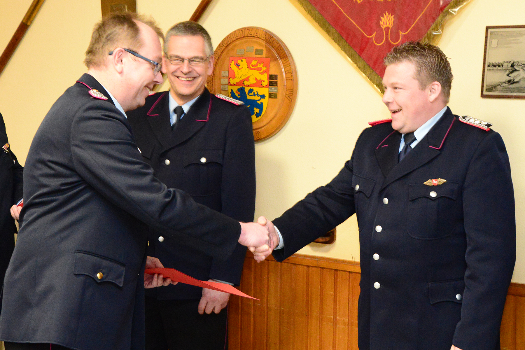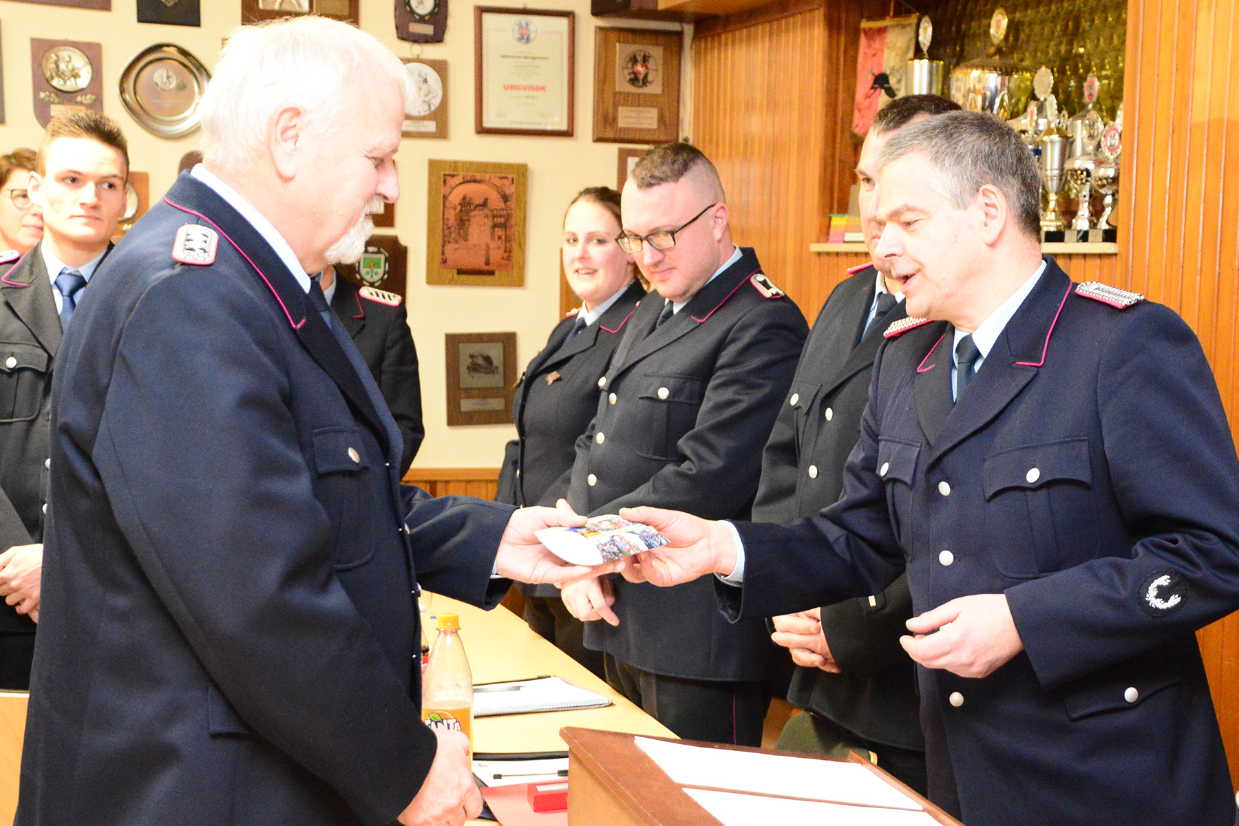 Durch den Brandschutzabschnittsleiter und den Stadtbrandmeister wurde Martin Carlens für seinen langjährigen Einsatz mit dem Silbernen Feuerwehr-Ehrenzeichen am Bande des Landes Niedersachsen ausgezeichnet. Für langjährige aktive Mitgliedschaft in der Feuerwehr wurden Kenneth Alraun und Björn Batschauer (jeweils 25 Jahre), Jörg Hansen (40 Jahre) und Uwe Kracke (50 Jahre) ausgezeichnet. Lothar Böker erhielt als förderndes Mitglied vom Landesfeuerwehrverband eine Urkunde für seine 25-jährige passive Mitgliedschaft.