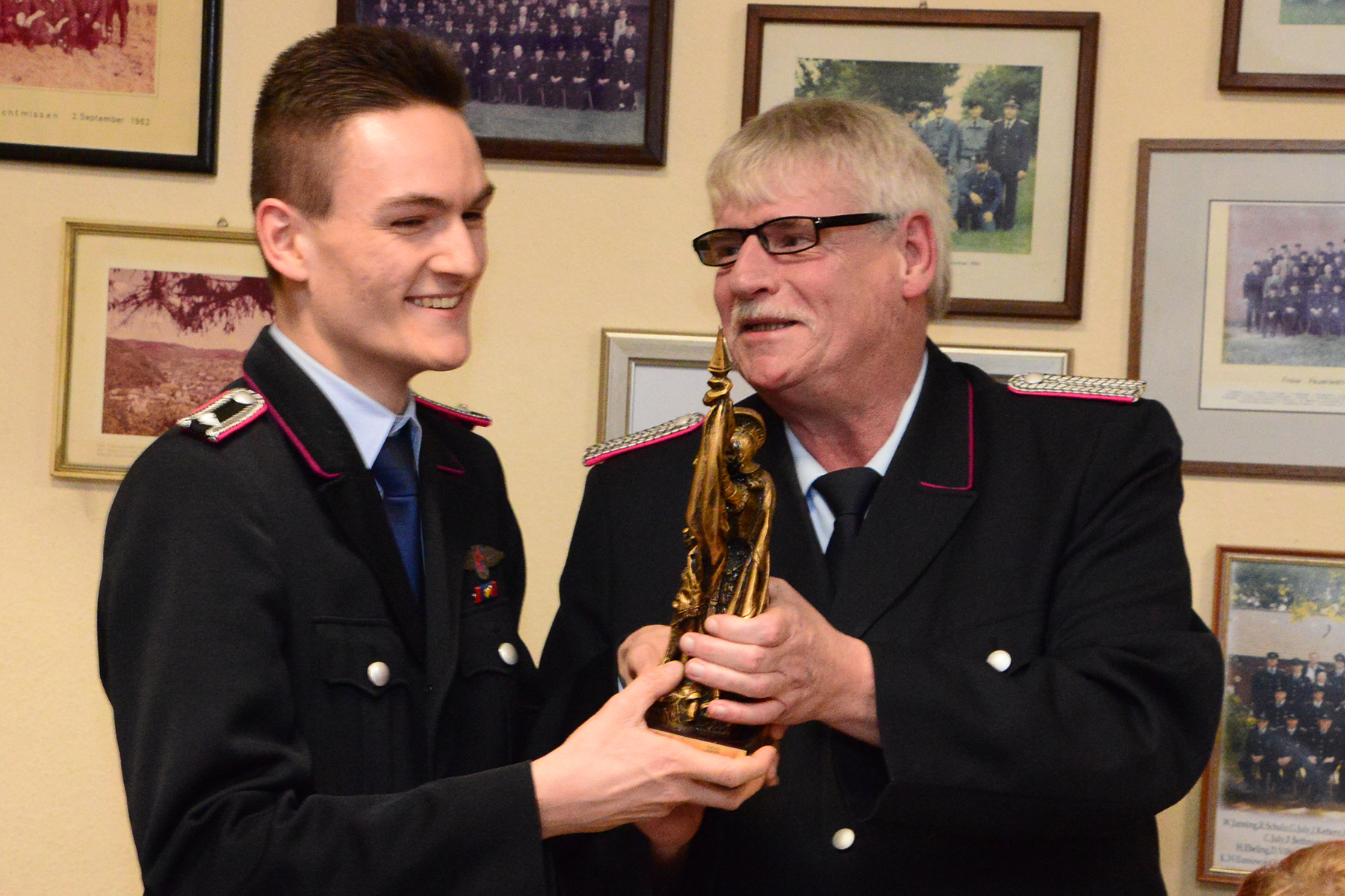 Besonderen Einsatz im vergangenen Jahr hatte Maximilian Oelze gezeigt, dem die "Heilige Florian" überreicht wurde. Der Wanderpokal wird für die meisten Dienststunden vergeben. "Maximilian hat mehr als zwei Arbeitsmonate, rund 330 Stunden, bei der Feuerwehr verbracht und sich vor allem auch bei der Jugendfeuerwehr engagiert", hob Ortsbrandmeister Wolfgang Schlusche hervor.