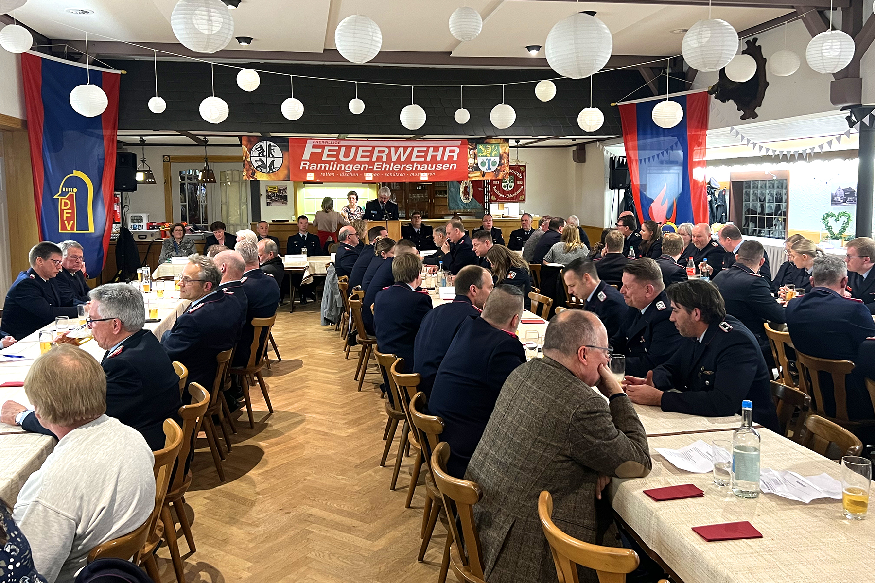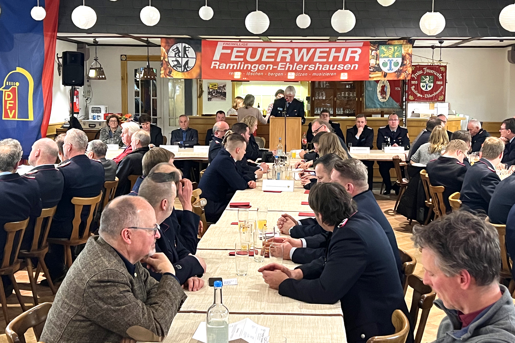 Rund 100 Gäste konnte Ortsbrandmeister Heinrich Könecke am gestrigen Freitag zur Jahreshauptversammlung der Stützpunktfeuerwehr begrüßen. Darunter den 1. Stadtrat Michael Kugel, die stellvertretende Ortsbürgermeisterin Katrin Thies, die Vorsitzende des Feuerwehrausschusses, Beate Neitzel, Brandschutzabschnittsleiter Tobias Jacob, Stadtbrandmeister Dennis-Frederik Heuer, seinen Stellvertreter Florian Bethmann, Ehrenstadtbrandmeister Alfred Brönnemann, die Ehrenortsbrandmeister Karl-Heinz Blume und Hermann Könecke, Abordnungen der Ortsfeuerwehren aus dem alten Löschbezirk aus Engensen, Thönse und Wettmar sowie der Partnerfeuerwehr aus Kleinmühlingen/Zens. Für die musikalische Umrahmung des Abends sorgte der Musikzug der Ortsfeuerwehr Ramlingen-Ehlershausen.