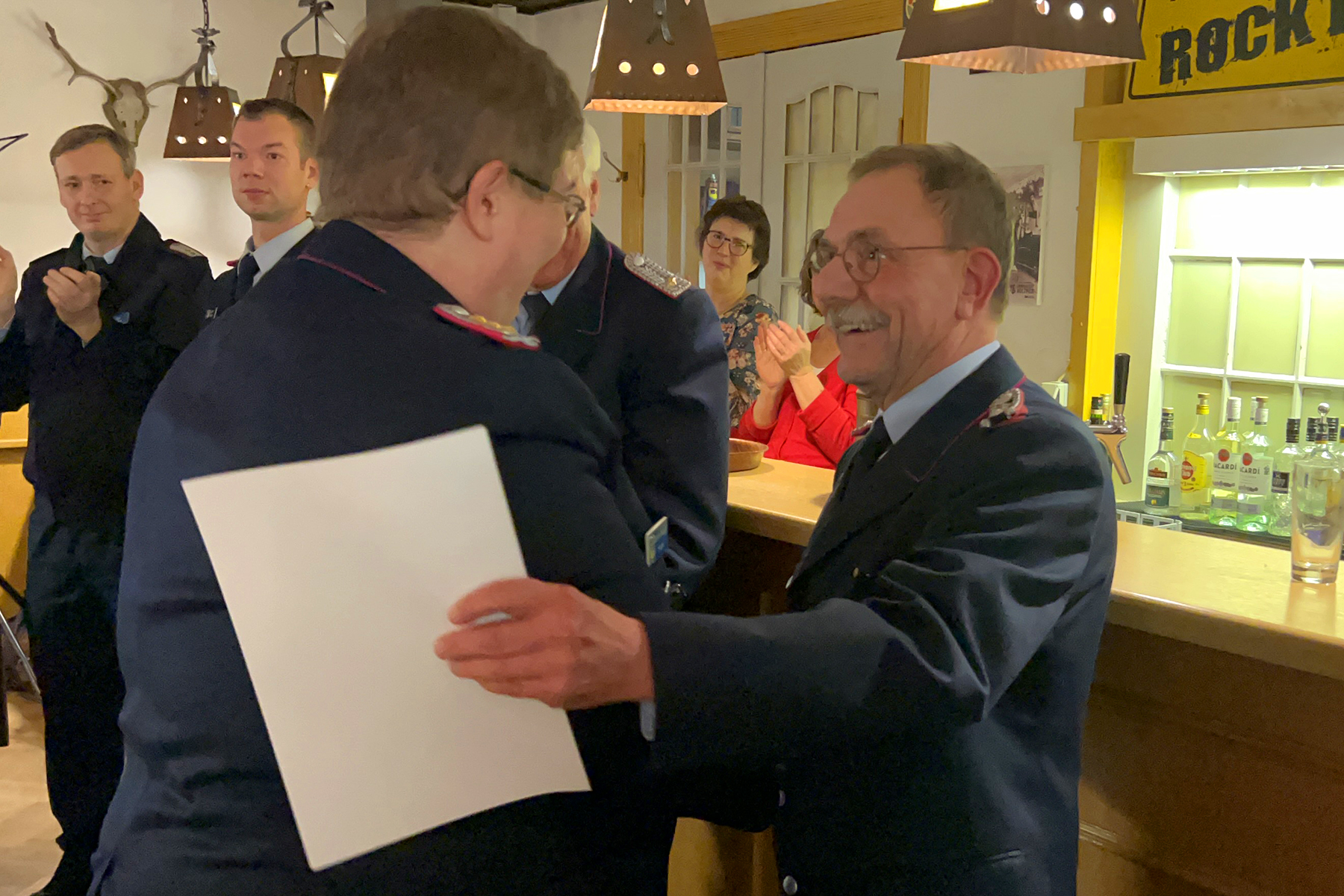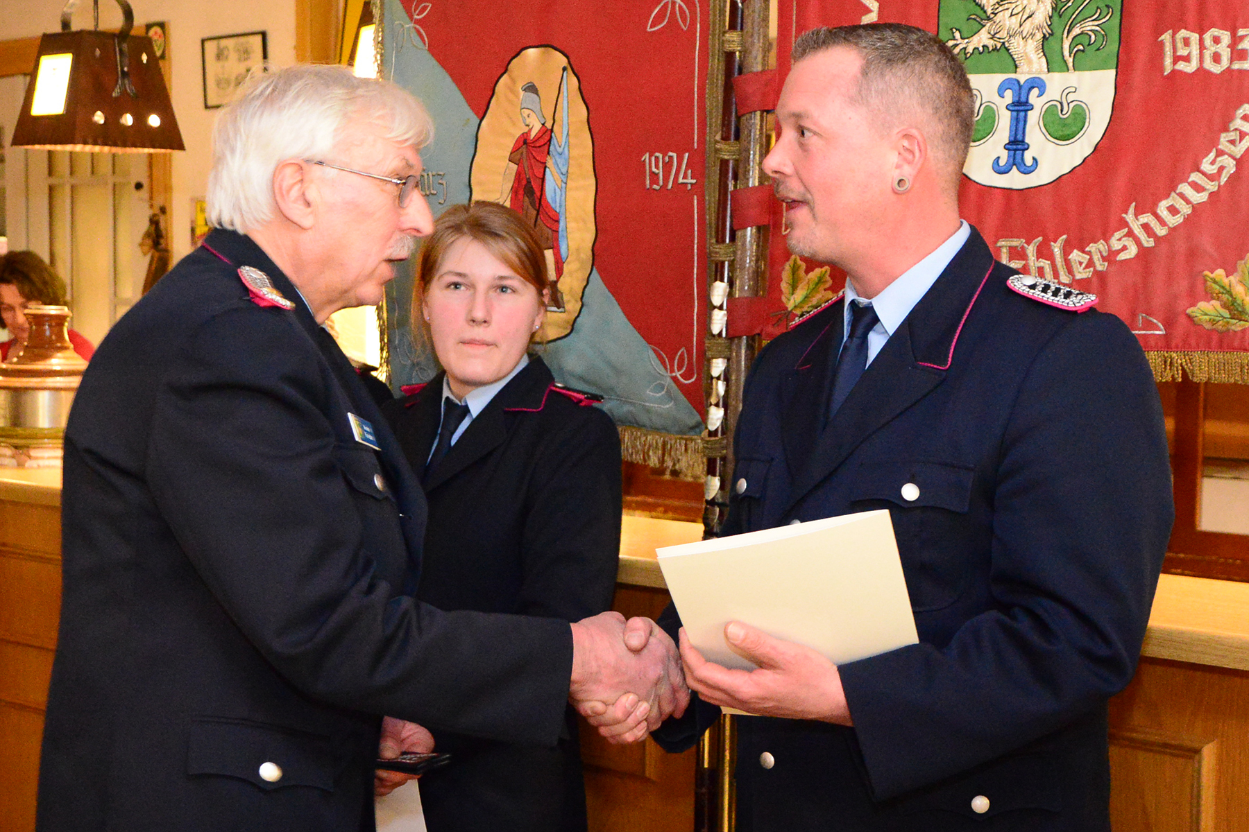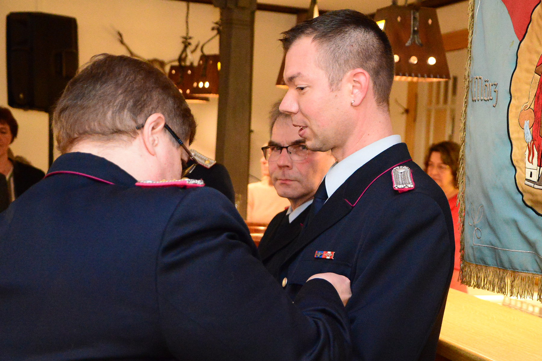 Besondere Ehre wurde zwei Mitgliedern der Ortsfeuerwehr zuteil: Die silberne Ehrennadel des Landesfeuerwehrverbandes Niedersachsen erhielt Bernd Lüdke. Zudem wurde der ehemalige Musikzugführer Jürgen Wöhler zum Ehrenmusikzugführer ernannt.
