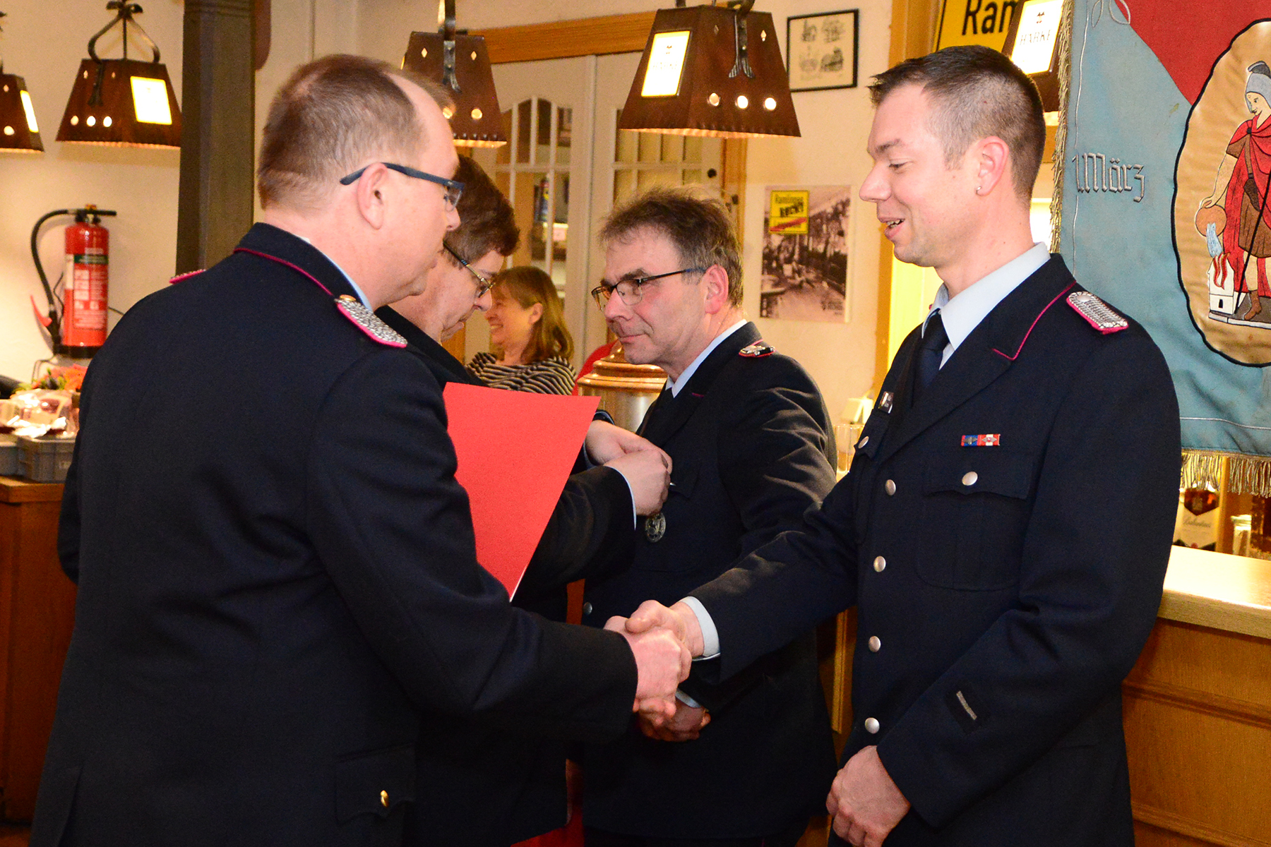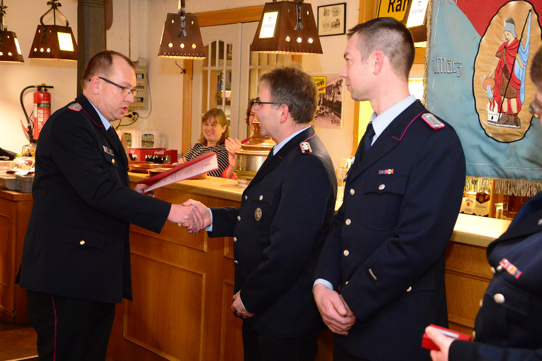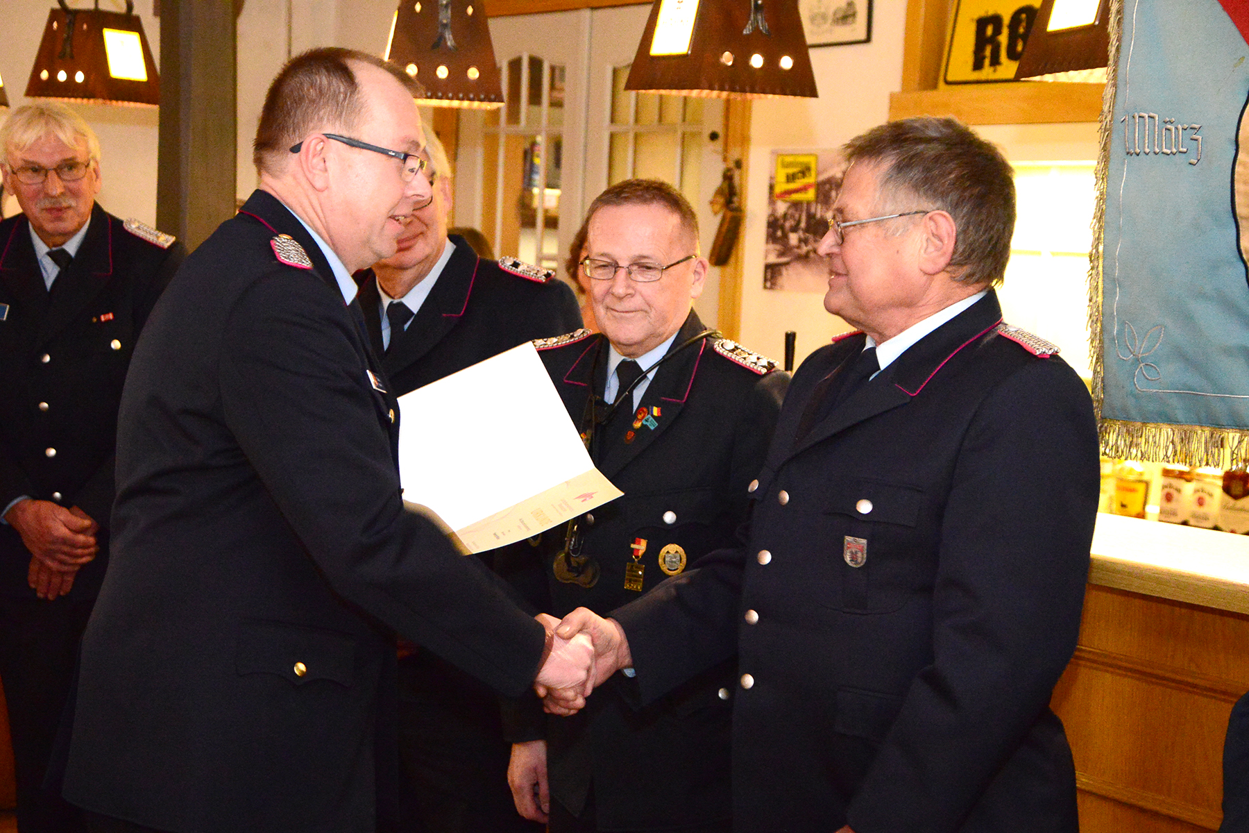 Des Weiteren wurden Hans-Joachim Wick, Uwe Köneke und Heinrich Wöhler für 50-jährige Mitgliedschaft in der Feuerwehr mit dem Ehrenzeichen des Landesfeuerwehrverbandes ausgezeichnet. Das Feuerwehr-Ehrenzeichen des Landes Niedersachsen für langjährige aktive Mitgliedschaft in der Feuerwehr erhielten Bernd Voltmer (40 Jahre) und Mike Kories (25 Jahre).