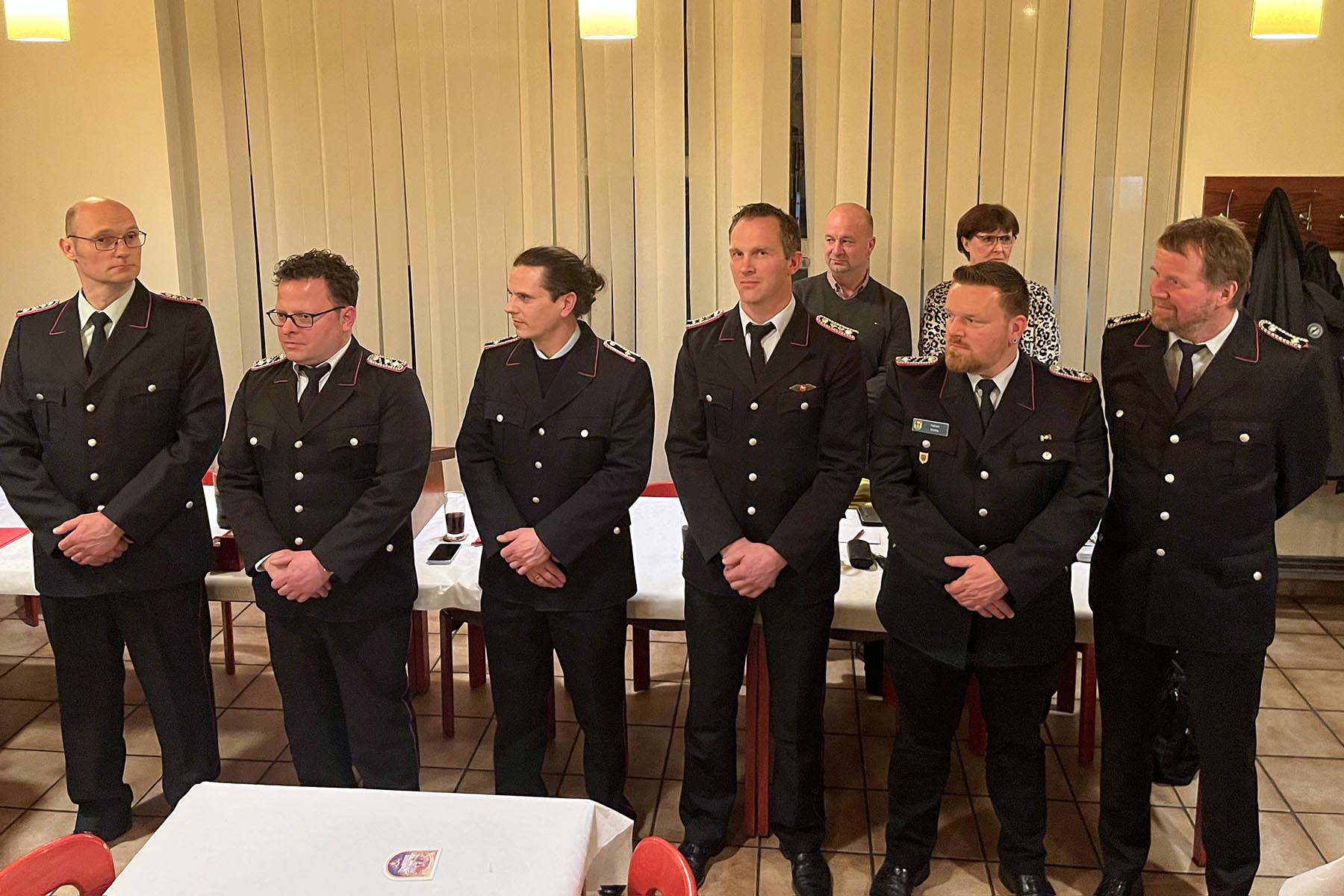 Mit Lasse Meyer konnte ein neuer Feuerwehrmannanwärter offiziell in den Reihen der Ortsfeuerwehr begrüßt werden, der in der Familie Meyer nun in 3. Generation aktiver Feuerwehrmann ist. Julius von Eller-Eberstein erhielt den ersten Dienstgrad seiner Laufbahn und wurde zum Feuerwehrmann ernennt. Weiter erhielten Timo Schulig (Hauptfeuerwehrmann), Tobias Bähr (Erster Hauptfeuerwehrmann) und Fabian Hinte (Hauptlöschmeister) neue Dienstgrade