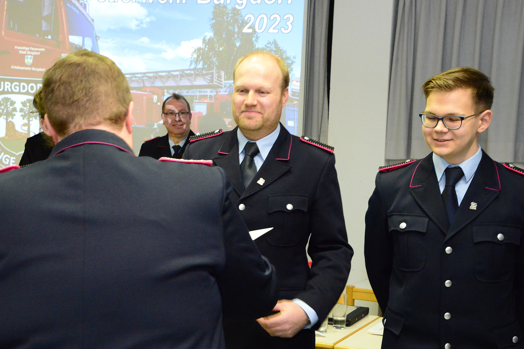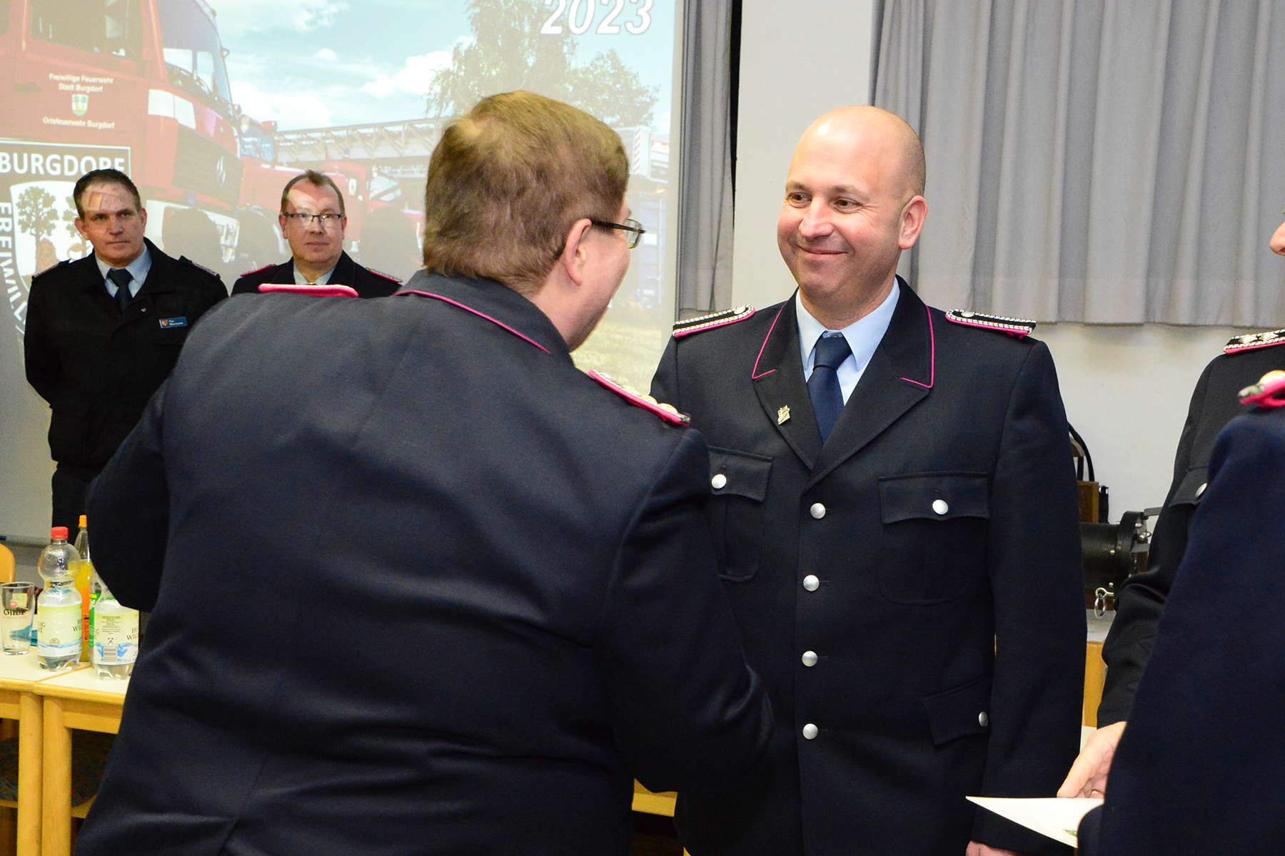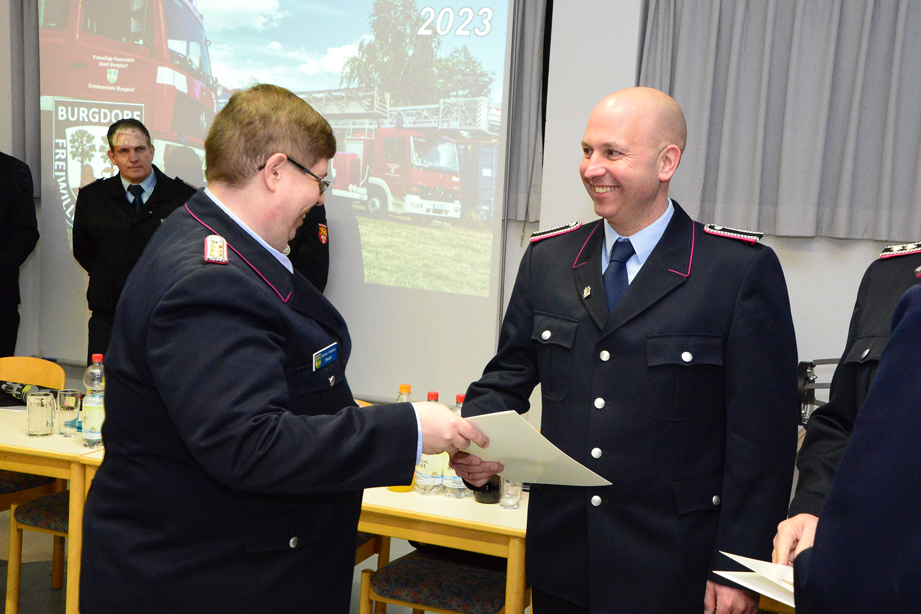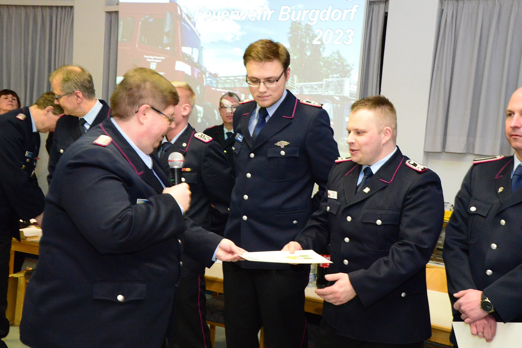 Rund 90 Gäste konnte Ortsbrandmeister Florian Bethmann zur Jahreshauptversammlung im Feuerwehrhaus in der Straße Vor dem Celler Tor begrüßen. Darunter Burgdorfs Bürgermeister Armin Pollehn, die Feuerwehrausschussvorsitzende Beate Neitzel, Mitglieder des Stadtrates, den Brandschutzabschnittsleiter Tobias Jacob und sein Stellvertreter Tim Herrmann, Stadtbrandmeister Dennis-Frederik Heuer sowie Vertreter von Polizei, DRK und THW.