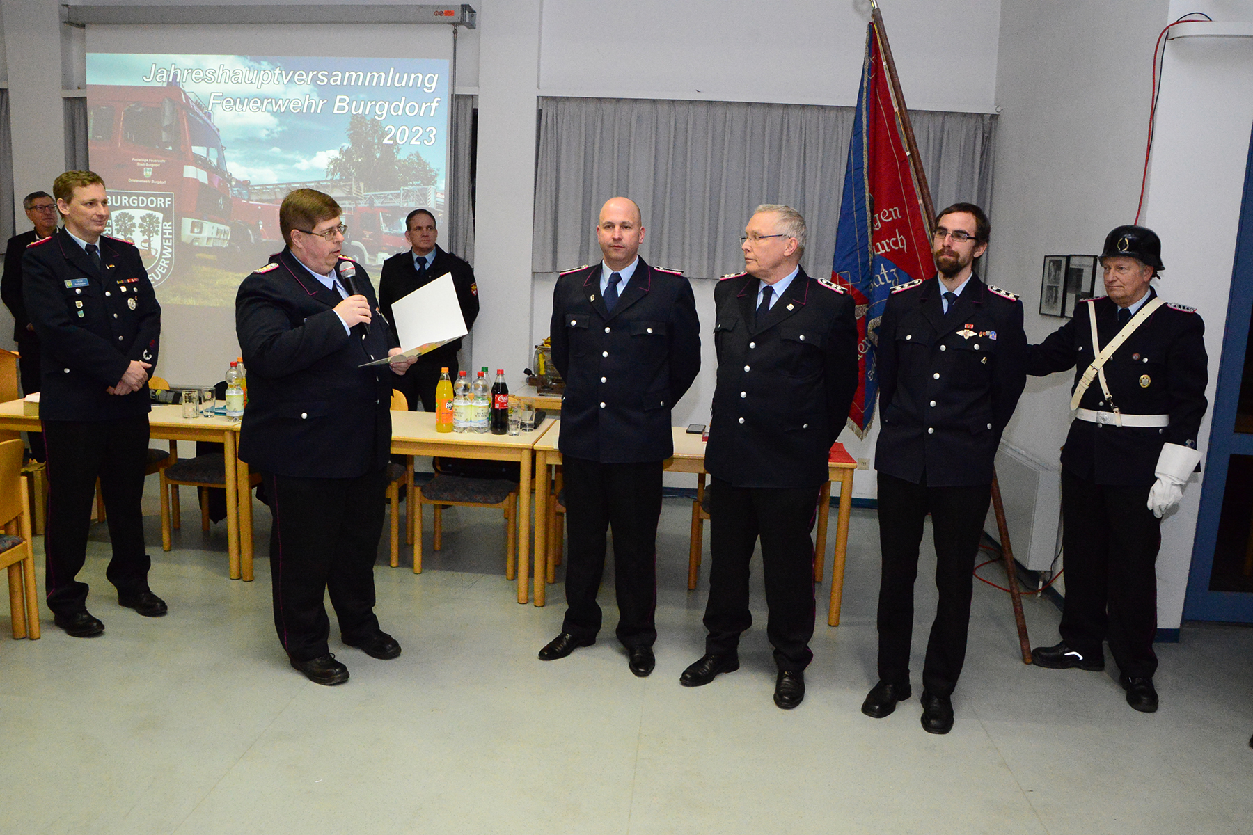 "Wir sind ein großes Team und ein gutes Team", urteilte der Ortsbrandmeister nach seinem Jahresbericht. "Ich möchte allen Bürgern sagen: Wenn jemand in Burgdorf Hilfe braucht, dann sind wir jederzeit bereit".