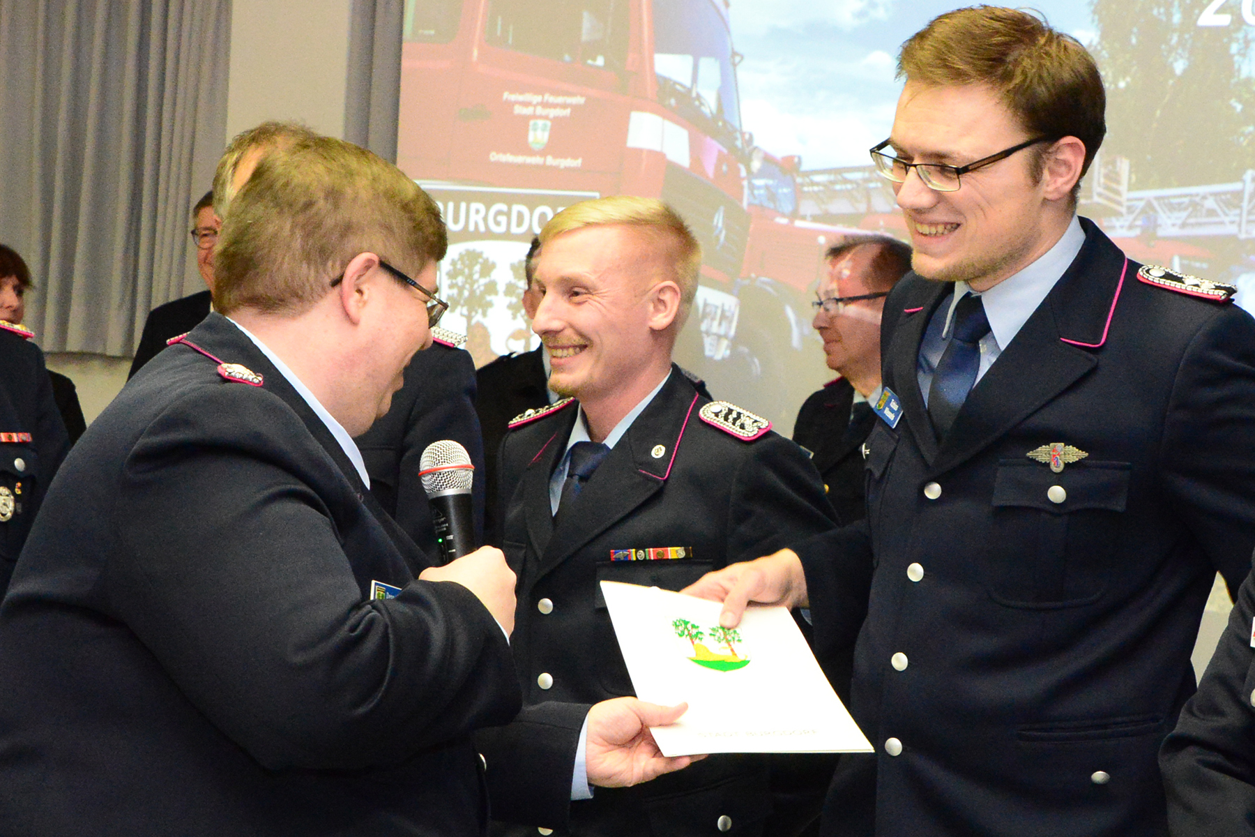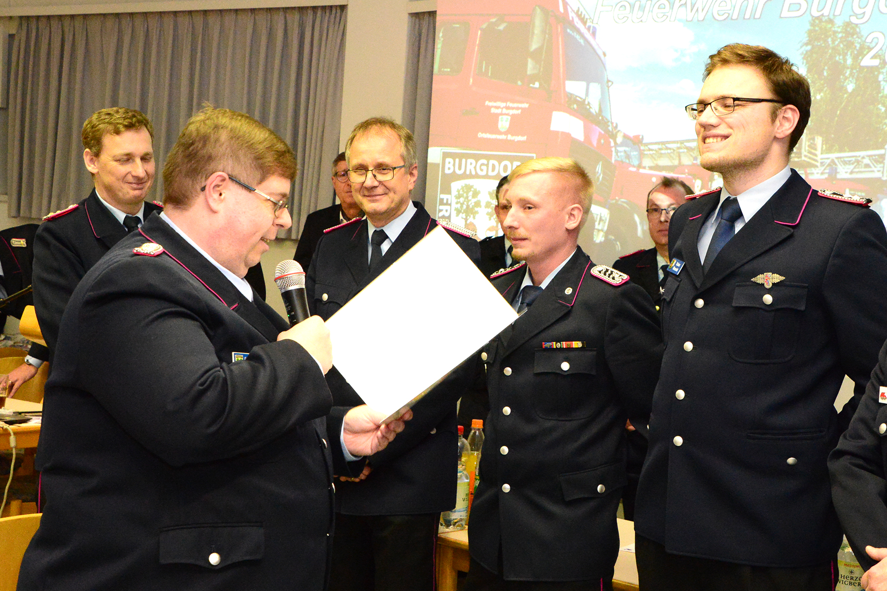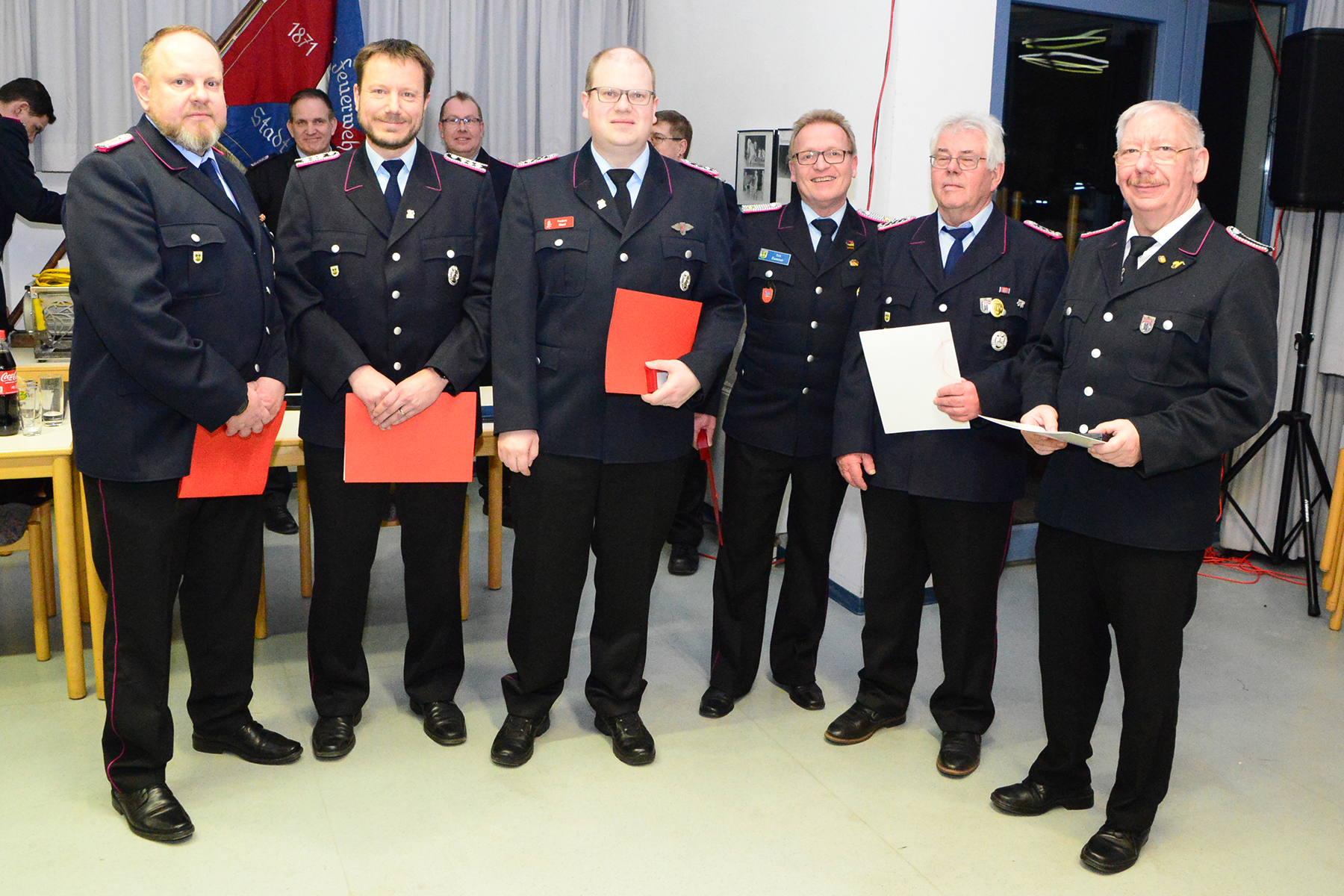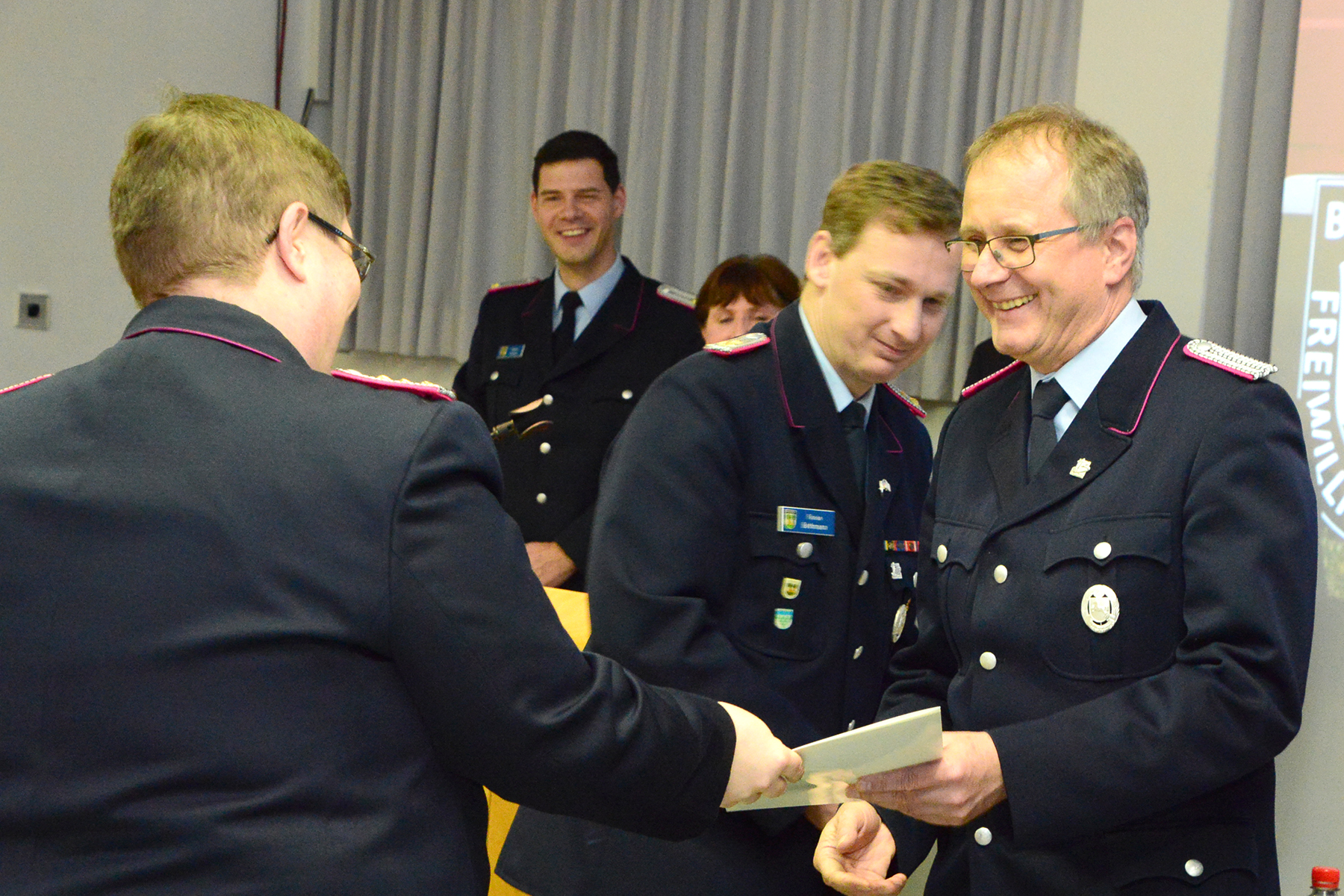 Aufgrund erfolgreich absolvierter Lehrgänge und erforderlicher Dienstzeit konnten auch wieder neue Dienstgrade verliehen werden. Zum Oberfeuerwehrmann wurde Björn Knoche ernannt. Den Dienstgrad 1. Hauptfeuerwehrmann erhielten Marcel Drietchen und Florian Schäfer. Löschmeister dürfen sich nun Tobias Wessels und Tobias Heck nennen. Den Rang eines Hauptlöschmeisters bekleidet nun Tim Nadarzy und zum Oberbrandmeister wurde Klaus Wickboldt ernannt.