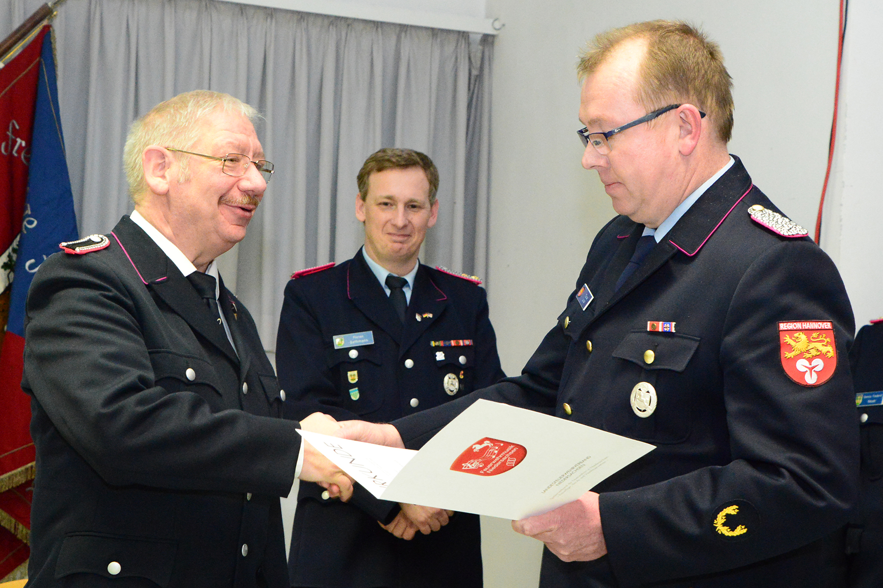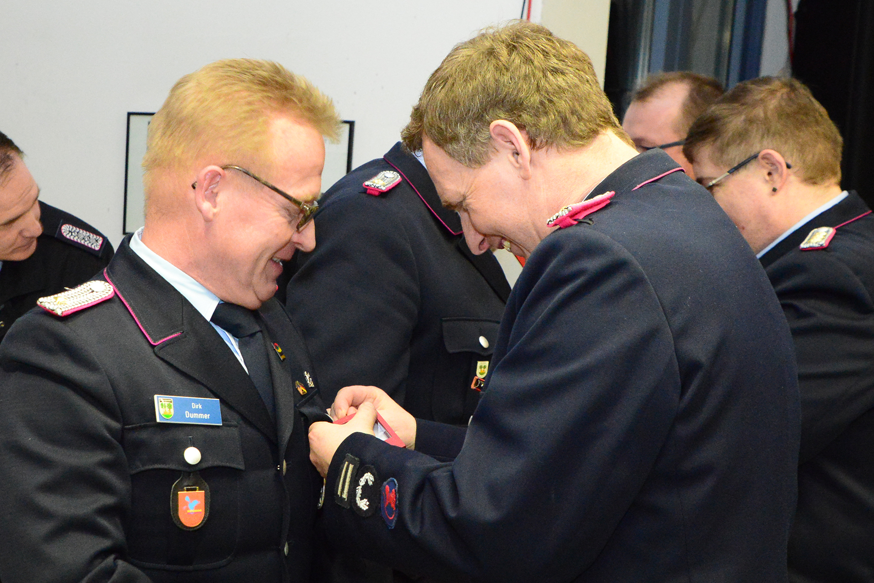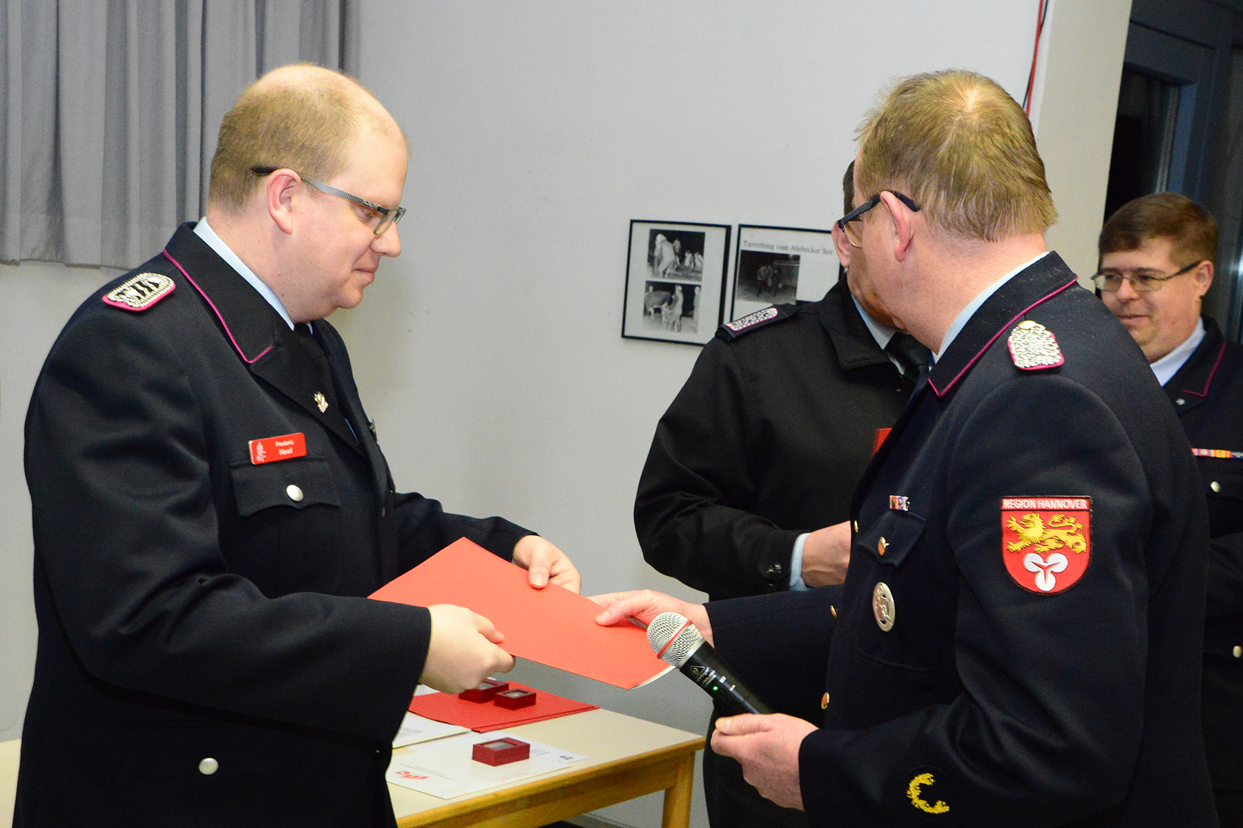 Für 40-jährige aktive Feuerwehrtätigkeit wurden Dirk Dummer und Björn Schaprian ausgezeichnet. Für 25-jährige aktive Feuerwehrtätigkeit wurden Frederik Neef und Torsten Rosenberger. geehrt. Für 25-jährige Tätigkeit im Feuerwehr-Musikwesen erhielt Frank Möhle eine Auszeichnung. Und das Feuerwehrehrenzeichen des Landesfeuerwehrverbandes für 50-jährige Mitgliedschaft wurde Ralf Rainer Oehlke verliehen. Zudem wurde Ortsbrandmeister Florian Bethmann das Feuerwehr-Ehrenzeichen am Bande und Pastor Dirk Jonas die Feuerwehr-Ehrenmedaille verliehen (wir berichteten).