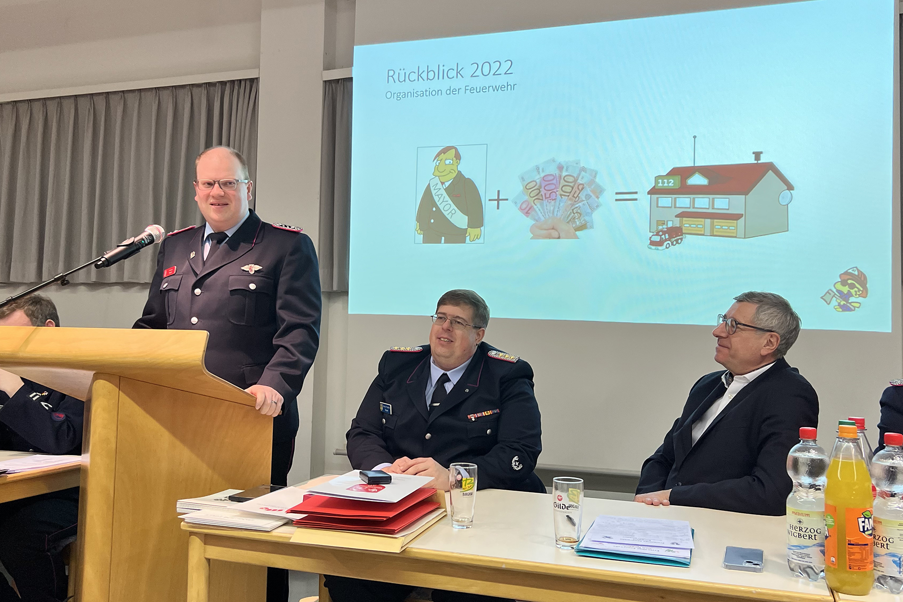 Was die Einsatzzahlen angeht, sei das Niveau von vor der Corona-Pandemie wieder erreicht, berichtete der Ortsbrandmeister. Zum ersten Einsatz 2022 wurden die Feuerwehrkräfte am 3. Januar um 17:35 Uhr zu einer geborstenen Wasserleitung am Schwimmbad gerufen, der sich bis in den nächsten Morgen hinzog. Der letzte Einsatz war am 31. Dezember, als die Brandbekämpfer zu einem ausgelösten Rauchwarnmelder gerufen wurden. "Aufgrund des Rauchwarnmelders und der Nachbarn konnte ein größerer Schaden verhindert werden", so Bethmann. Gewaltsam wurde die Wohnungstür geöffnet und eine Person aus der völlig verqualmten Wohnung gerettet. Ausgelöste Rauchwarnmelder seien häufig mit einem qualmenden Gerät oder angebranntem Essen verbunden, so der Ortsbrandmeister. "Doch wie am 31. Dezember zu sehen: Rauchwarnmelder retten Leben", so Bethmann. "20 Minuten später hätte es die Person nicht mehr geschafft und wir hätten einen Wohnungsbrand vorgefunden", erklärte er den Anwesenden.