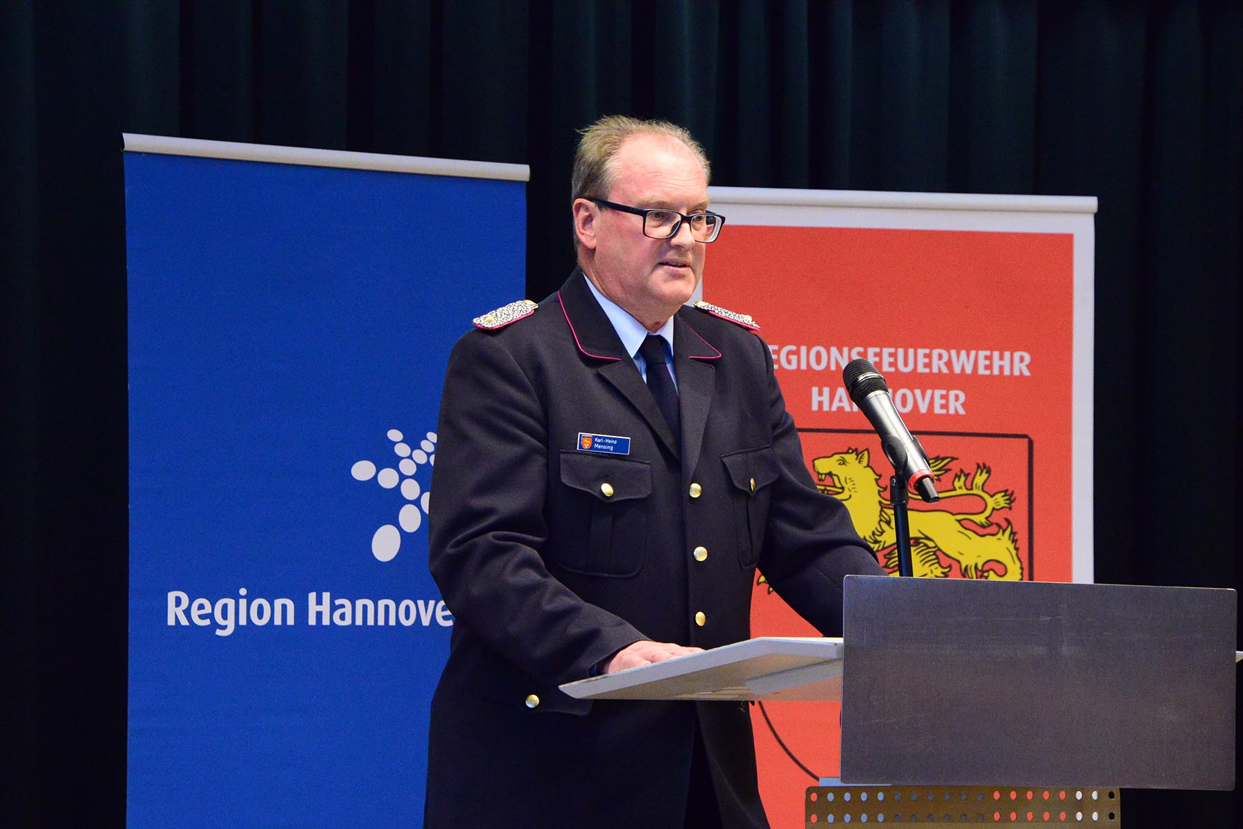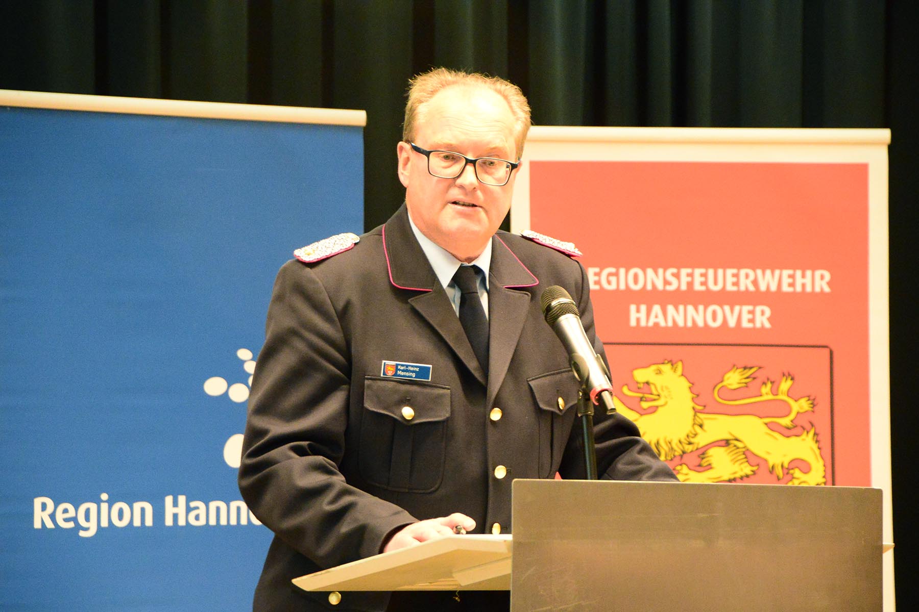 Rund 80 Gäste konnte Regionsbrandmeister Karl-Heinz Mensing, oberster Feuerwehrmann der Region Hannover, am gestrigen Freitagabend im Amtshof in Großburgwedel begrüßen. Darunter Burgwedels Bürgermeisterin Ortrud Wendt als Gastgeberin des Abends, die sich freute, dem Abschied einen würdigen Rahmen geben zu können. Weiterhin zählten Abschnittsleiter-Vorgänger und Burgwedels Ehrenstadtbrandmeister Heinz-Jürgen Krüger, der zweite Burgwedeler Ehrenstadtbrandmeister, Friedhelm Leisenberg, Mitglieder der Stadt- und Gemeindekommandos der vier Kommunen sowie Vertreter der Ortsfeuerwehren des Brandschnitts. Dieser besteht aus 36 Ortsfeuerwehren mit rund 1500 Einsatzkräften.