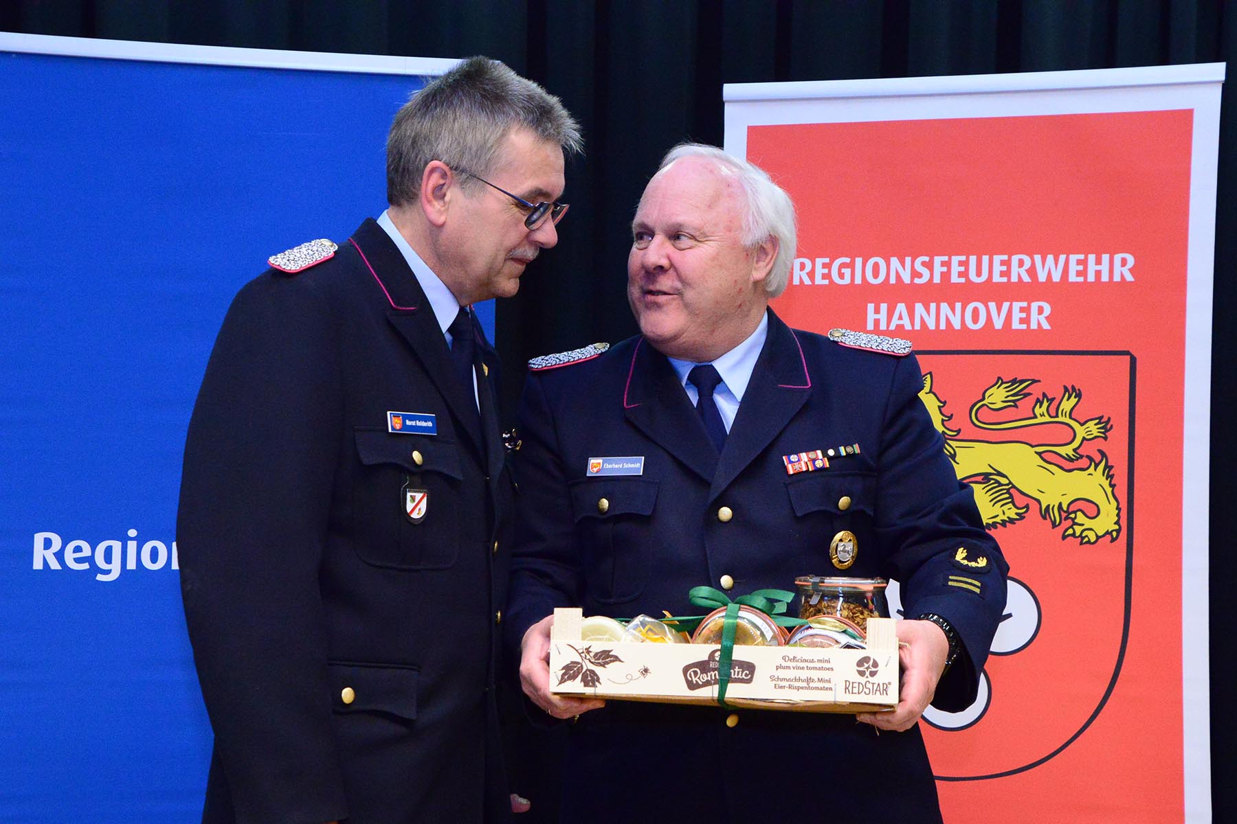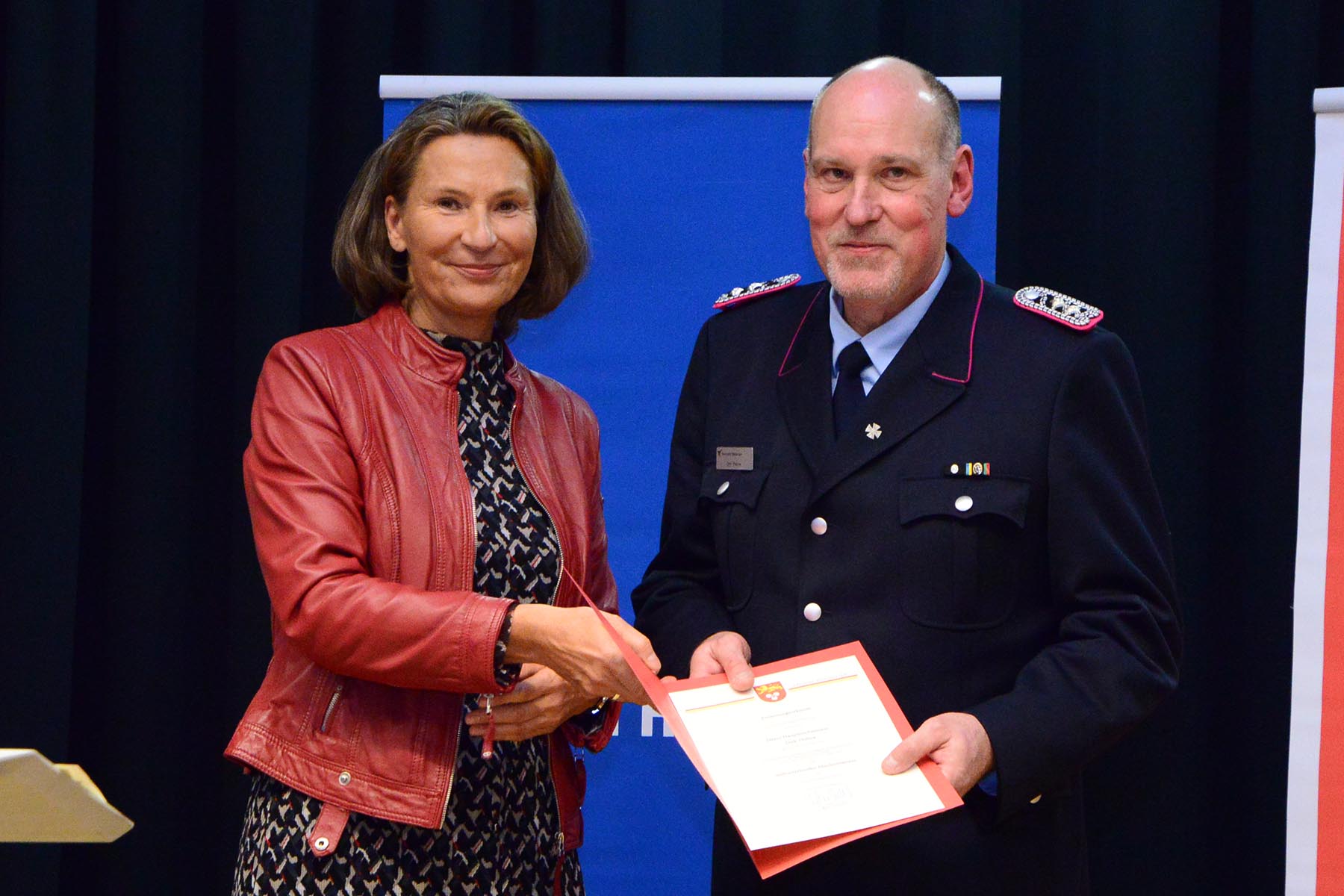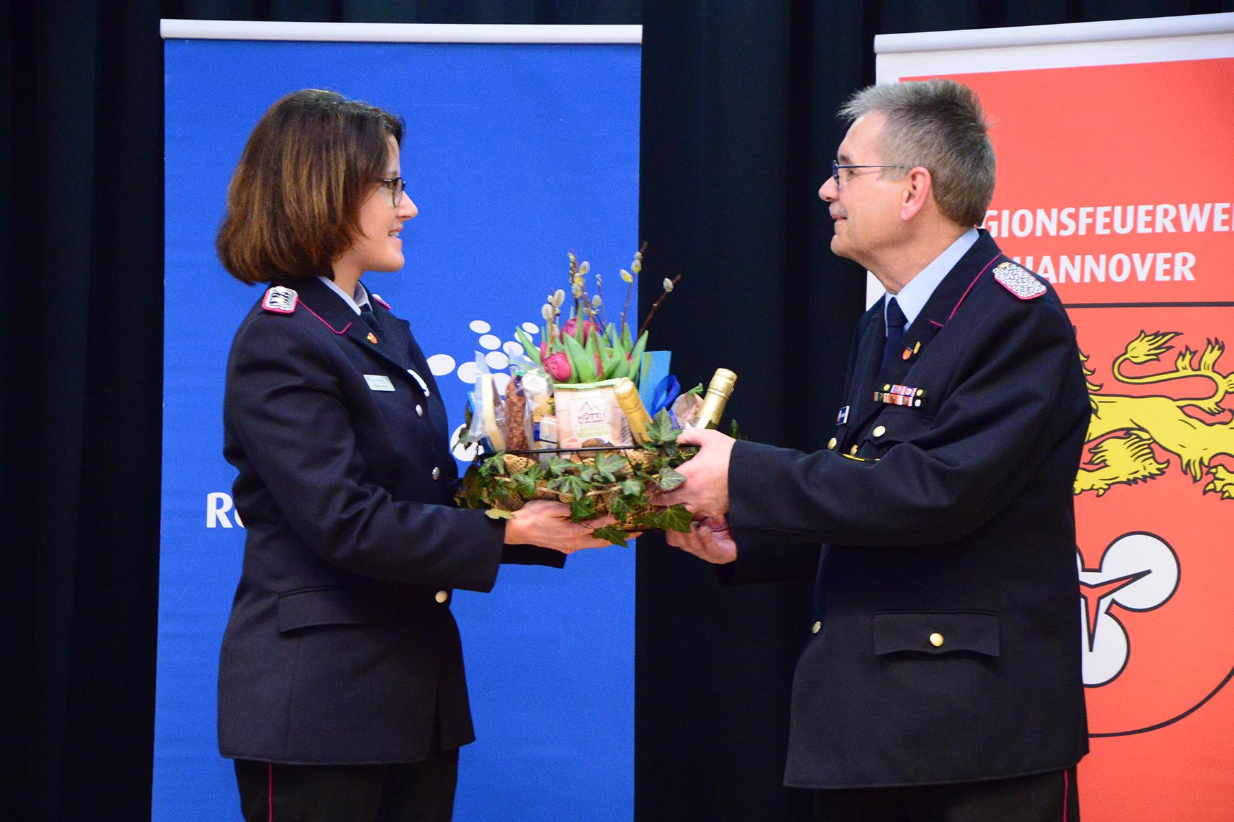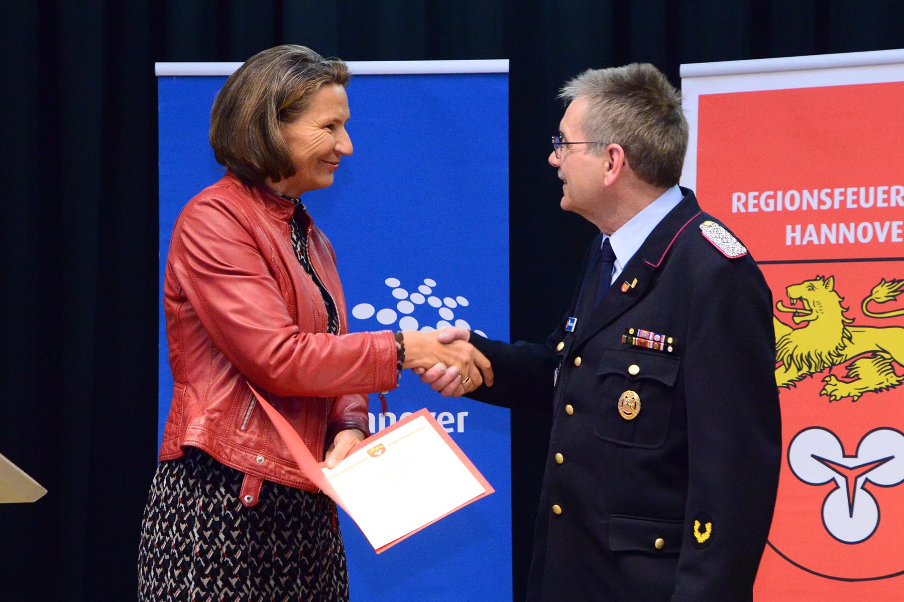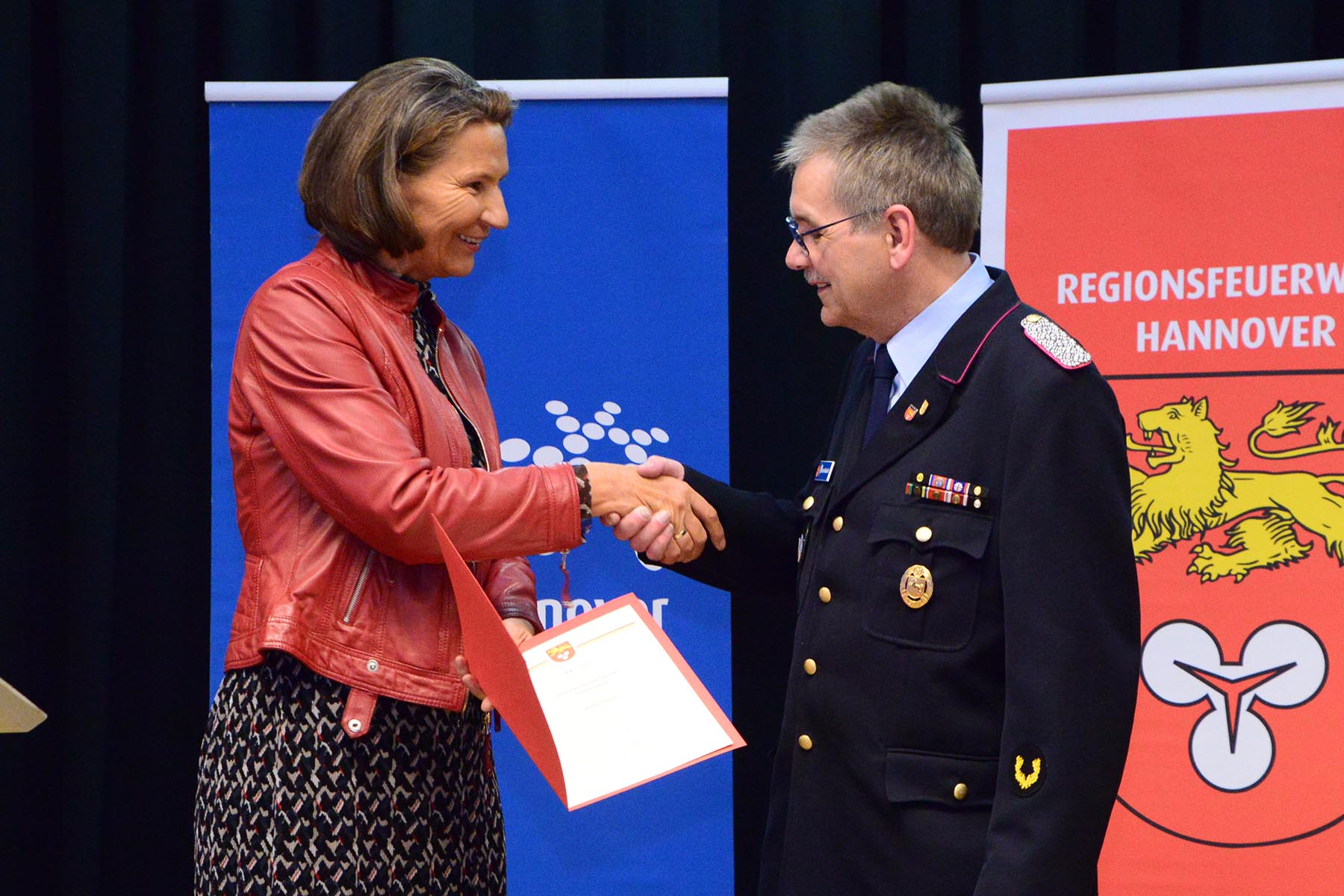 Nach dem Abschied des Amtsinhabers überreichte sie im Namen des Regionspräsidenten die Ernennungs- und Beförderungsurkunde an seinen Nachfolger. Volker Kluth, bereits seit sechs Jahren stellvertretender Abschnittsleiter, wird am 1. April das Amt des Abschnittsleiters übernehmen und erhielt seine Ernennungsurkunde sowie die Beförderungsurkunde zum Abschnittsbrandmeister. Ebenfalls ab 1. April steht ihm Dirk Thelow, Mitglied der Ortsfeuerwehr Gailhof (Gemeinde Wedemark), als Stellvertreter zur Seite. Dirk Thelow legte seinen Amtseid ab und erhielt zudem seine Urkunde zum Vollzugsbeamten. Beide sind für sechs Jahres ins Amt gewählt.