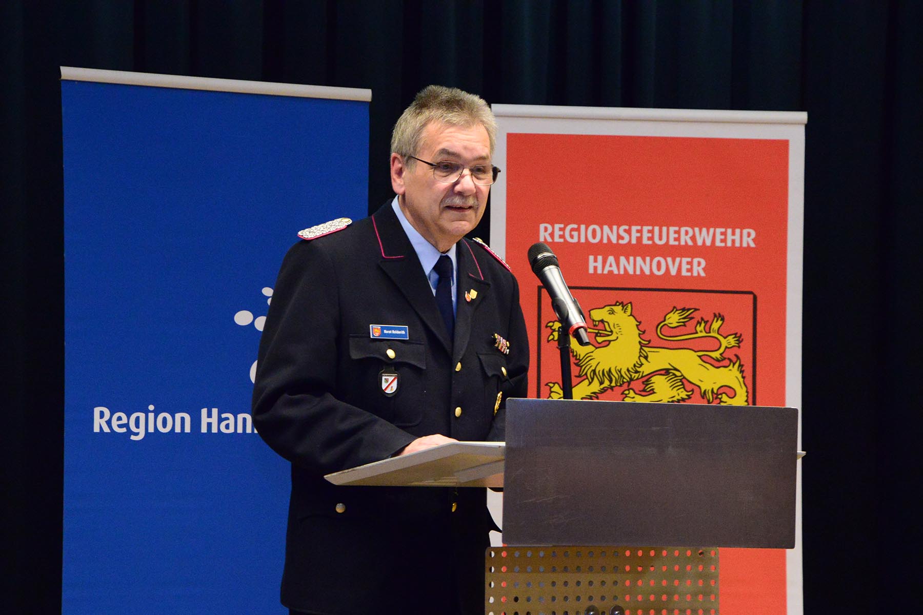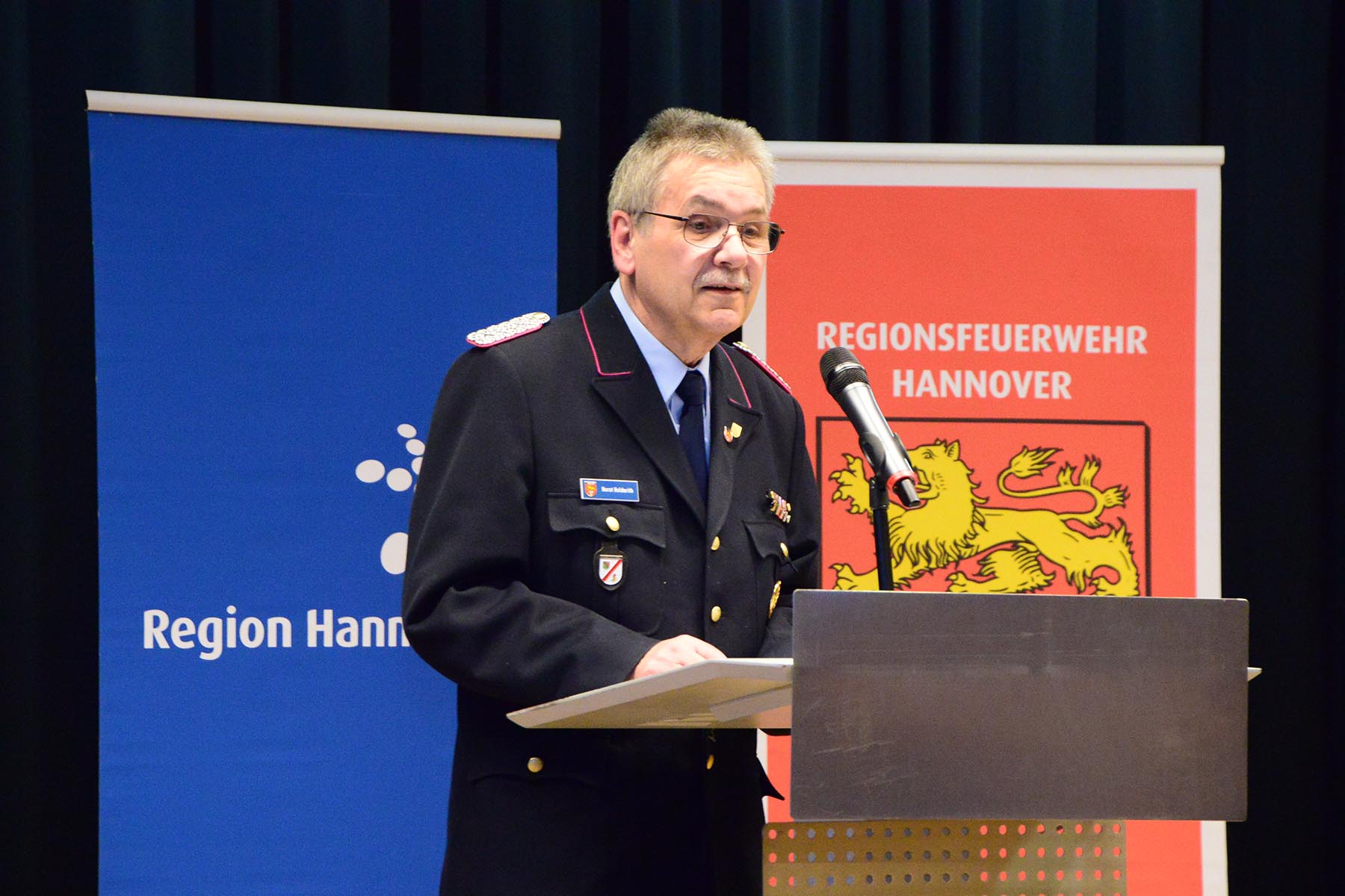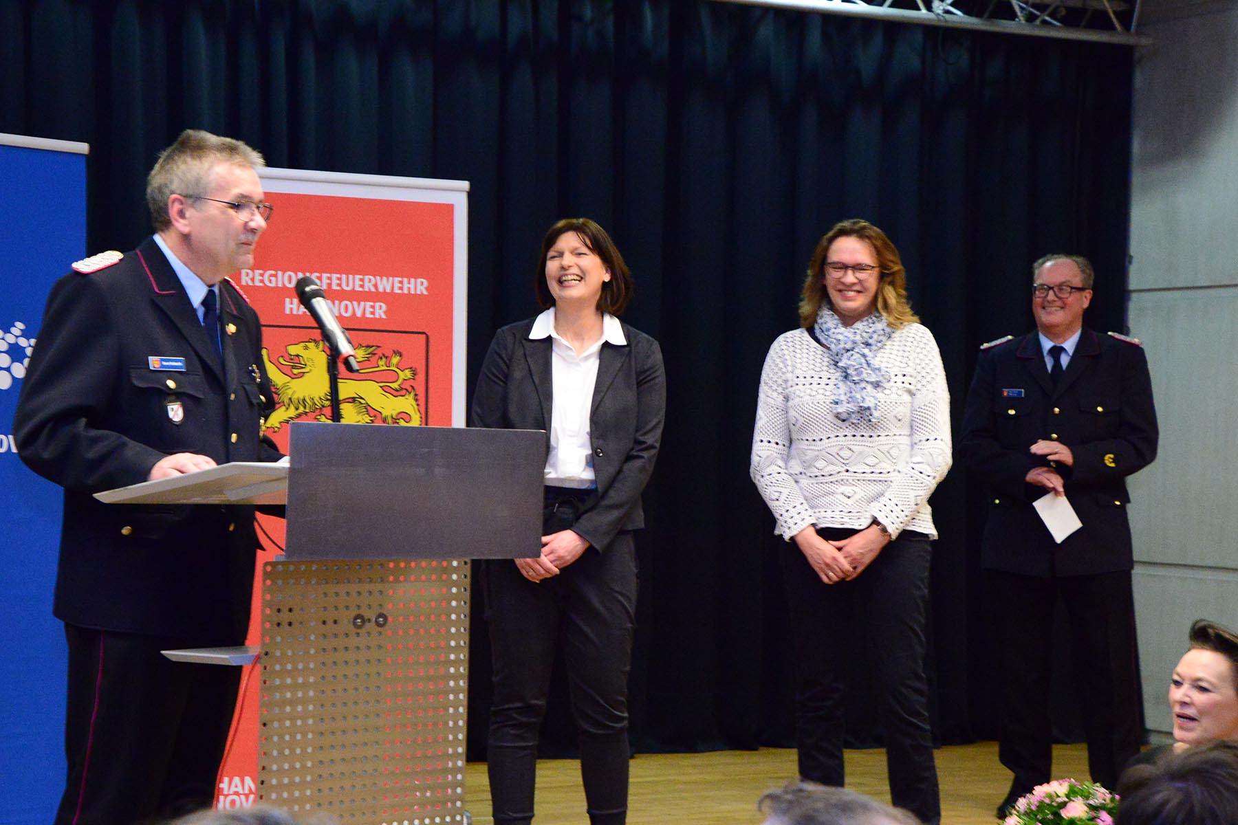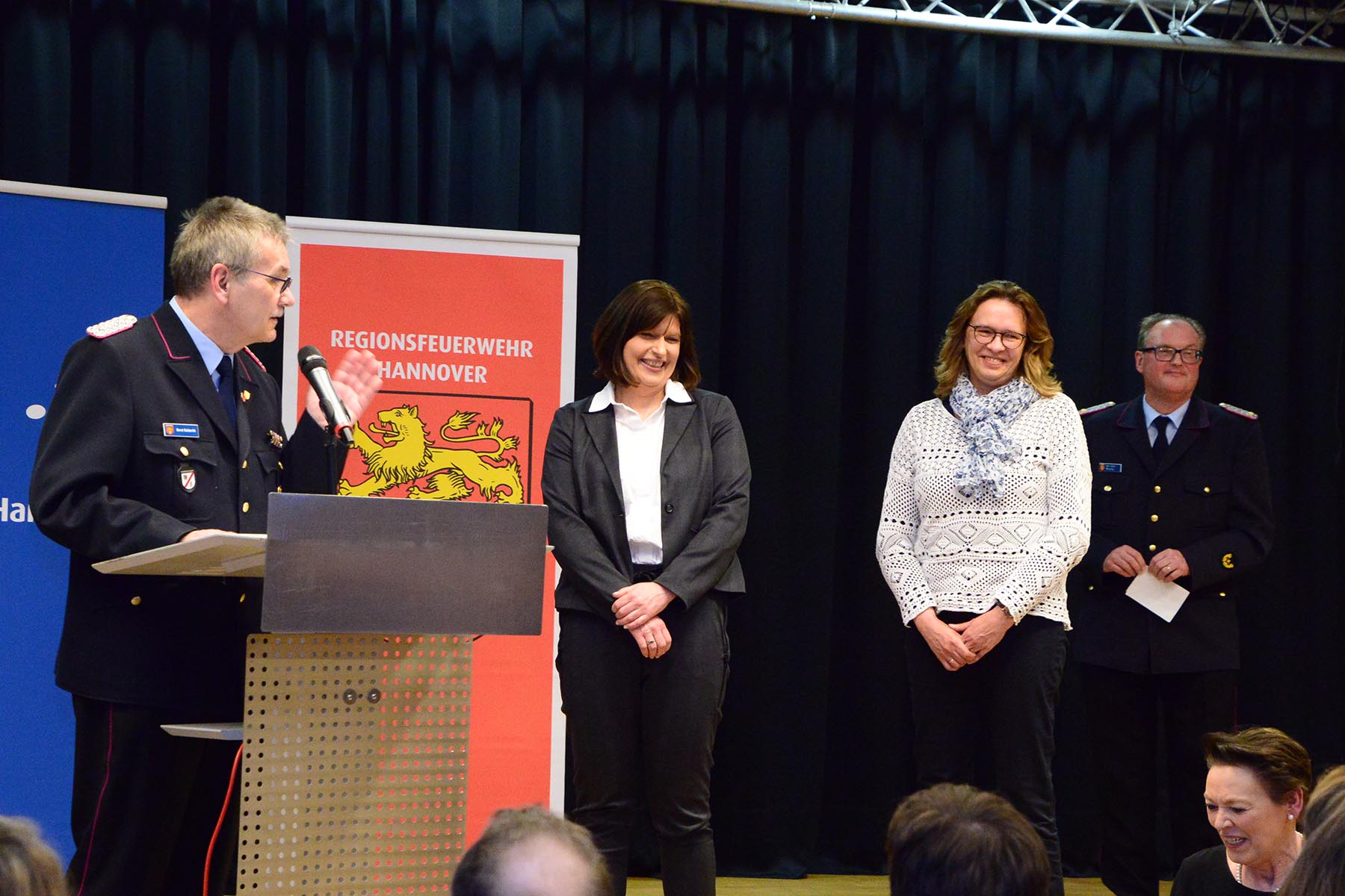 Christine Karasch, Dezernentin für Öffentliche Sicherheit, Zuwanderung, Gesundheit und Verbraucherschutz bei der Region Hannover, verabschiedete Horst Holderith aus seinem Amt. Gerade da heute vielmals die Würdigung eines Amtes in der Feuerwehr nicht zu sehen ist, so sei doch deutlich zu erkennen, wie wichtig dieser Beitrag sei, so Christine Karasch. Sie hob nur einige Punkte aus der Laufbahn Holderiths hervor: 51 Jahre in der Feuerwehr, seit 1998 in der Regionsfeuerwehrbereitschaft, Zahlreiche Ehrungen wie das Ehrenzeichen des Landes Niedersachsen und die Ehrennadel in Silber für besondere Verbinde des Landesfeuerwehrverbandes seien nur einige Punkte seiner Vita. Horst Holderith ist ein "Urgestein in der Feuerwehr", so die Dezernentin. Mit Standing Ovations wurde Horst Holderith verabschiedet.