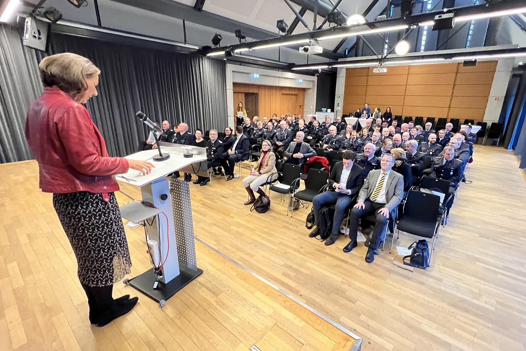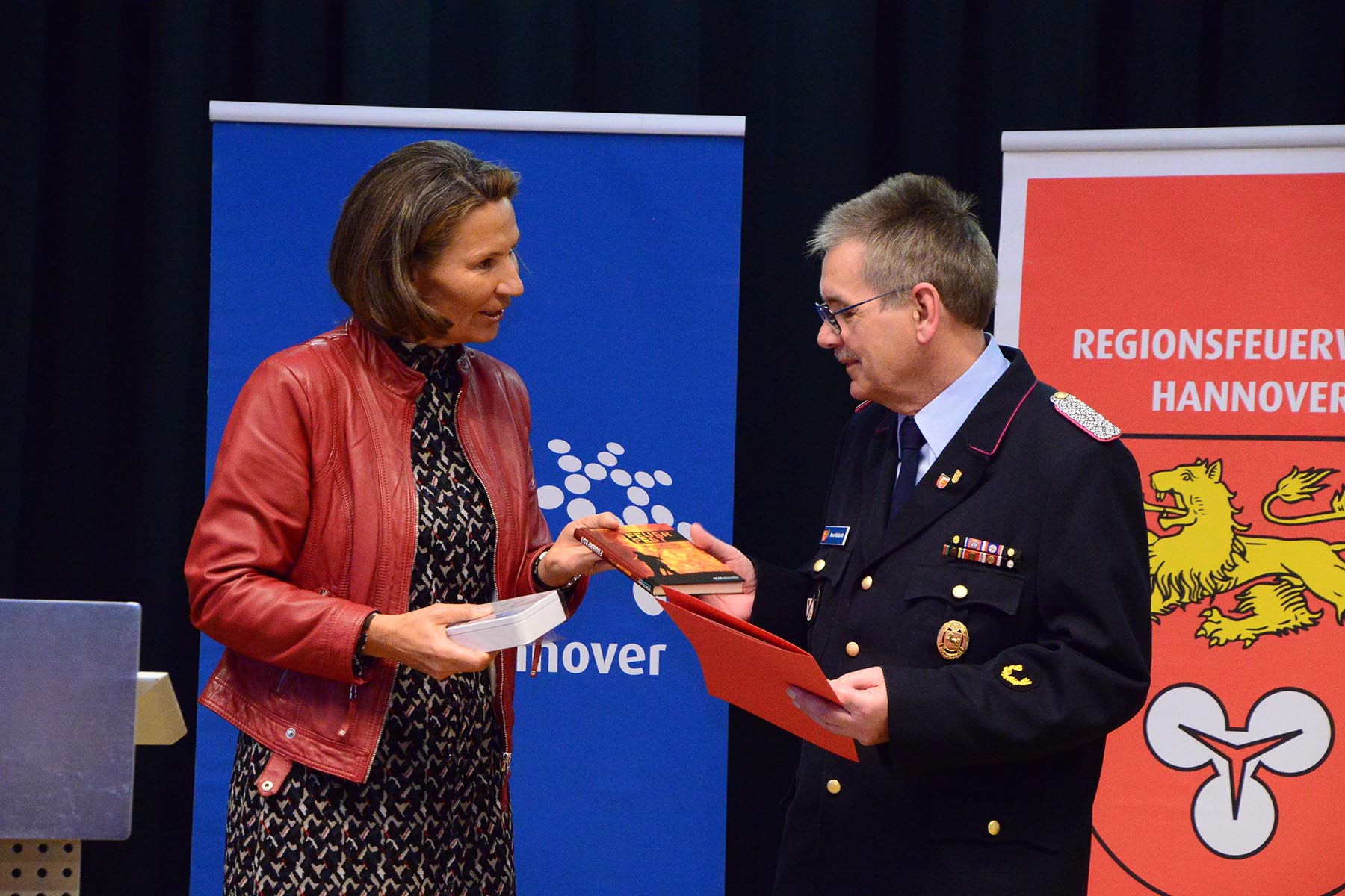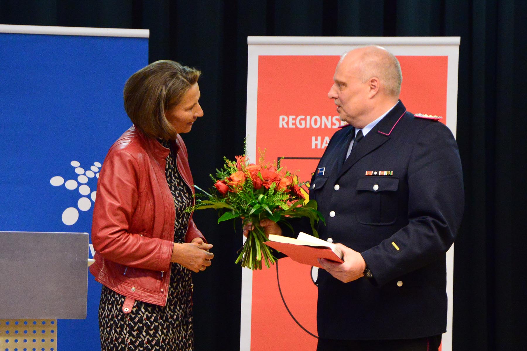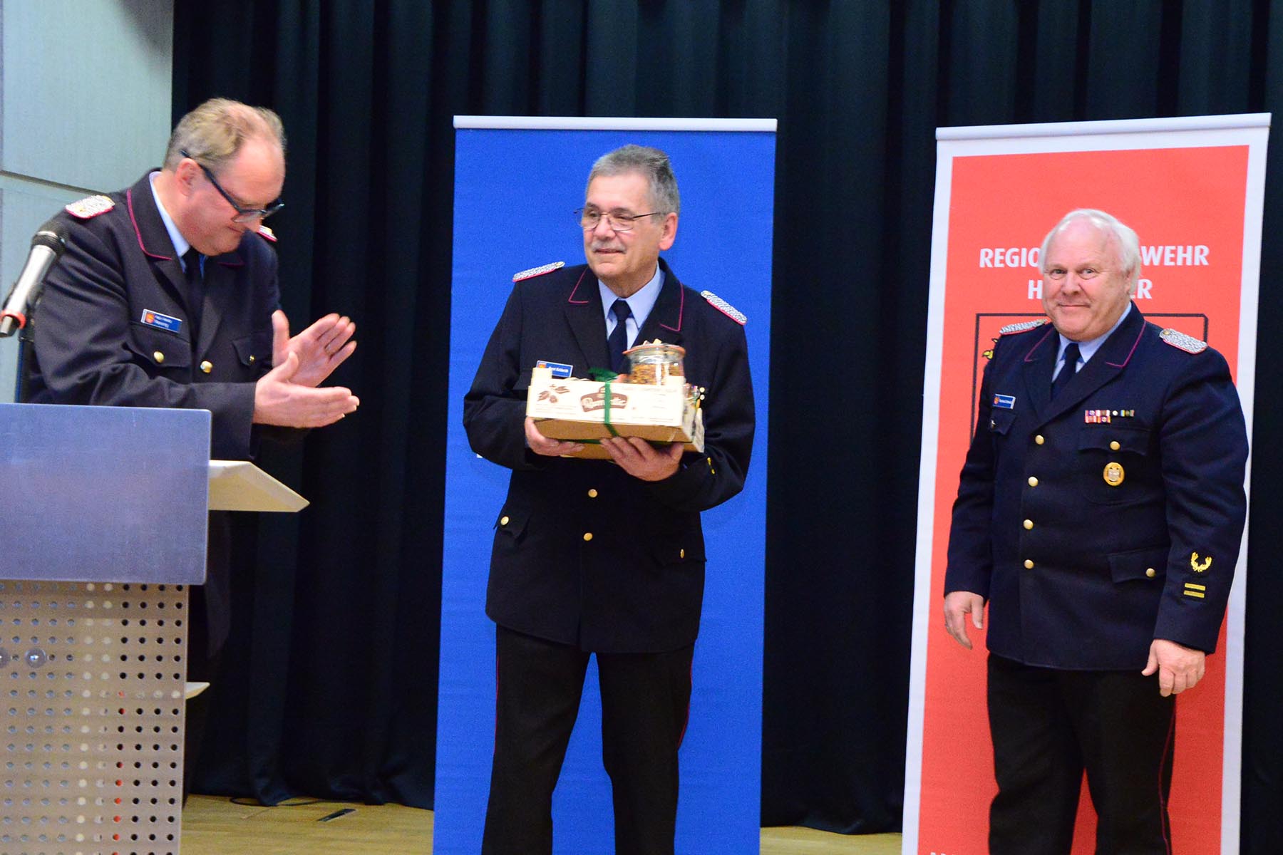 Christine Karasch, Dezernentin für Öffentliche Sicherheit, Zuwanderung, Gesundheit und Verbraucherschutz bei der Region Hannover, verabschiedete Horst Holderith aus seinem Amt. Gerade da heute vielmals die Würdigung eines Amtes in der Feuerwehr nicht zu sehen ist, so sei doch deutlich zu erkennen, wie wichtig dieser Beitrag sei, so Christine Karasch. Sie hob nur einige Punkte aus der Laufbahn Holderiths hervor: 51 Jahre in der Feuerwehr, seit 1998 in der Regionsfeuerwehrbereitschaft, Zahlreiche Ehrungen wie das Ehrenzeichen des Landes Niedersachsen und die Ehrennadel in Silber für besondere Verbinde des Landesfeuerwehrverbandes seien nur einige Punkte seiner Vita. Horst Holderith ist ein "Urgestein in der Feuerwehr", so die Dezernentin. Mit Standing Ovations wurde Horst Holderith verabschiedet.