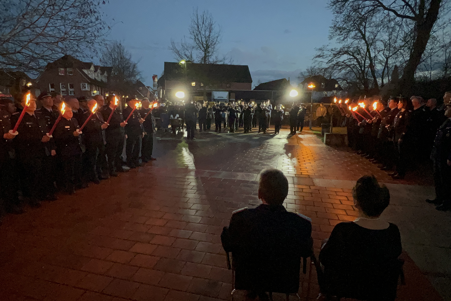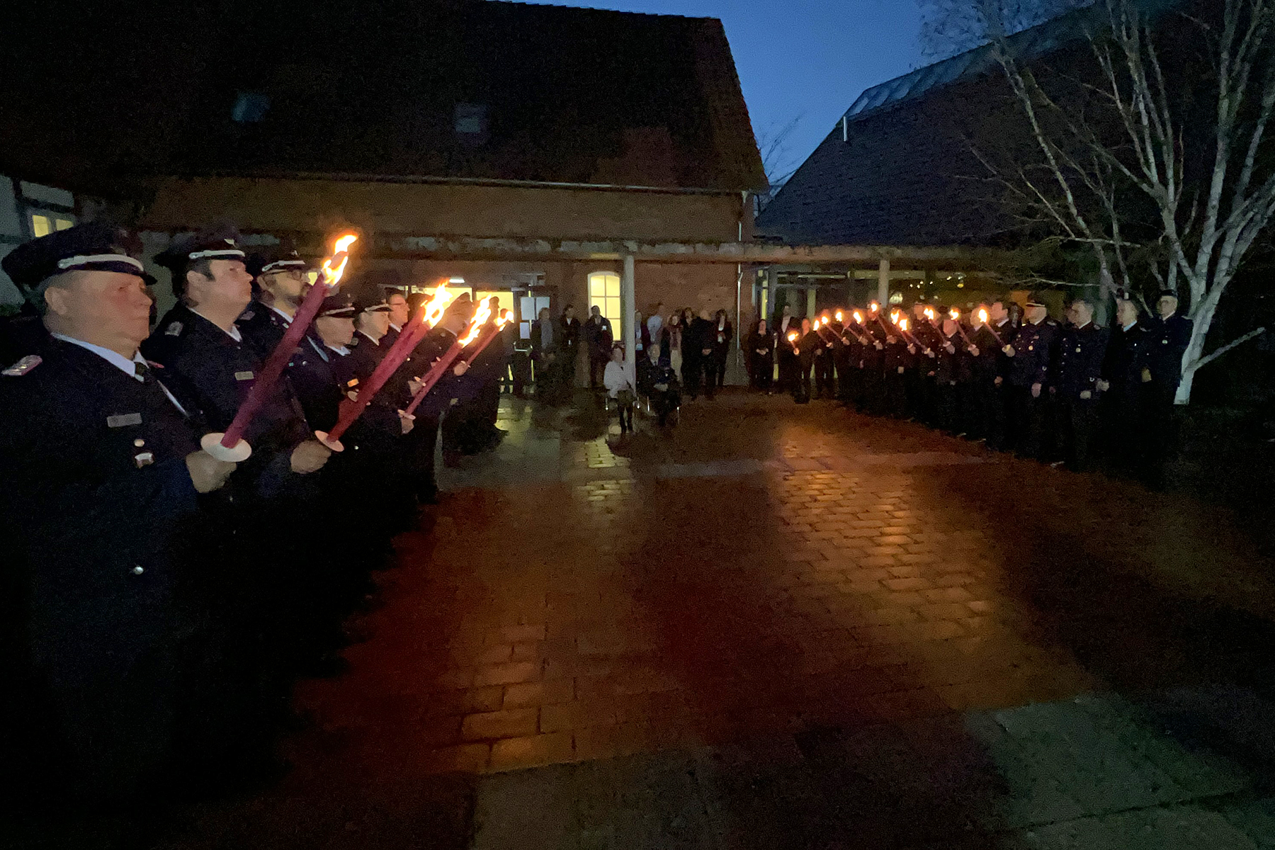 Zu Ehren das scheidenden Abschnittsleiters spielte abschließend das Blasorchester des Feuerwehrverbandes Region Hannover auf dem Hof des Amtshofes den Zapfenstreich, womit der offizielle Teil endete und sich Gespräche unter den Gästen bei Fingerfood anschlossen.