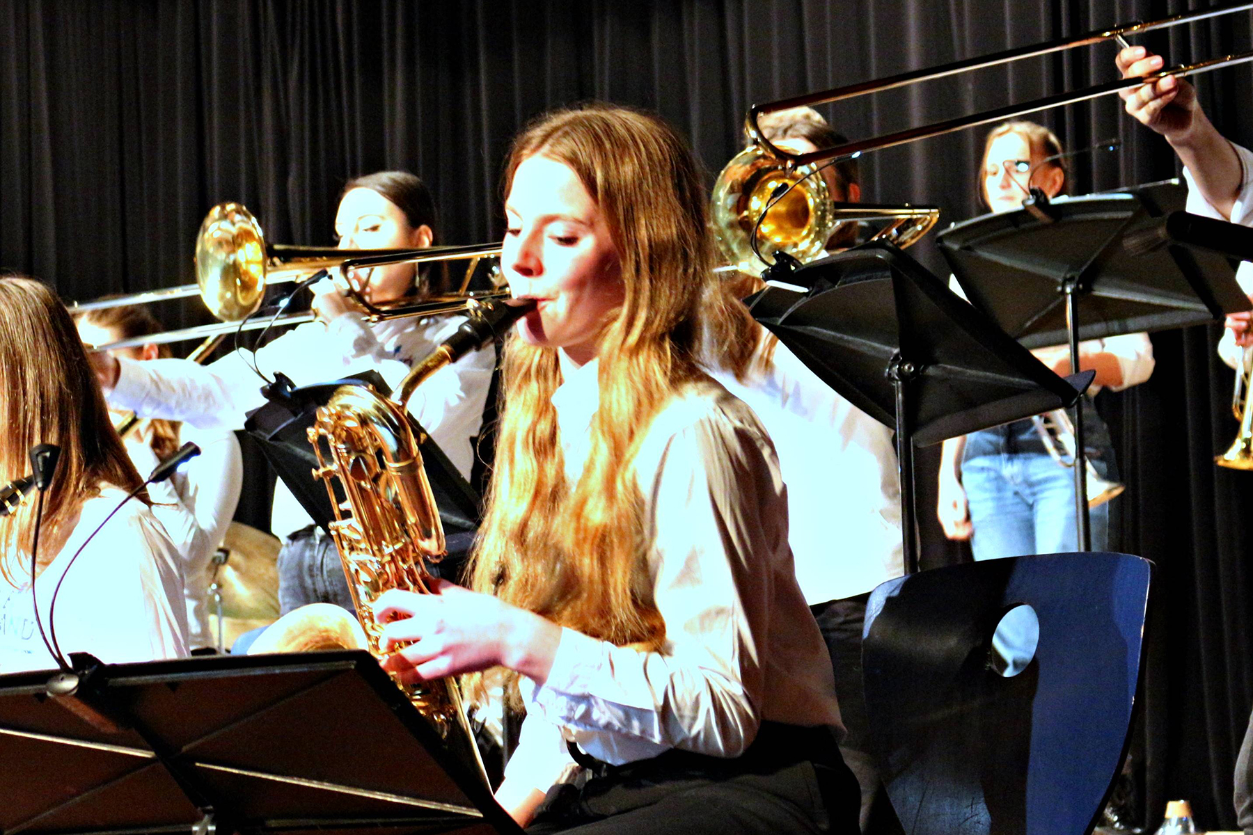 Besonderen Reiz für die einheimischen Besucher bezog dieses Doppelkonzert aus der Tatsache, dass es in diesem Jahr die Burgdorfer Gymnasiastin Amelie Stoppe in die Auswahl der "Wind Machine" geschafft hatte. Im Alter von neun Jahren wurde ihre Leidenschaft zum Saxofon geweckt. Am gestrigen Abend stellte die 17-Jährge des 12. Jahrgangs ihr Talent am Baritonsaxofon gleich zweimal unter hörenswerten Beweis. Zuerst als Mitglied der Bigband-Bläsersection und etwas später mit "Wind Machine".