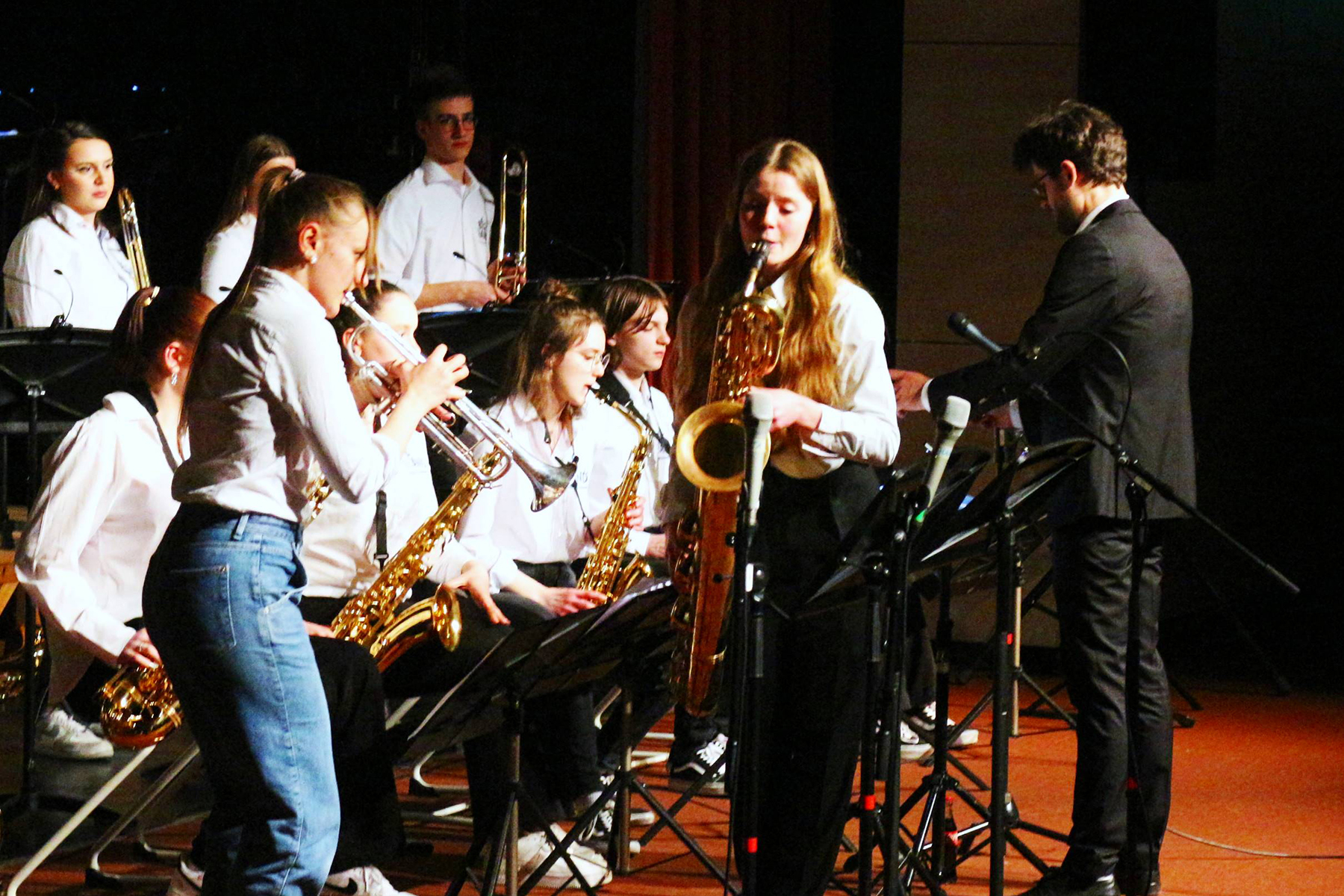 Am gestrigen Dienstagabend, 12. April 2023, wurde die proppenvolle Aula des Burgdorfer Gymnasiums am "Berliner Ring" bei dem Doppelkonzert "Perspektiven" mal so richtig durchgepustet. Die Bigband der Schule unter der Leitung von Tobias Kanthak hatte das niedersächsische Jugendjazzorchester "Wind Machine" zu Gast. Den gemeinsamen fulminanten Auftritt hatten die Burgdorfer Schulmusikerinnen und -musiker im Februar 2023 in Hannover bei einem Wettbewerb der besten Bigbands Niedersachsens gewonnen.